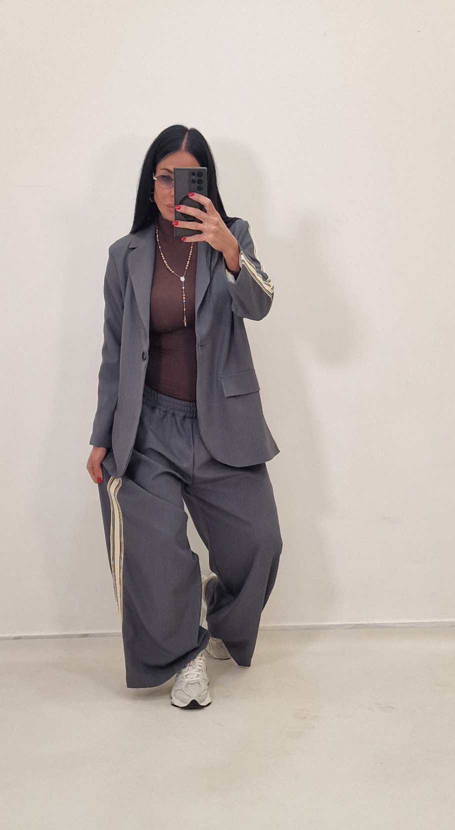 Coordinato giacca e pantalone modello over con elastico.