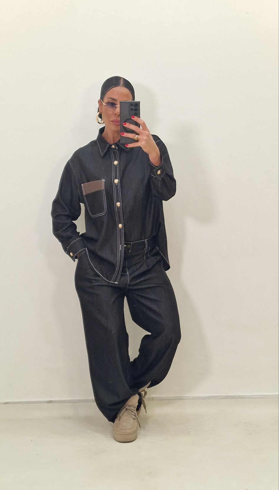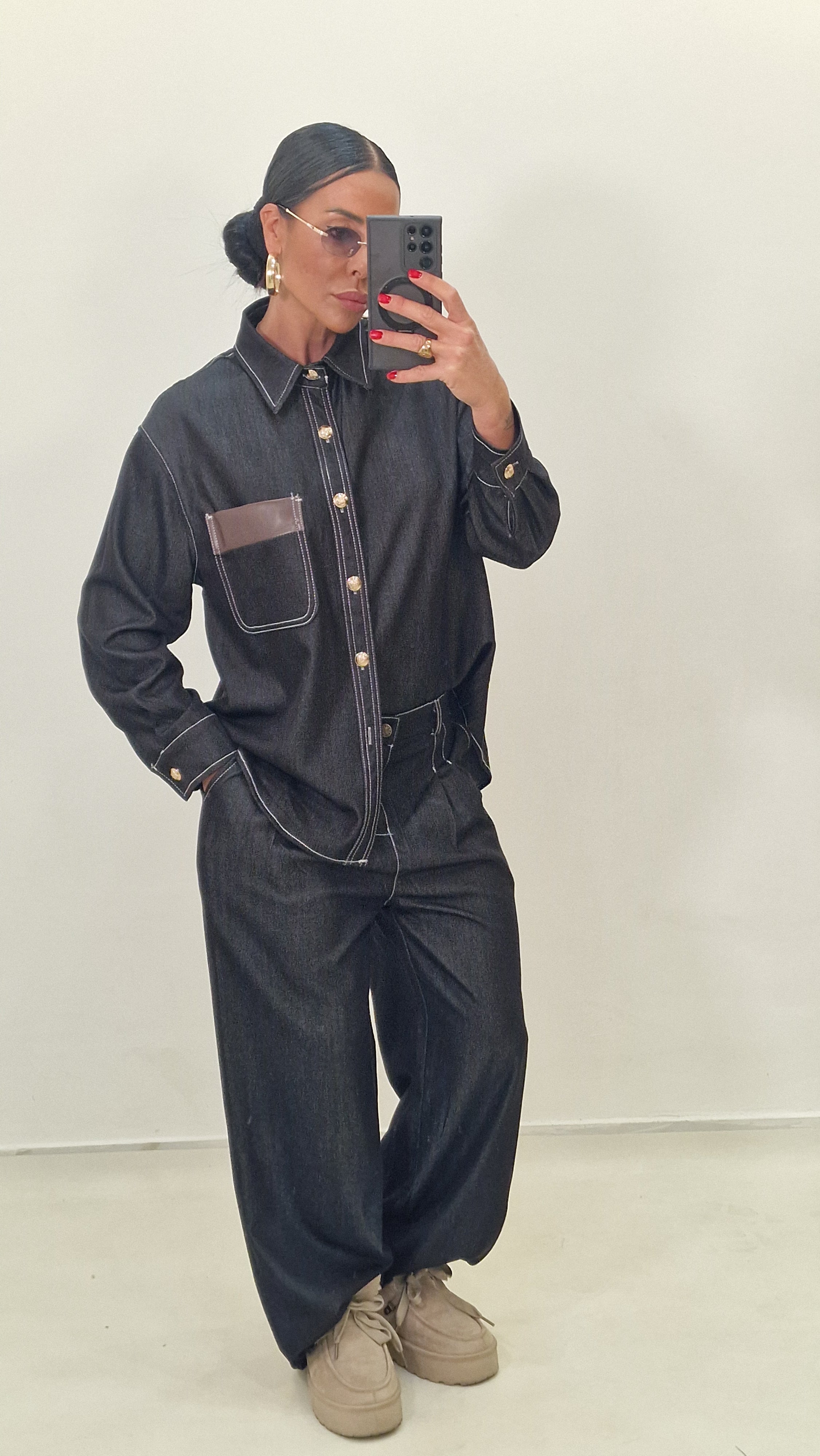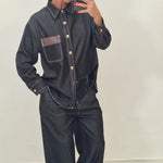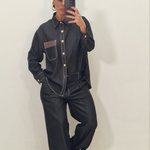 Coordinato 100% cotone con pantalone con elastico e bottone e camicia.