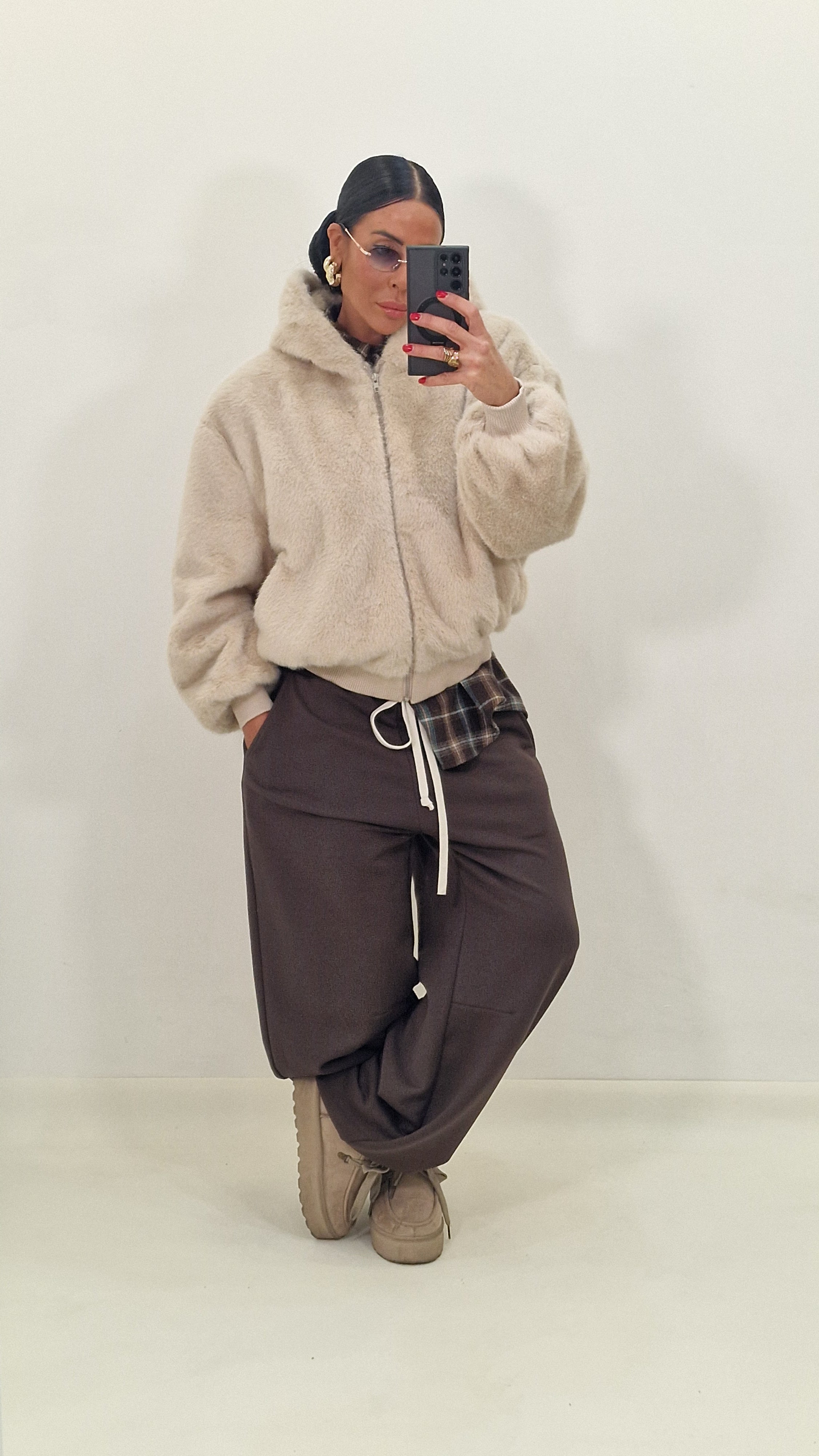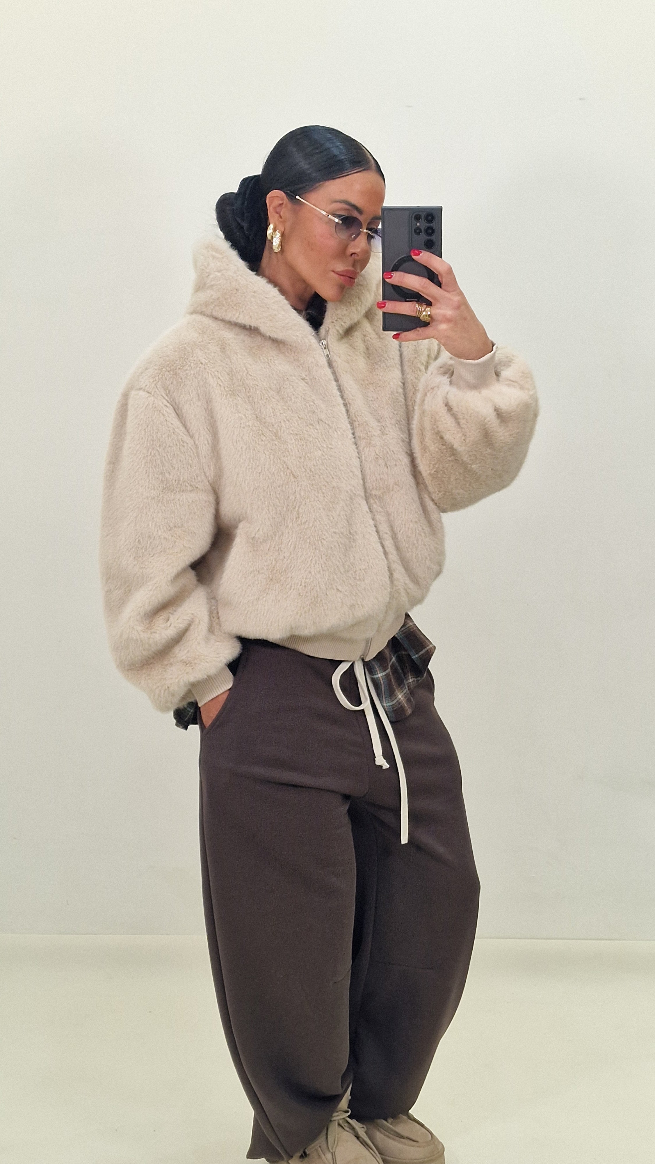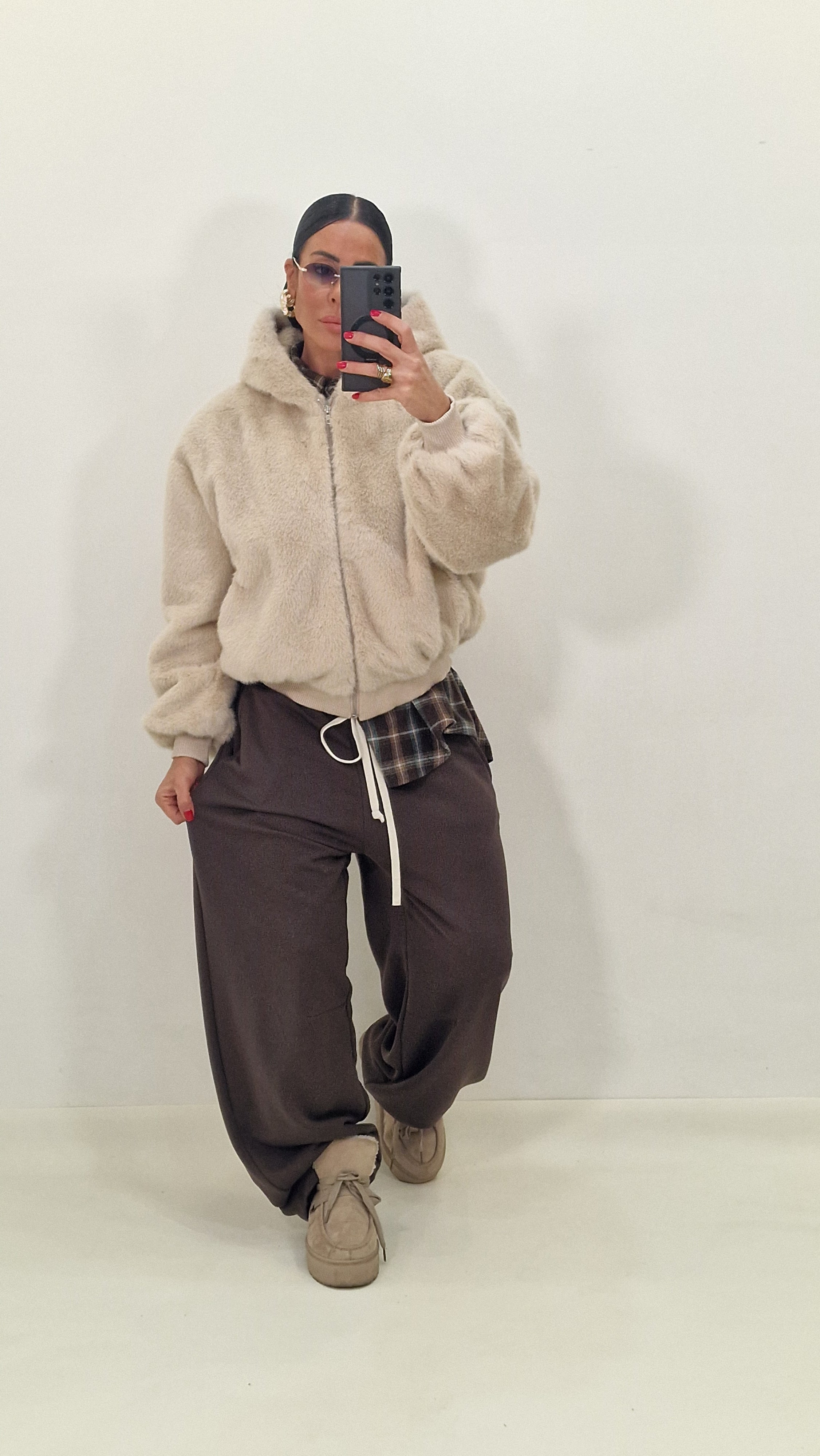 Pelliccia con zip e cappuccio