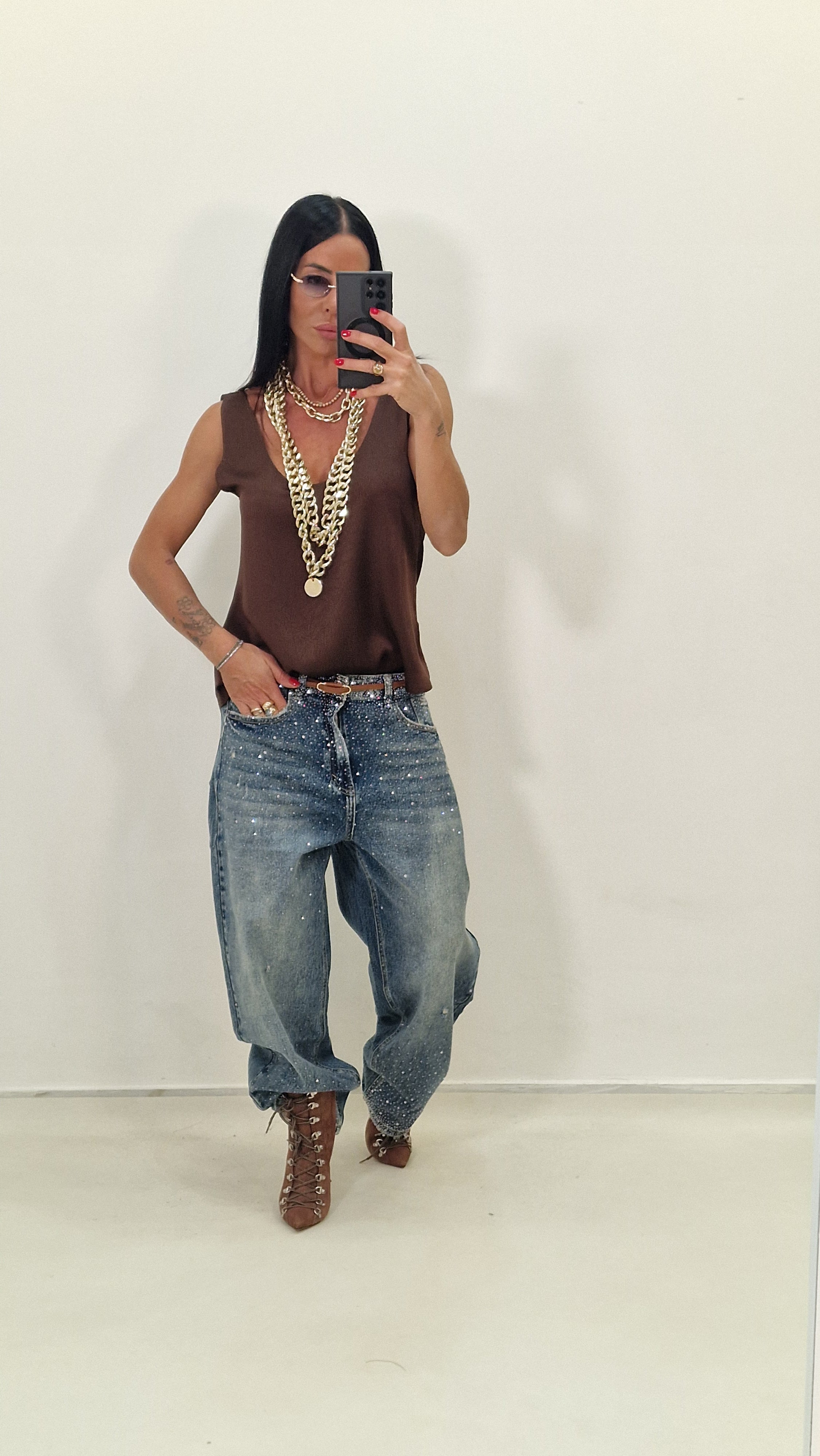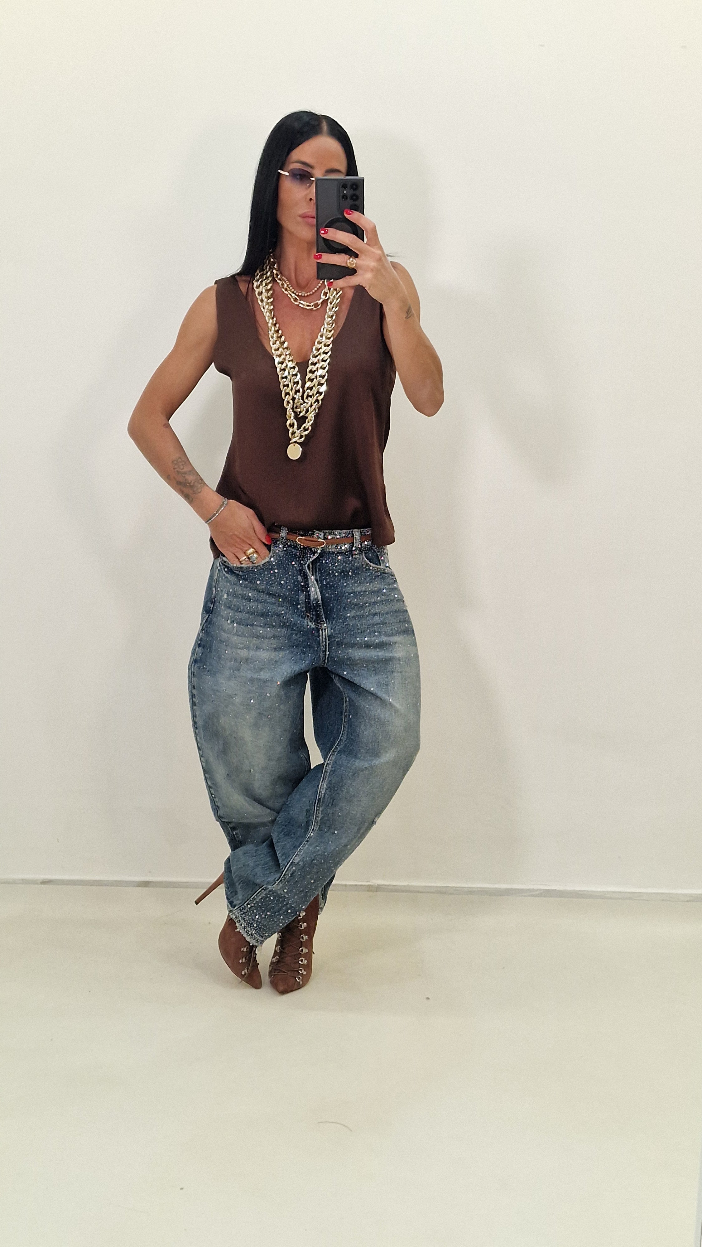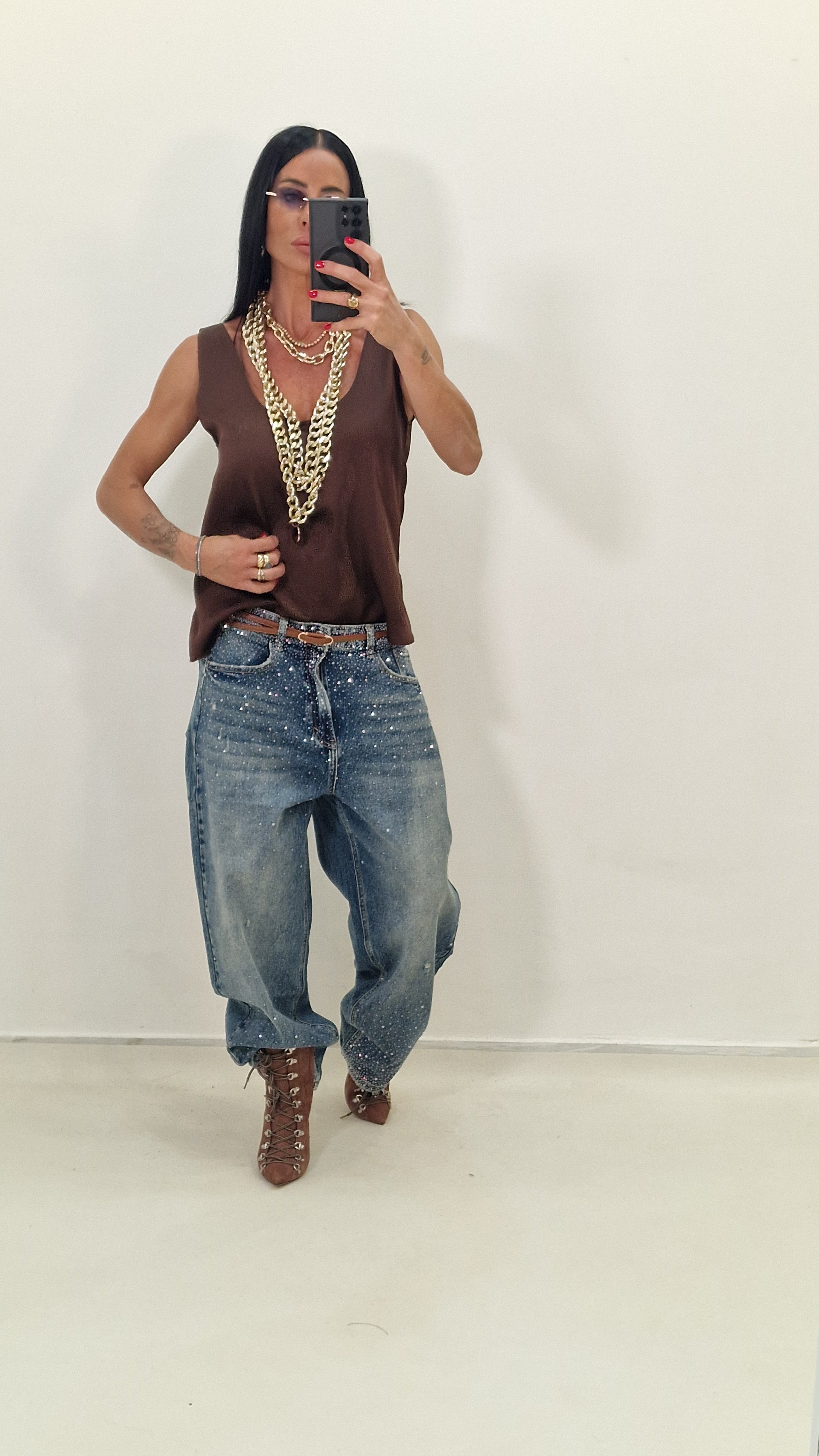 Jeans con swarovoski , gamba larga che si restringe alla caviglia