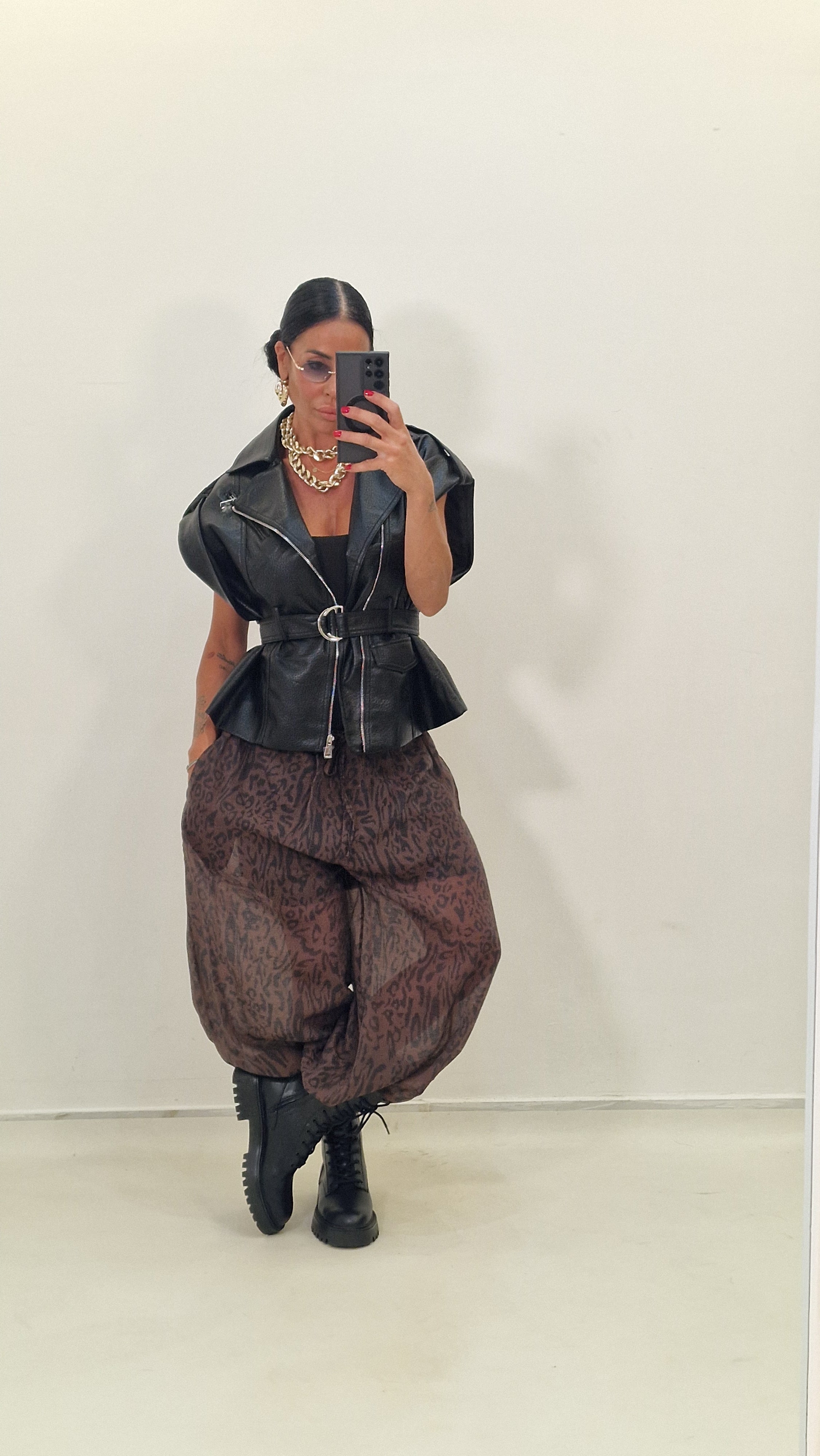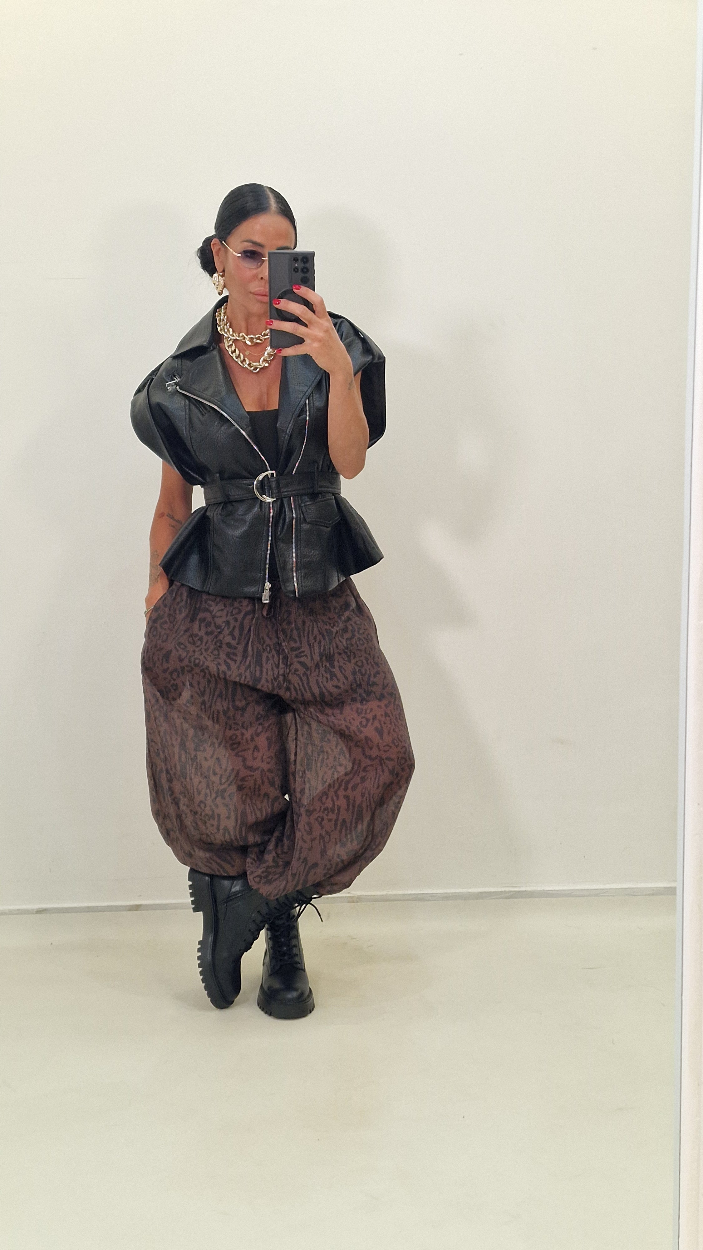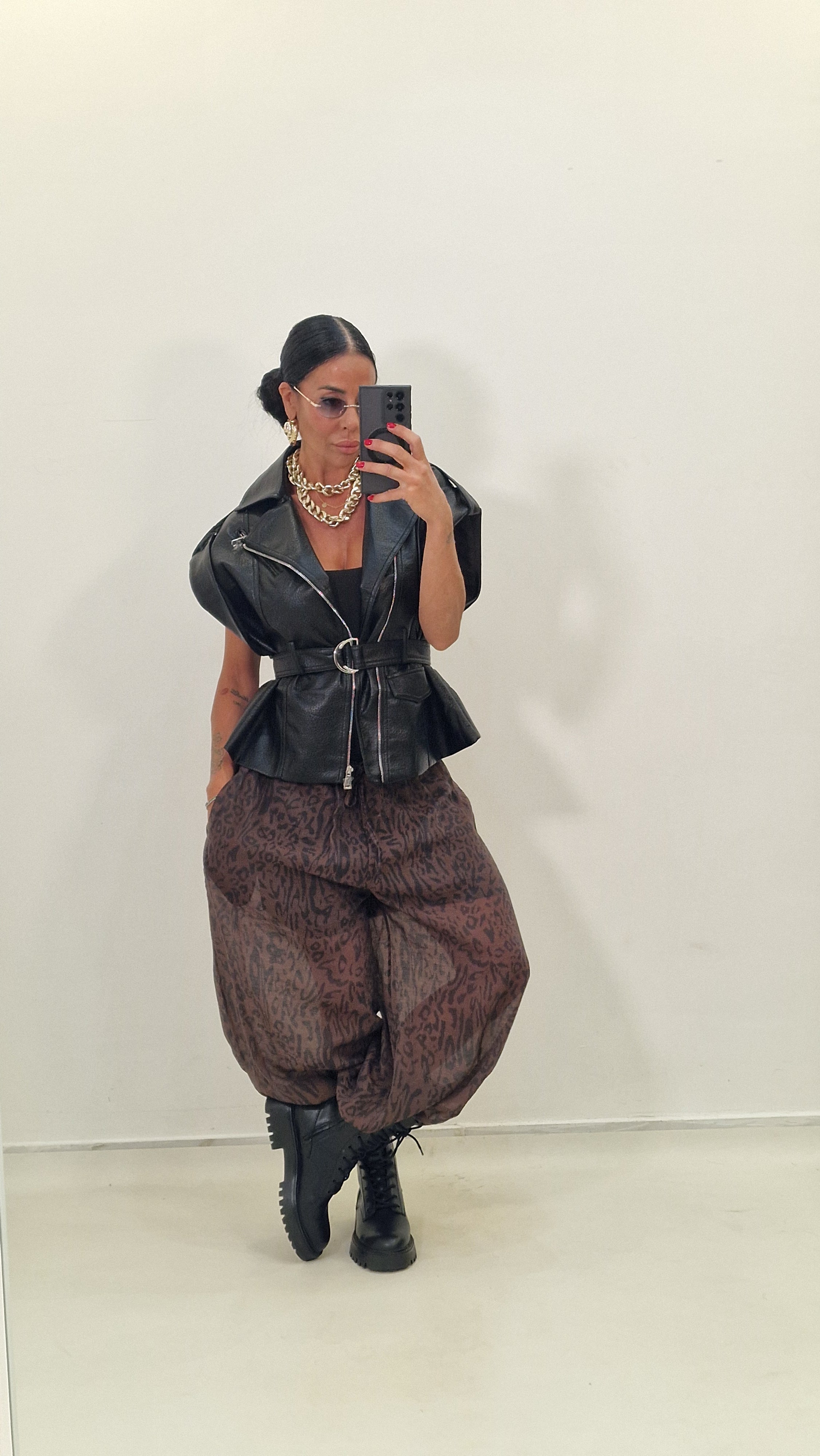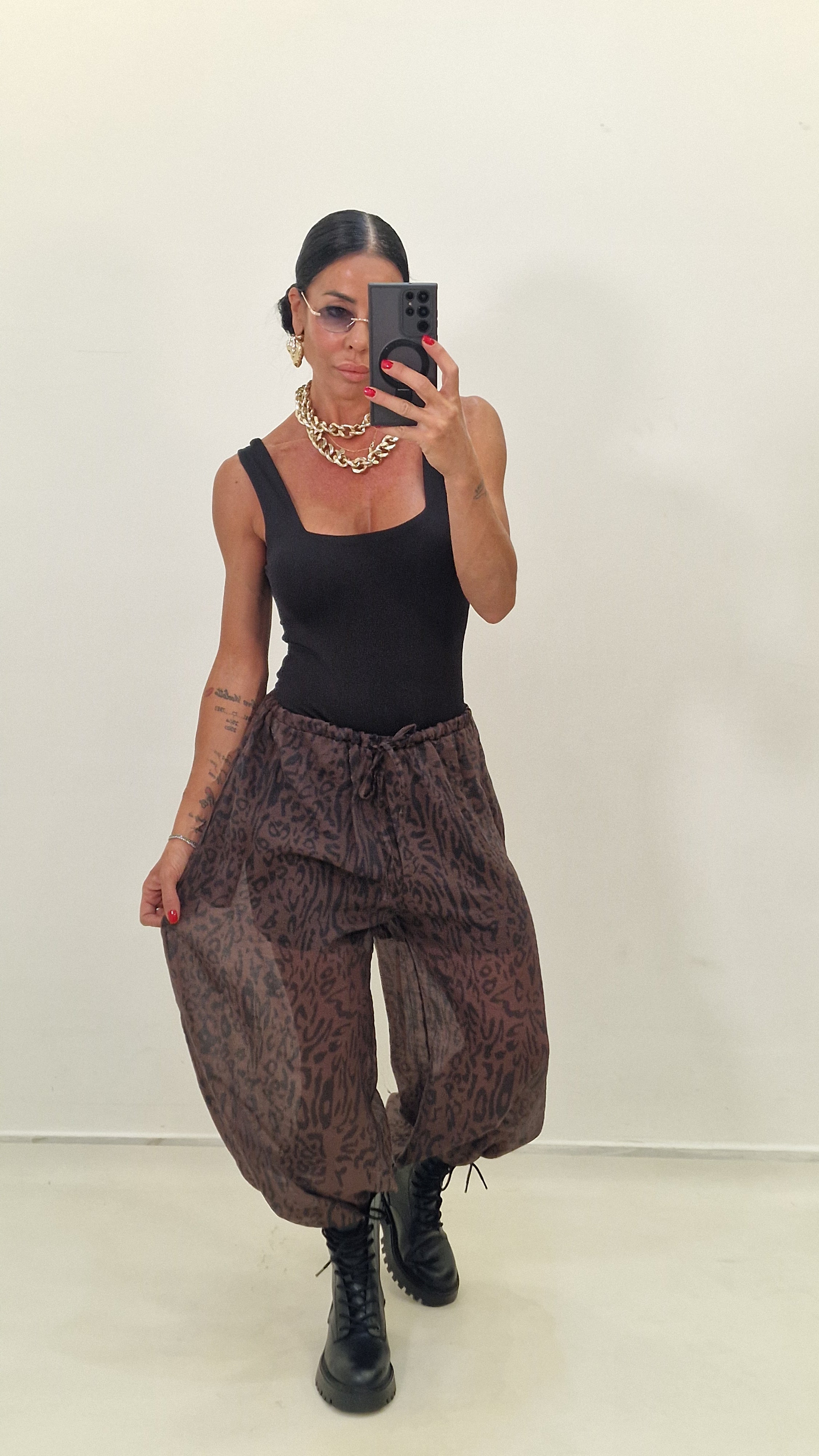 Pantalone gamba larga con elastico in vita e alle caviglia