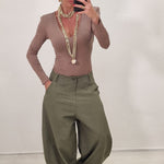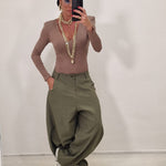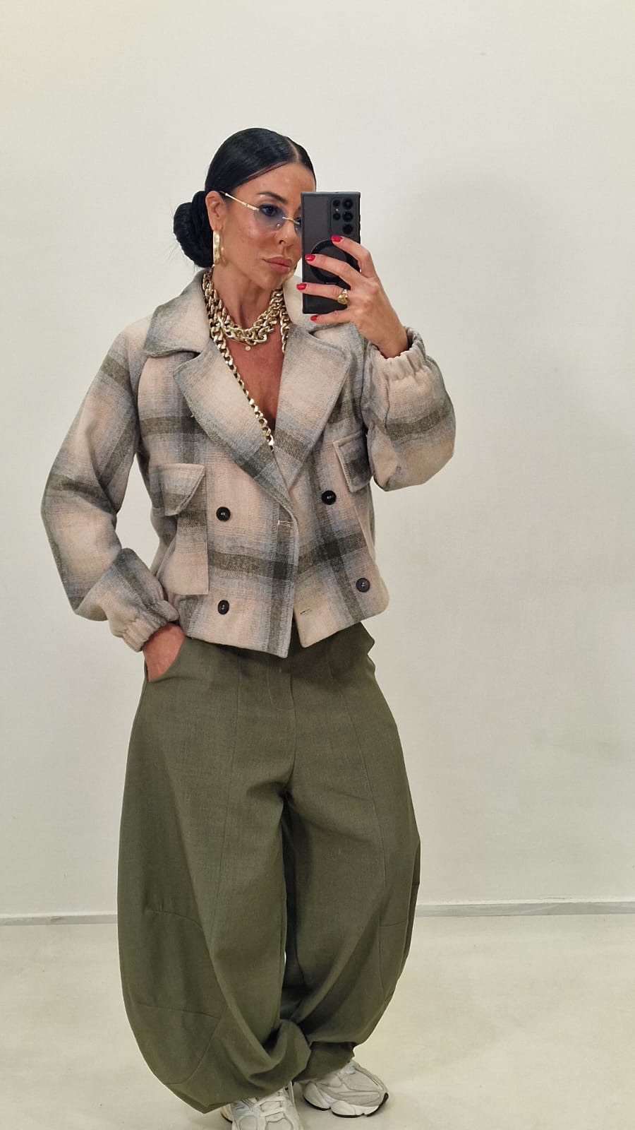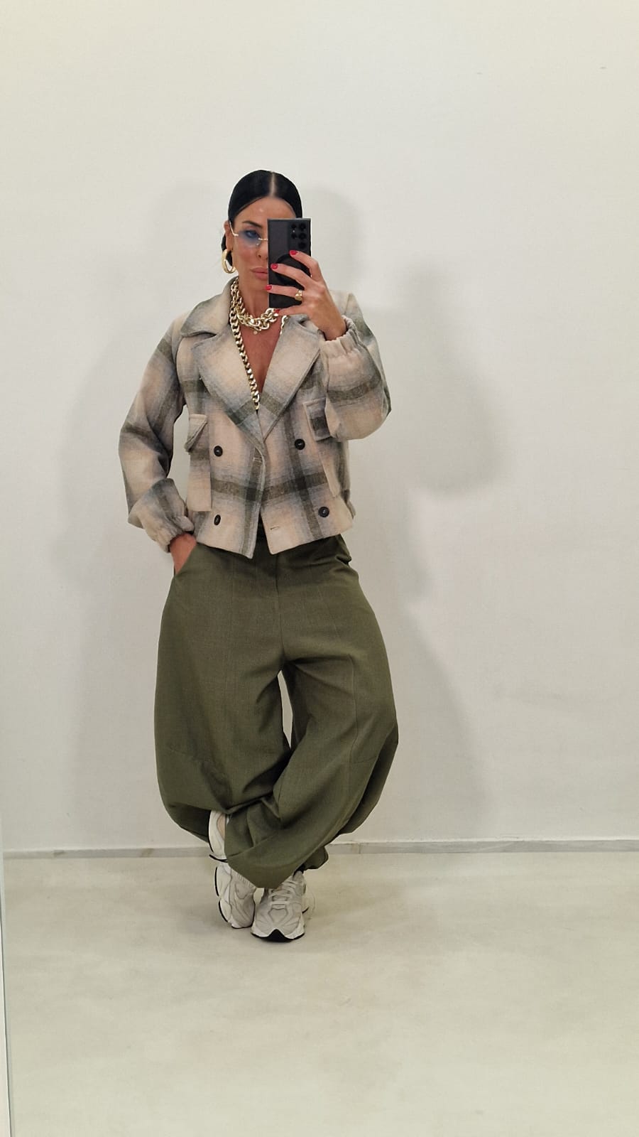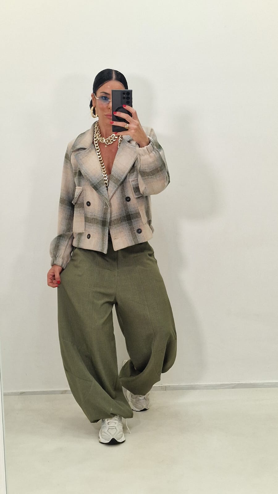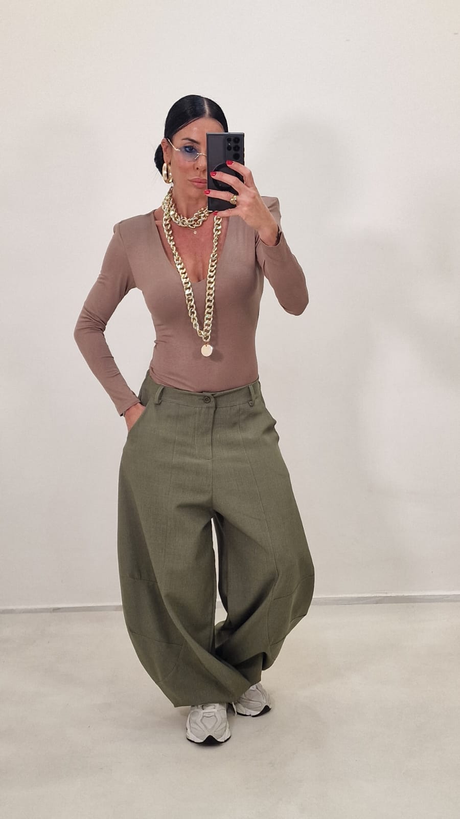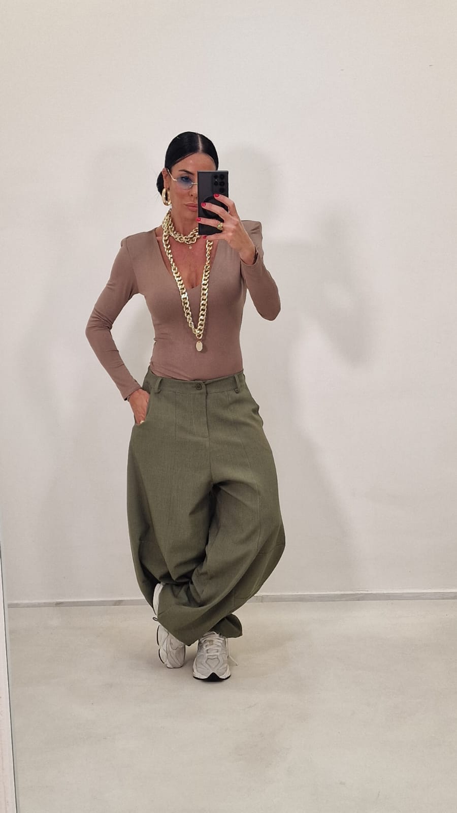 Pantatuta modello ballon con elastico alla caviglia ed elastico e bottone in vita