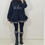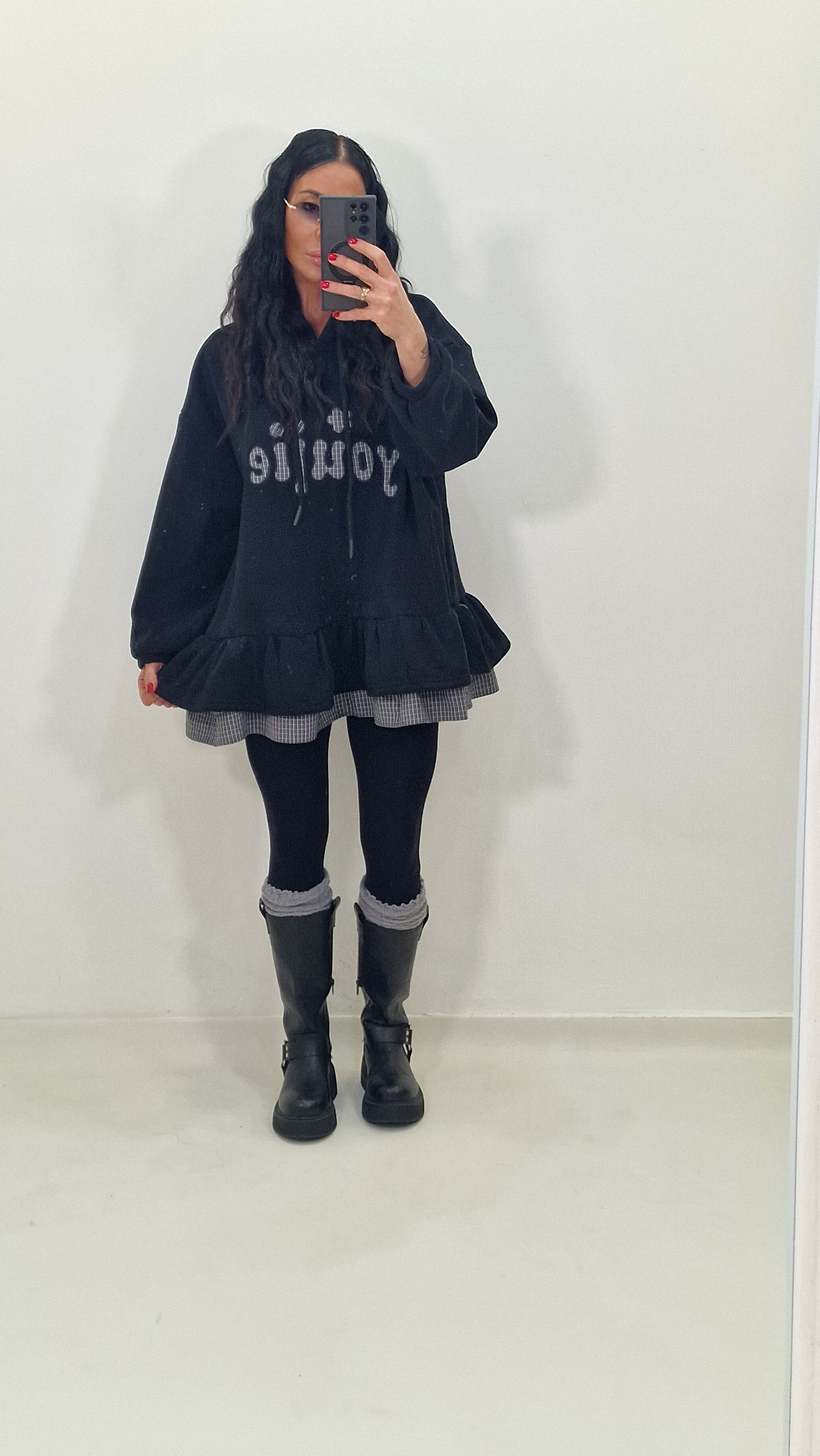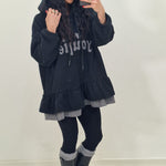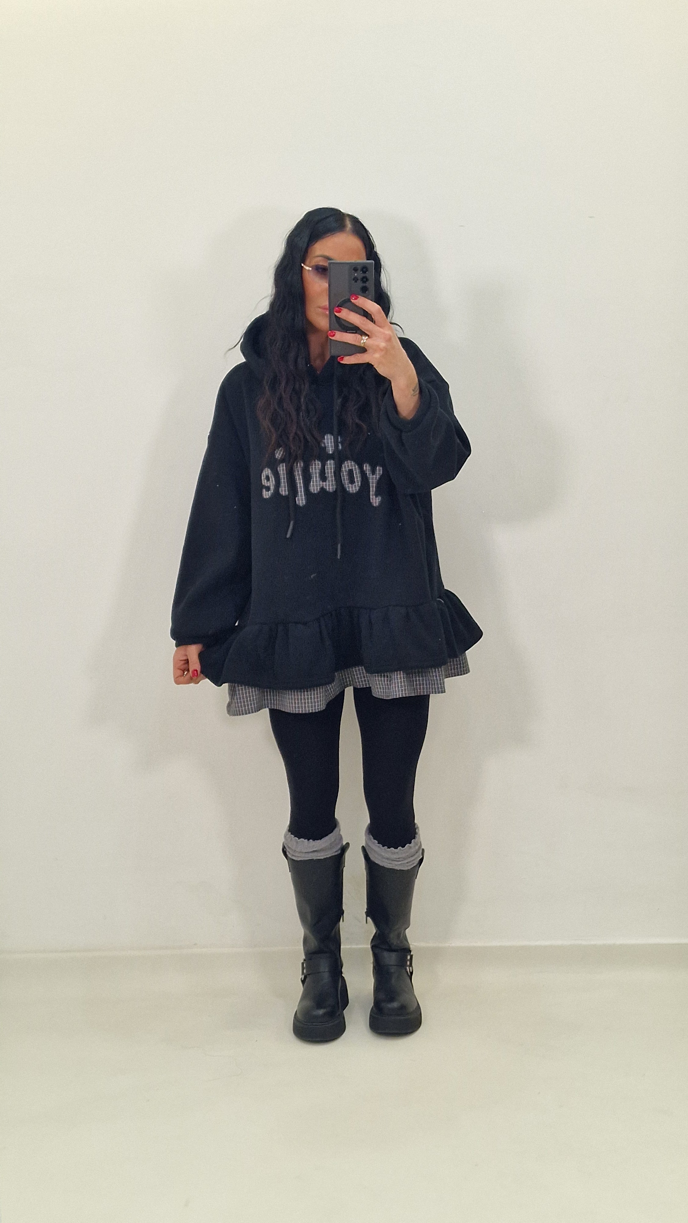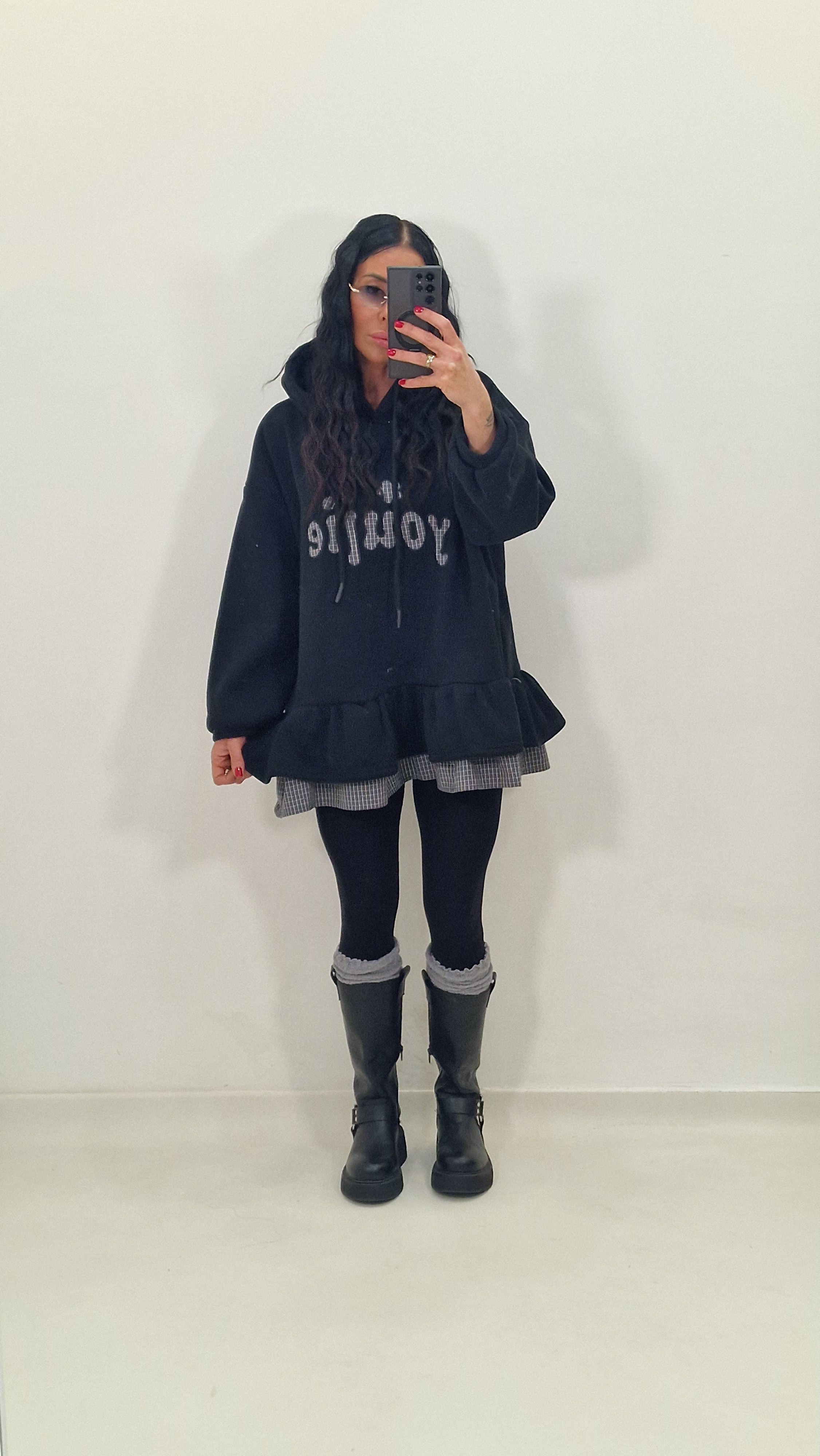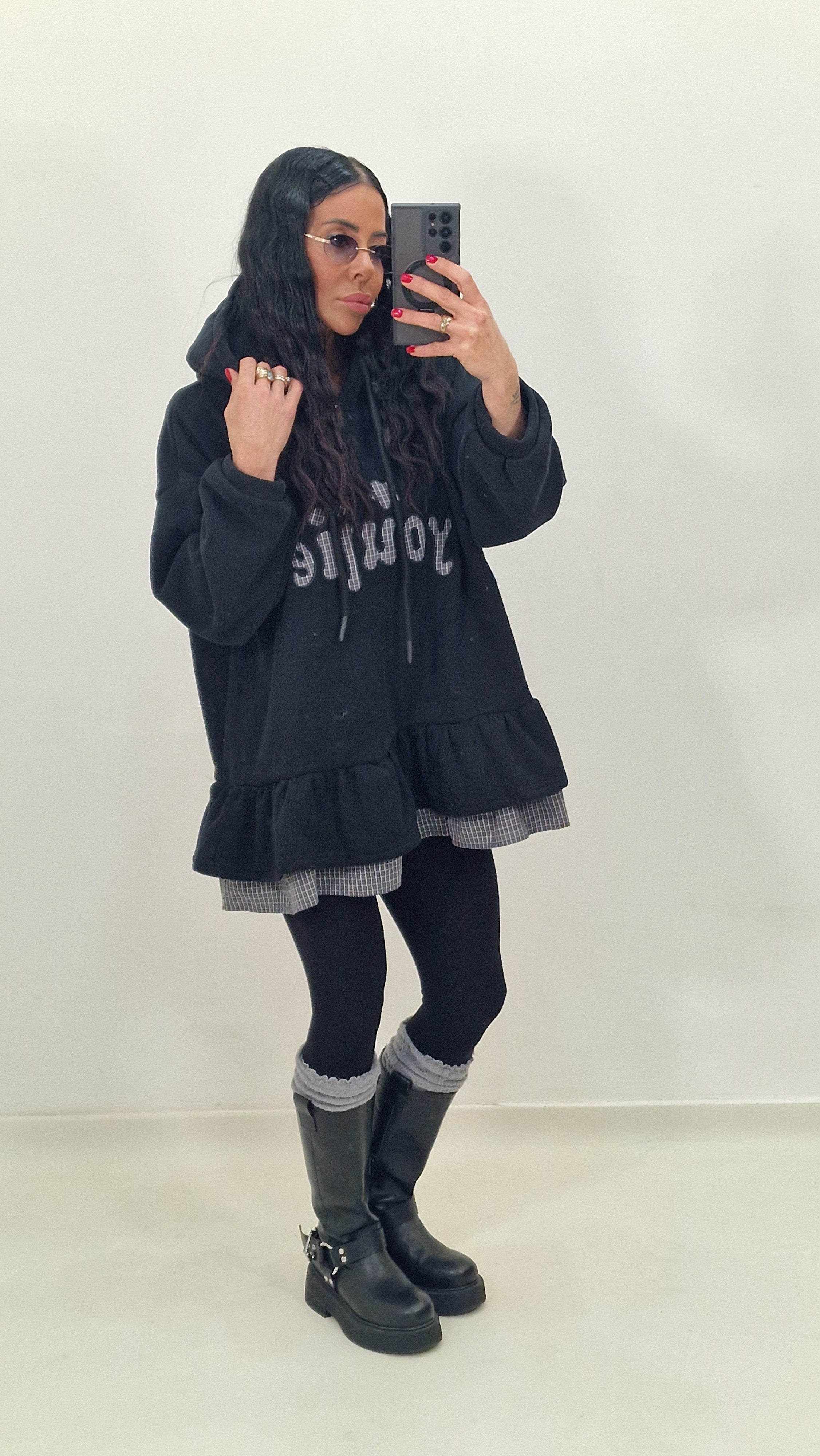 Maxi felpa con cappuccio e ruches sotto
