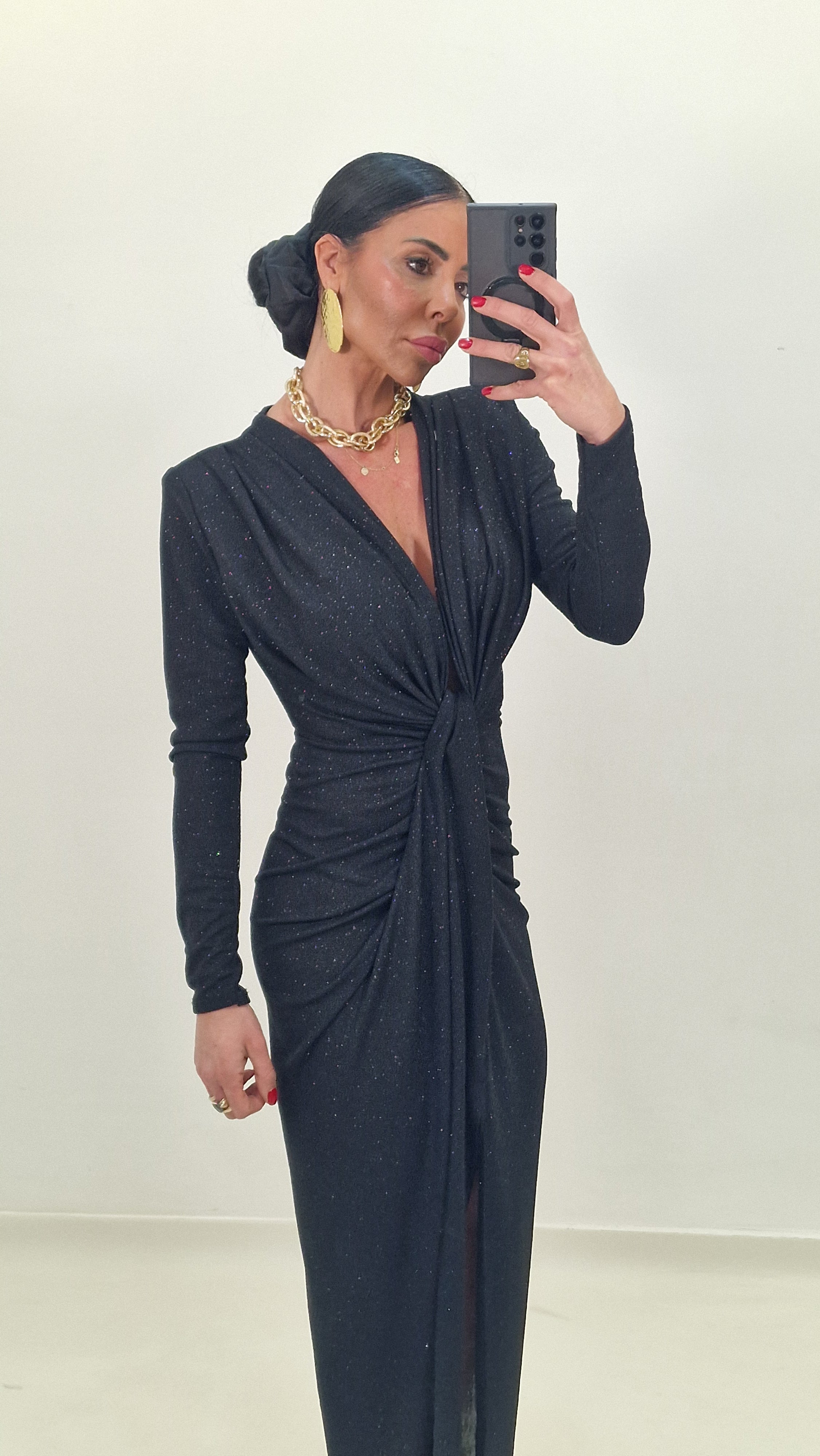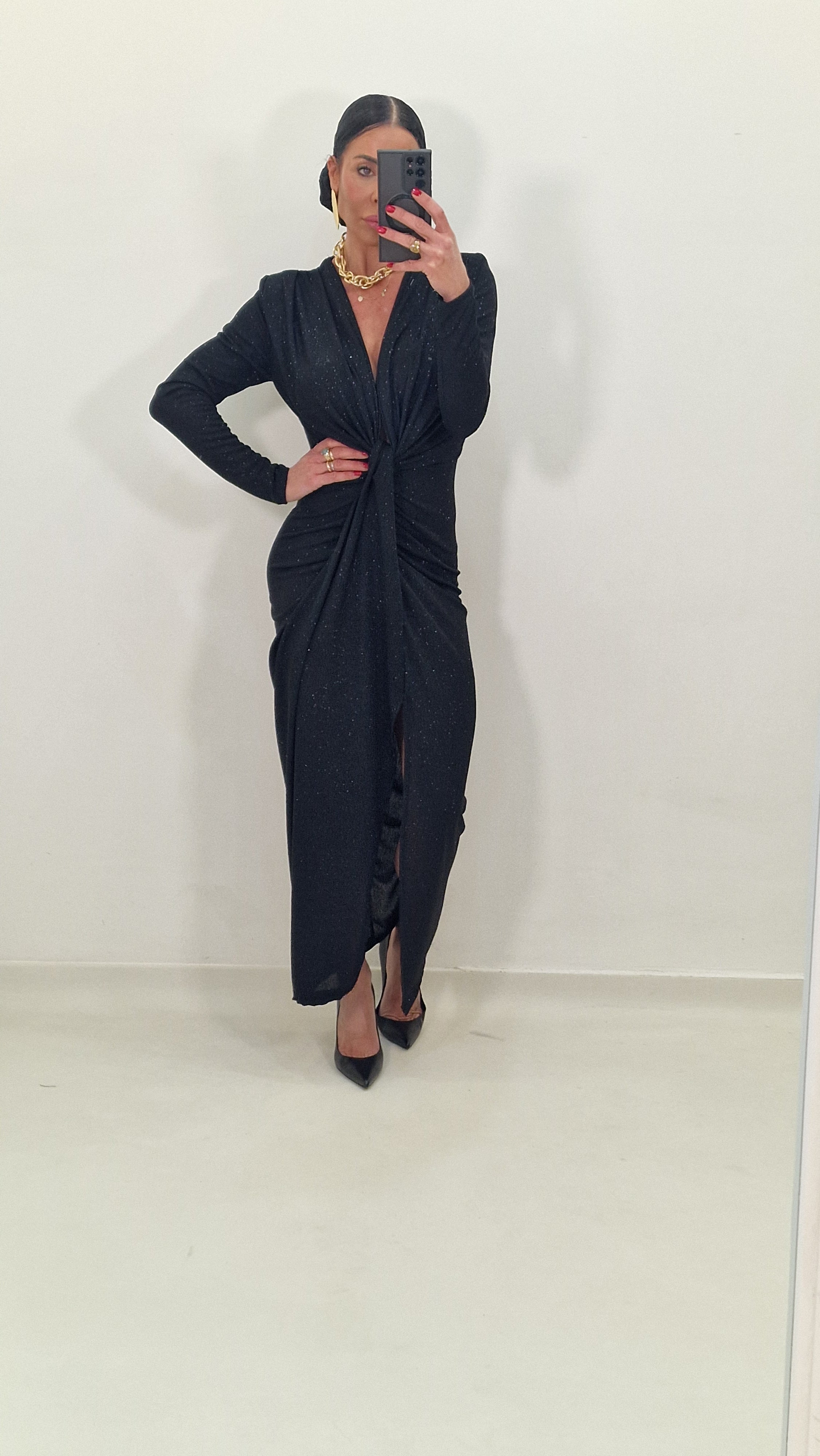 Long dress draped at the front with all-elasticity