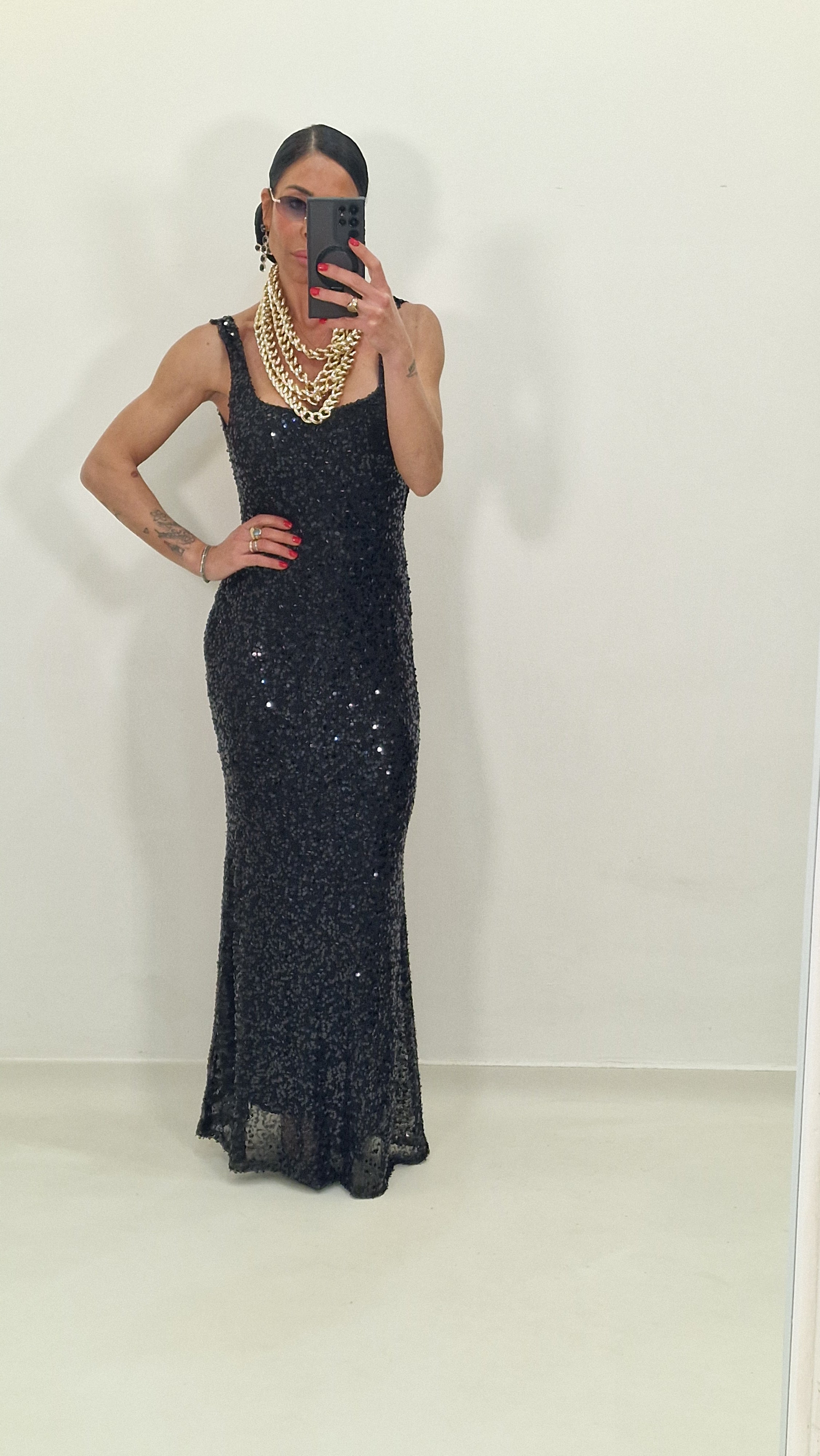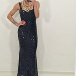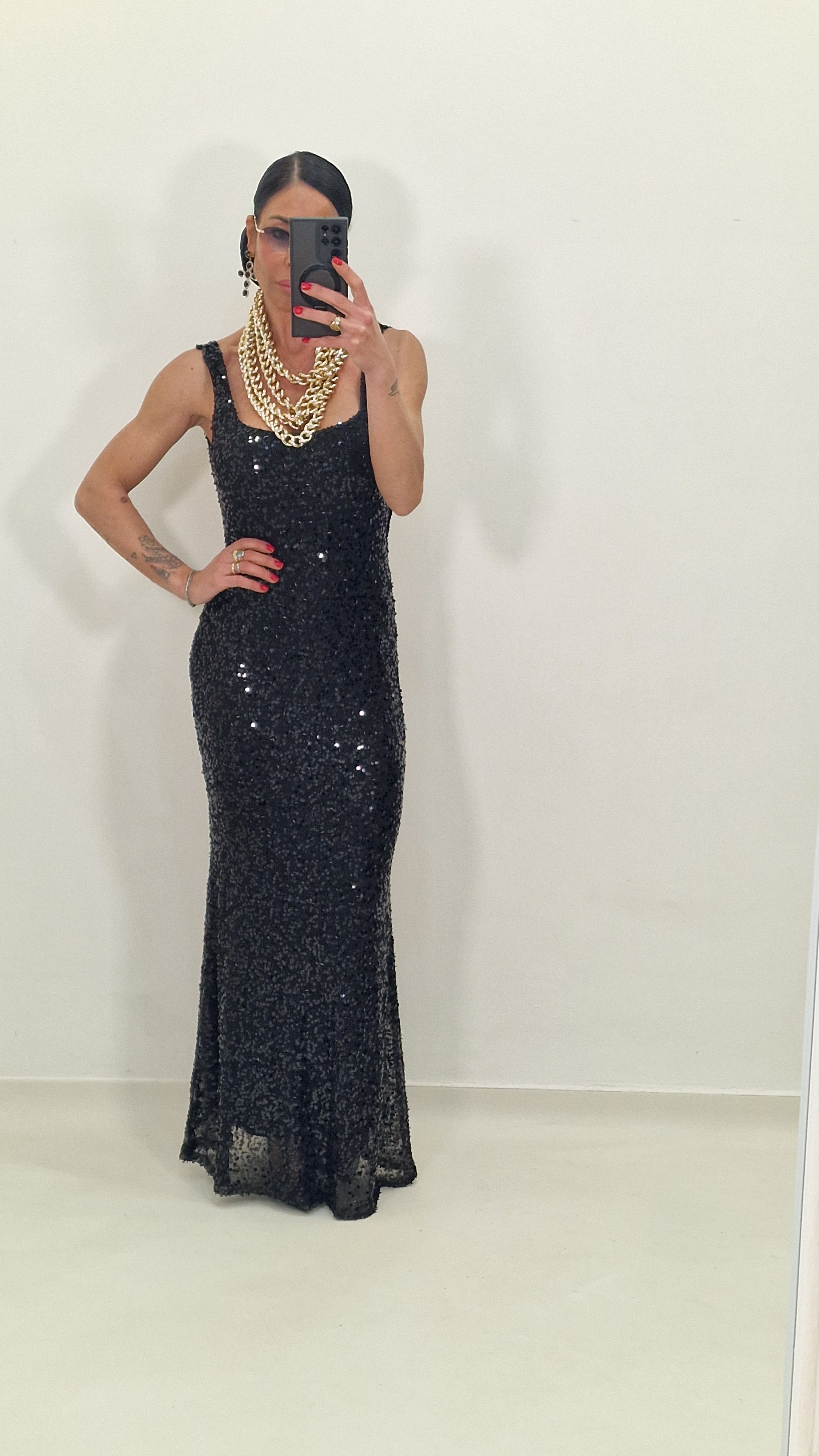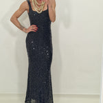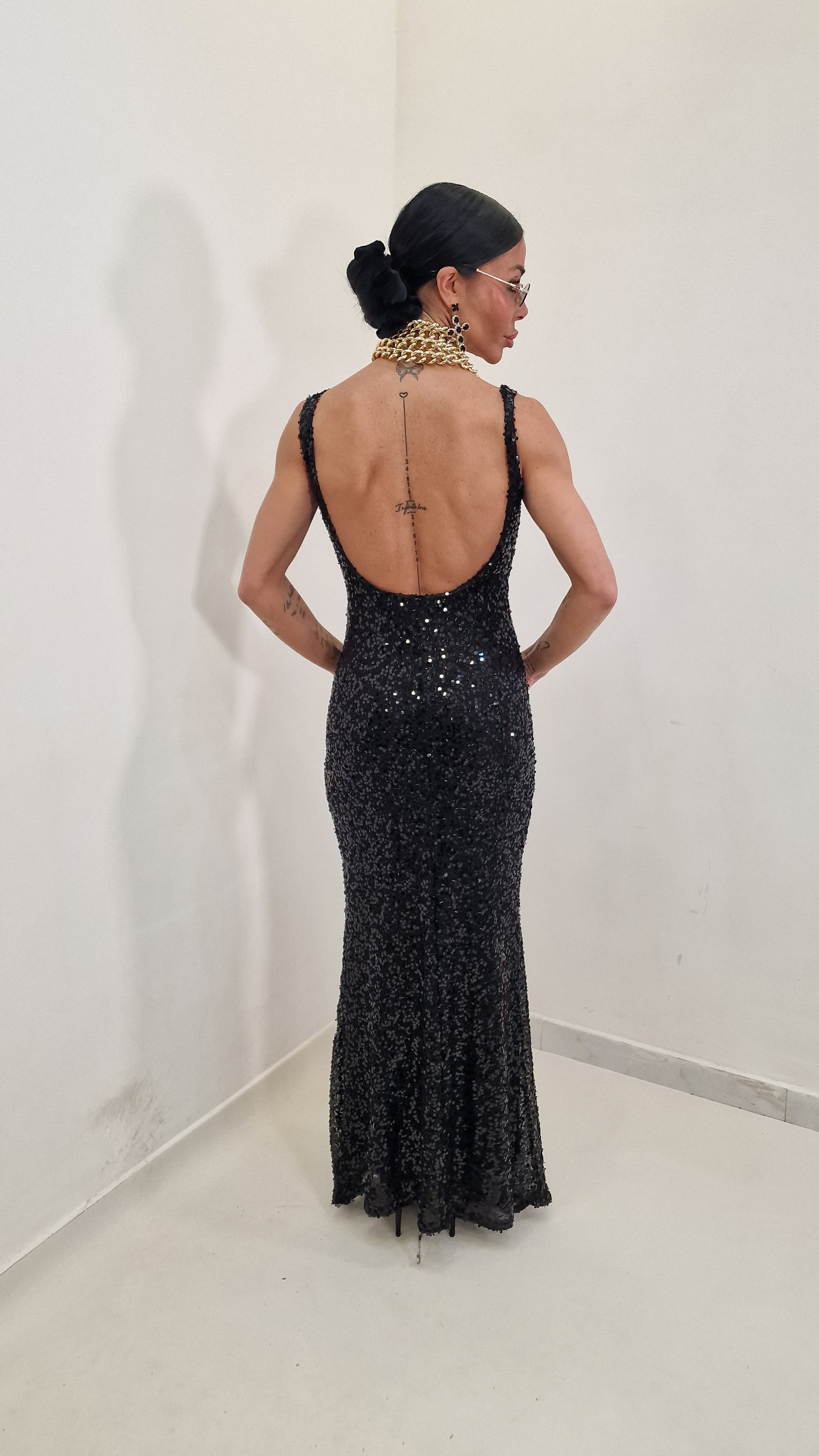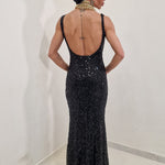 Long dress with sequins and low-cut back