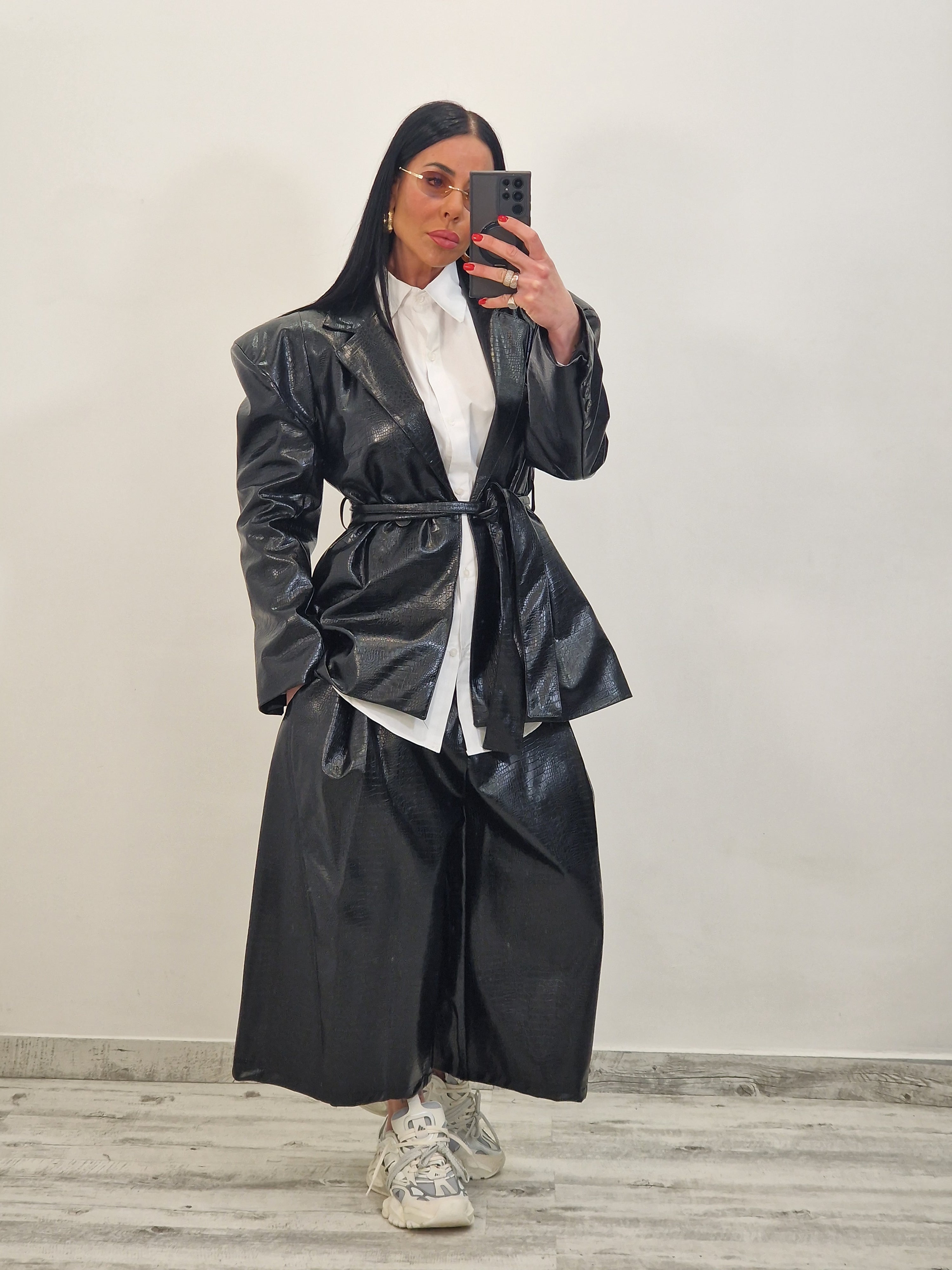 JESSIE black faux leather blazer