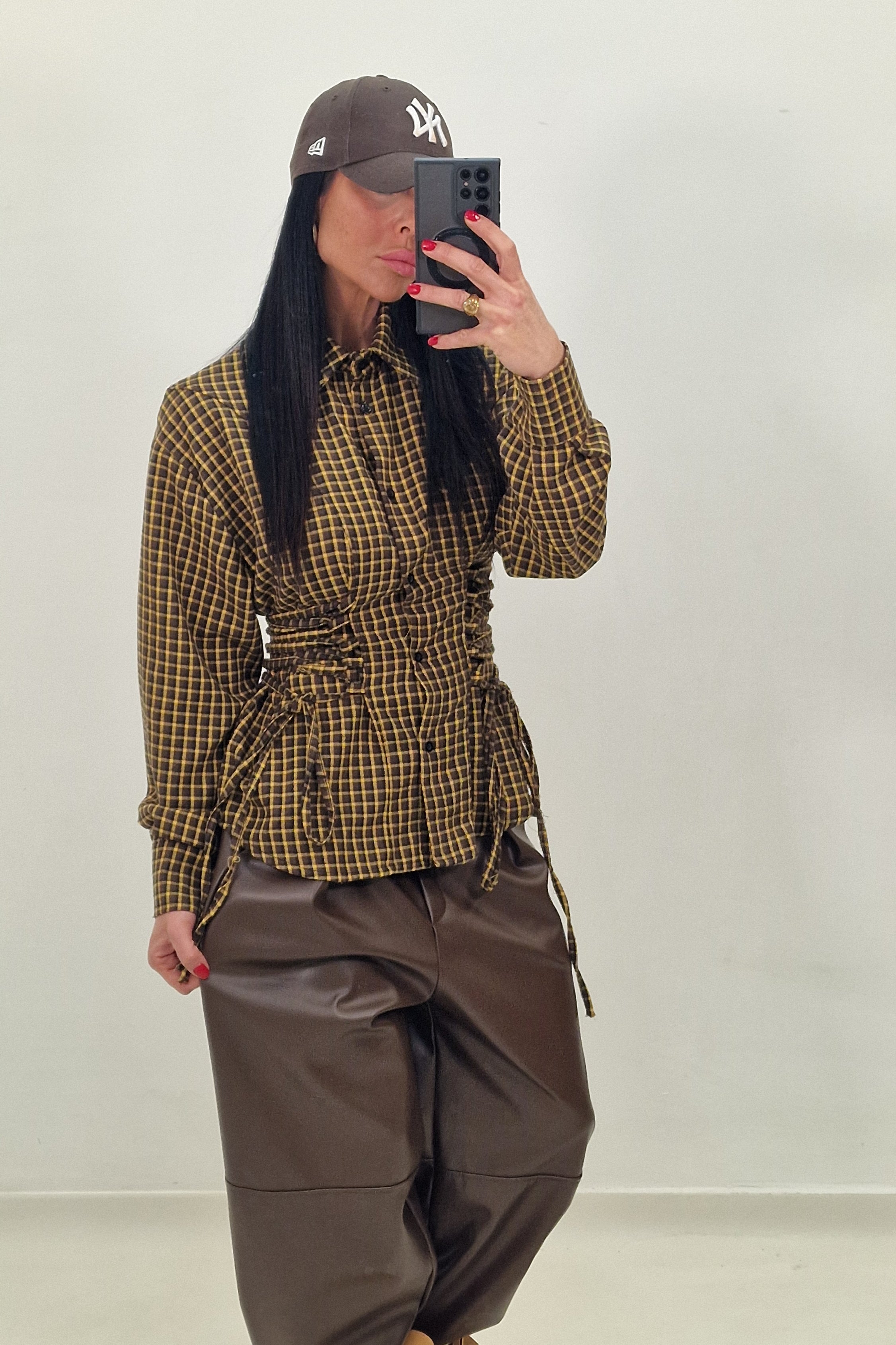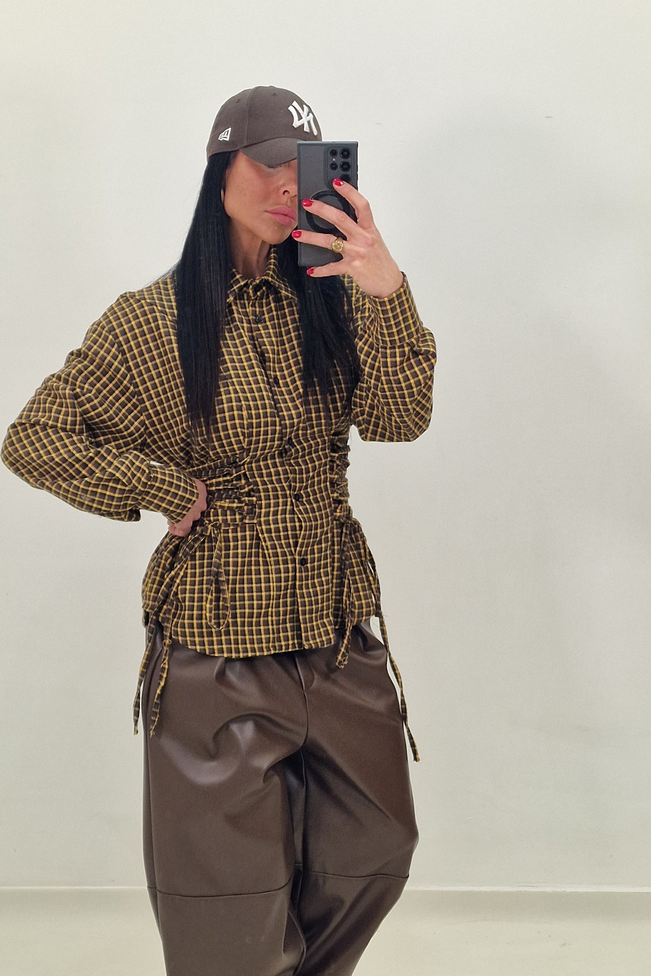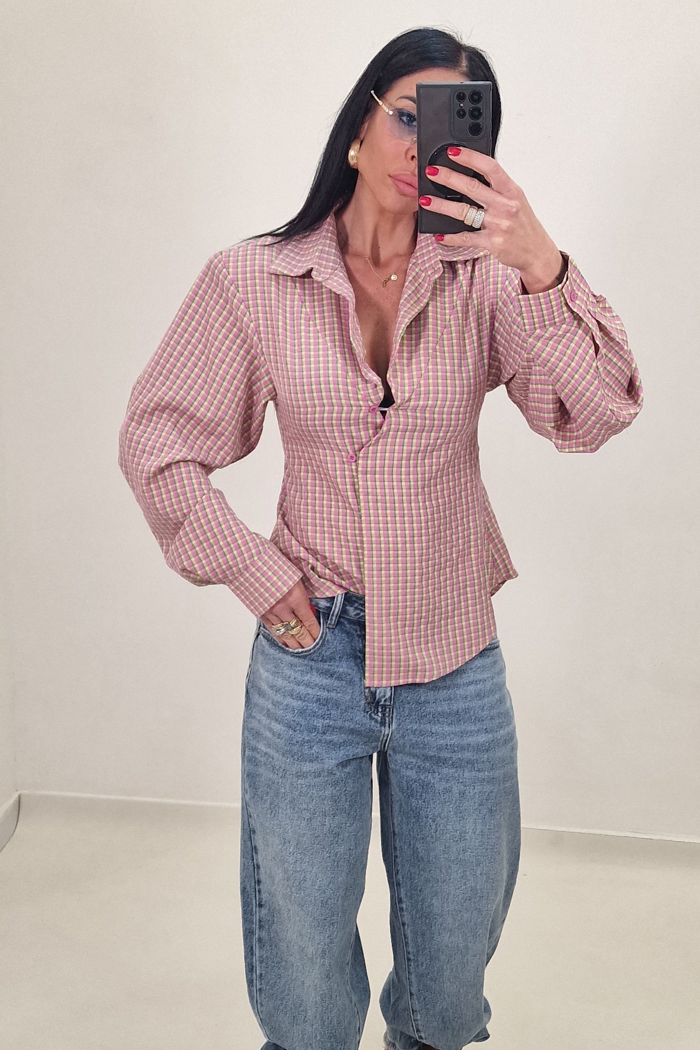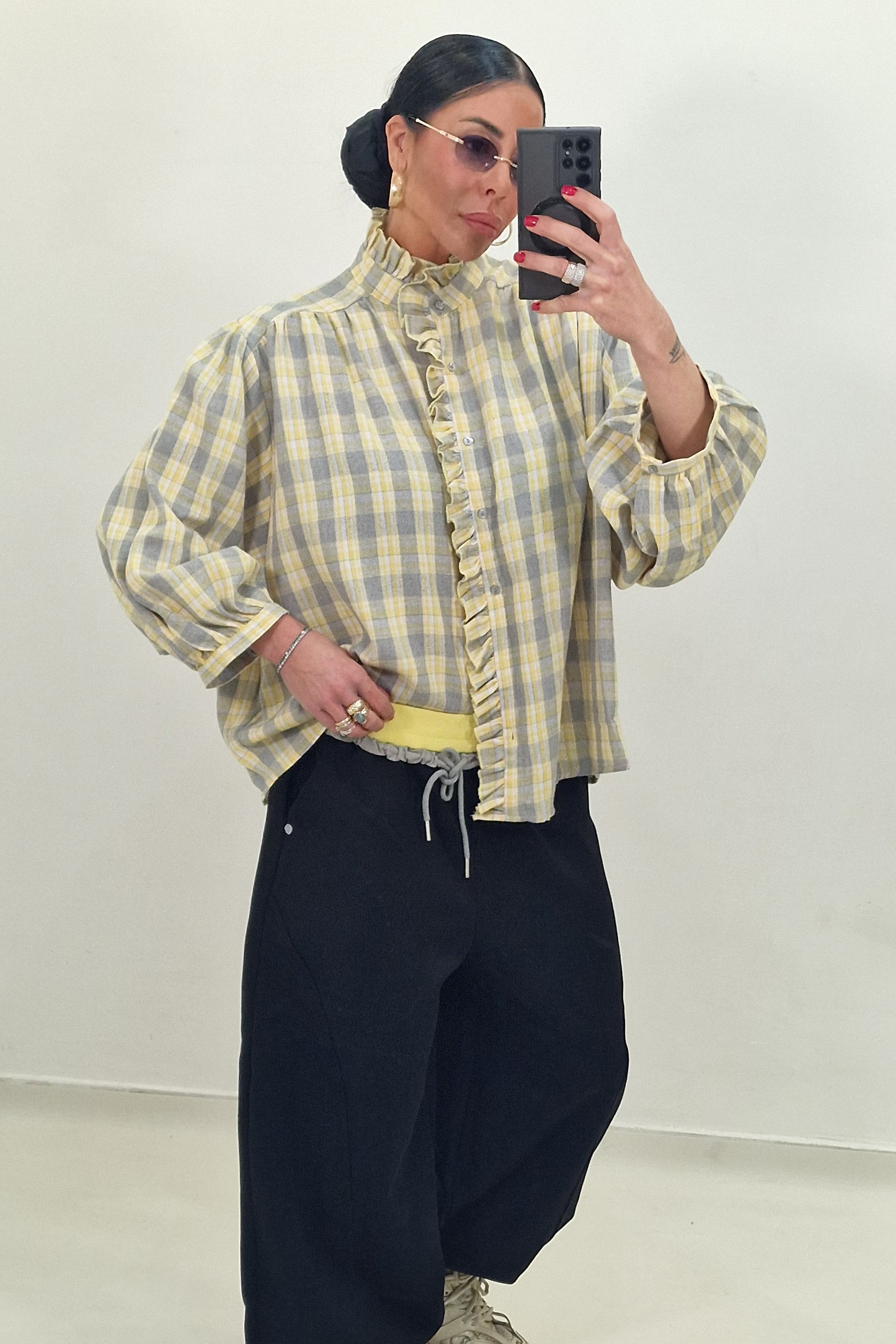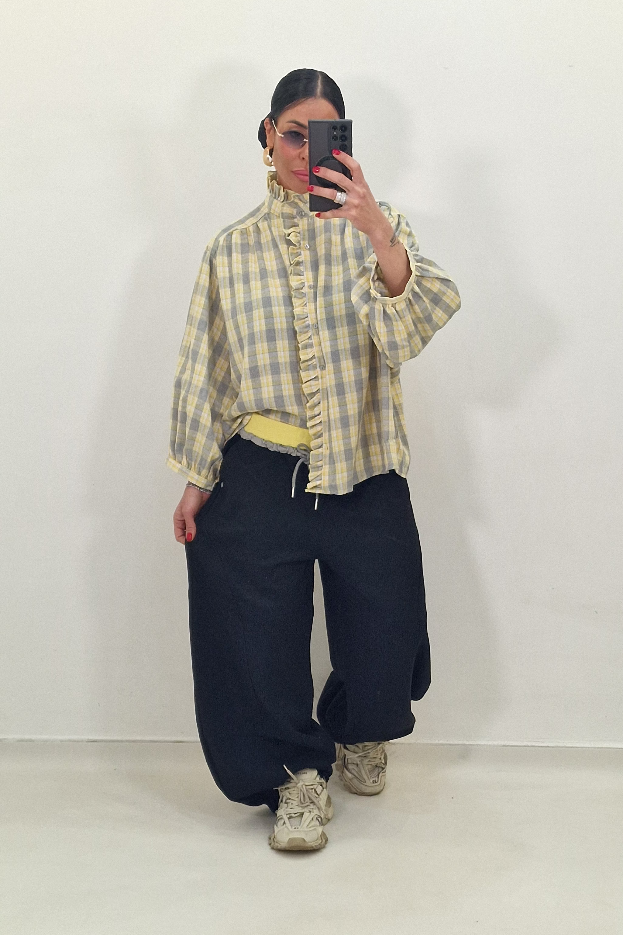 DAFNE shirt with yellow and red checks