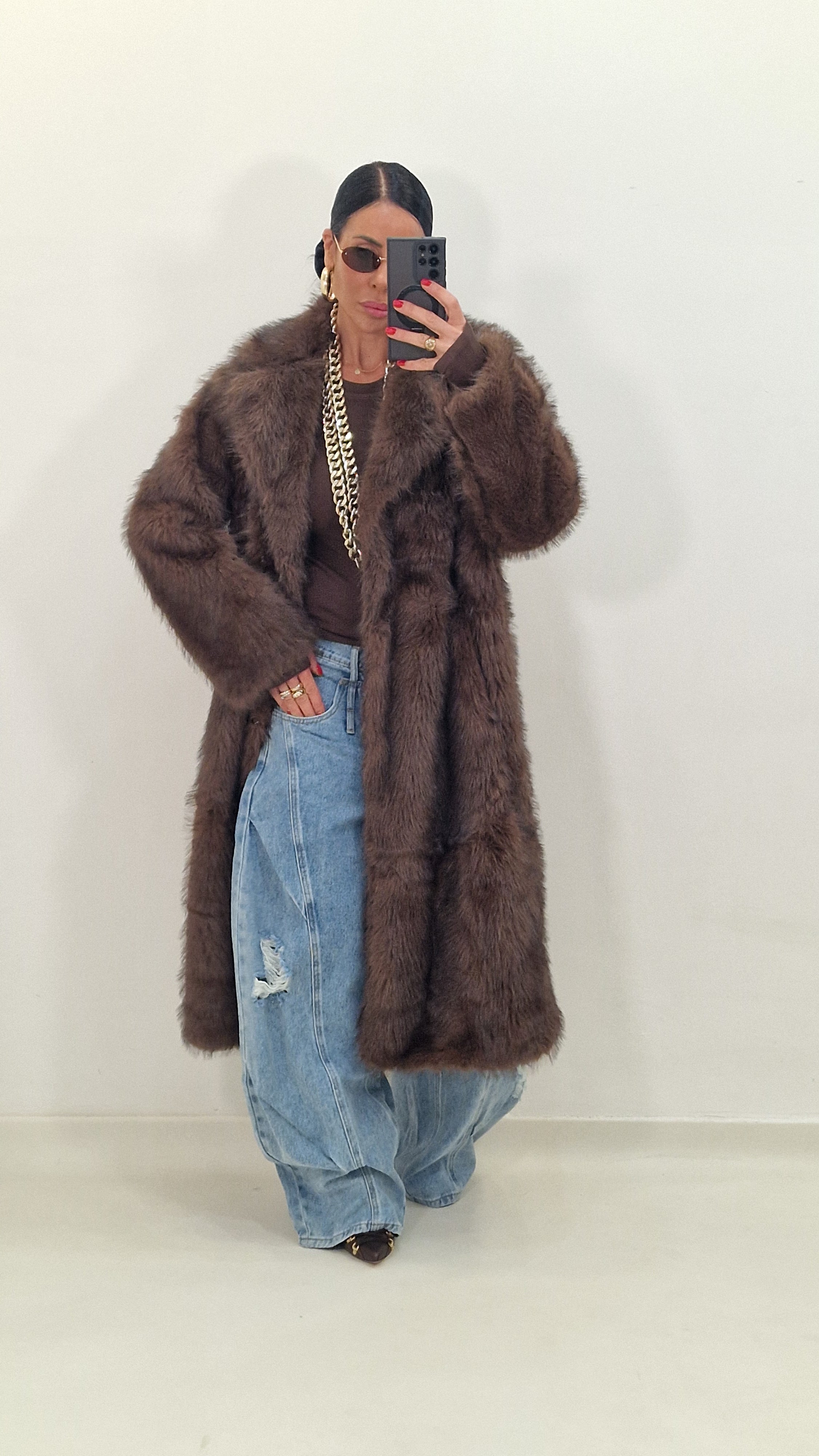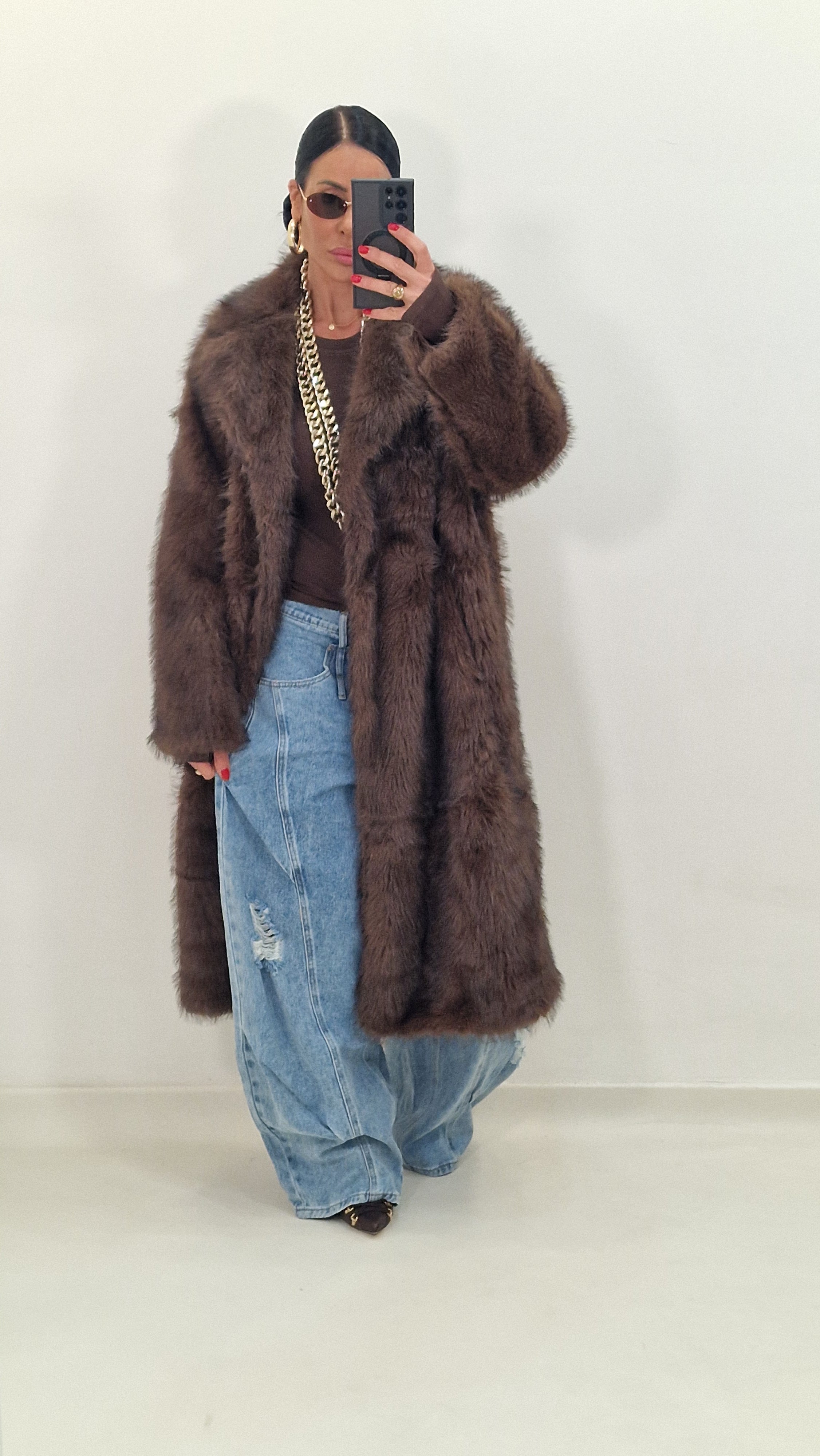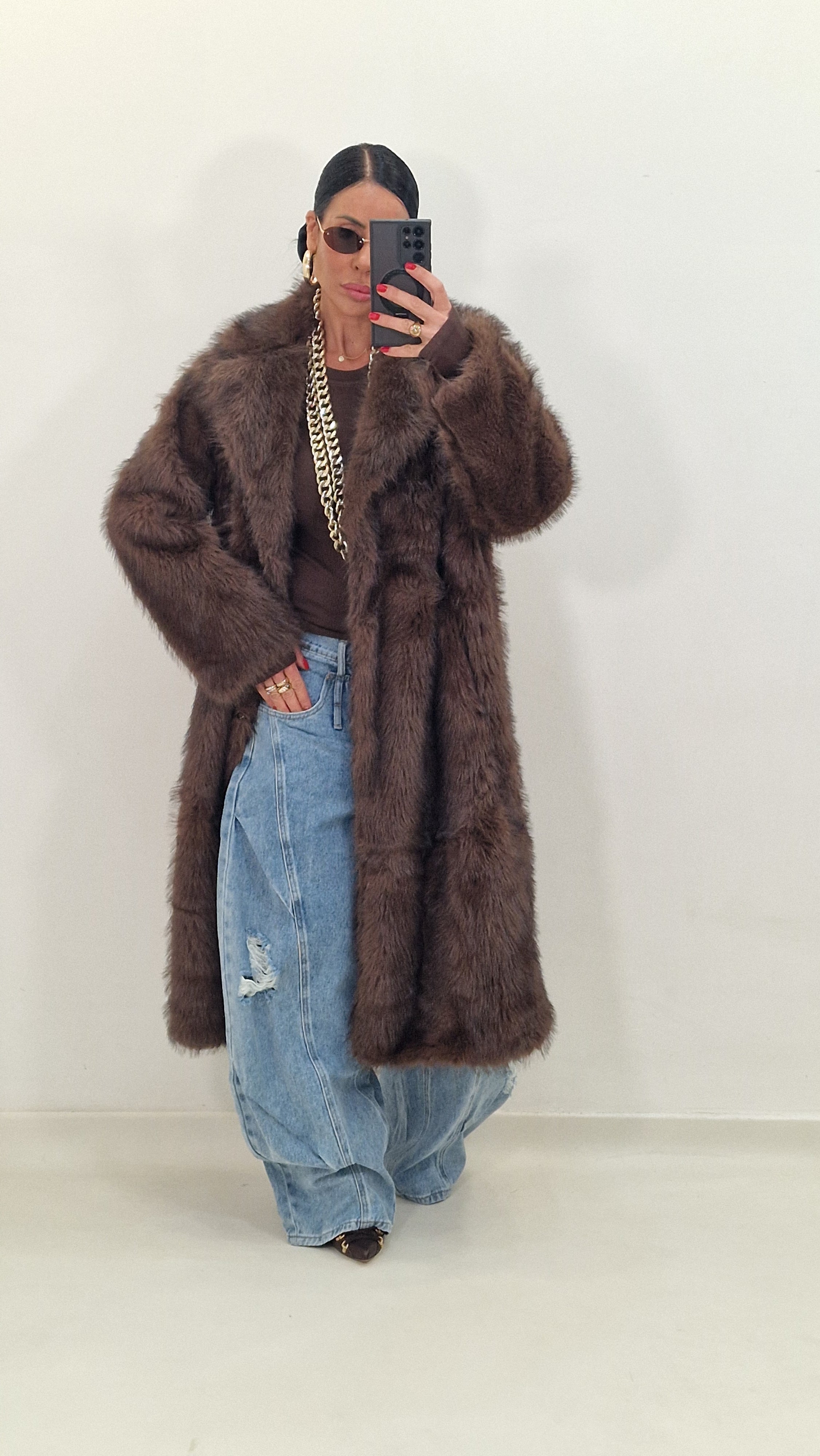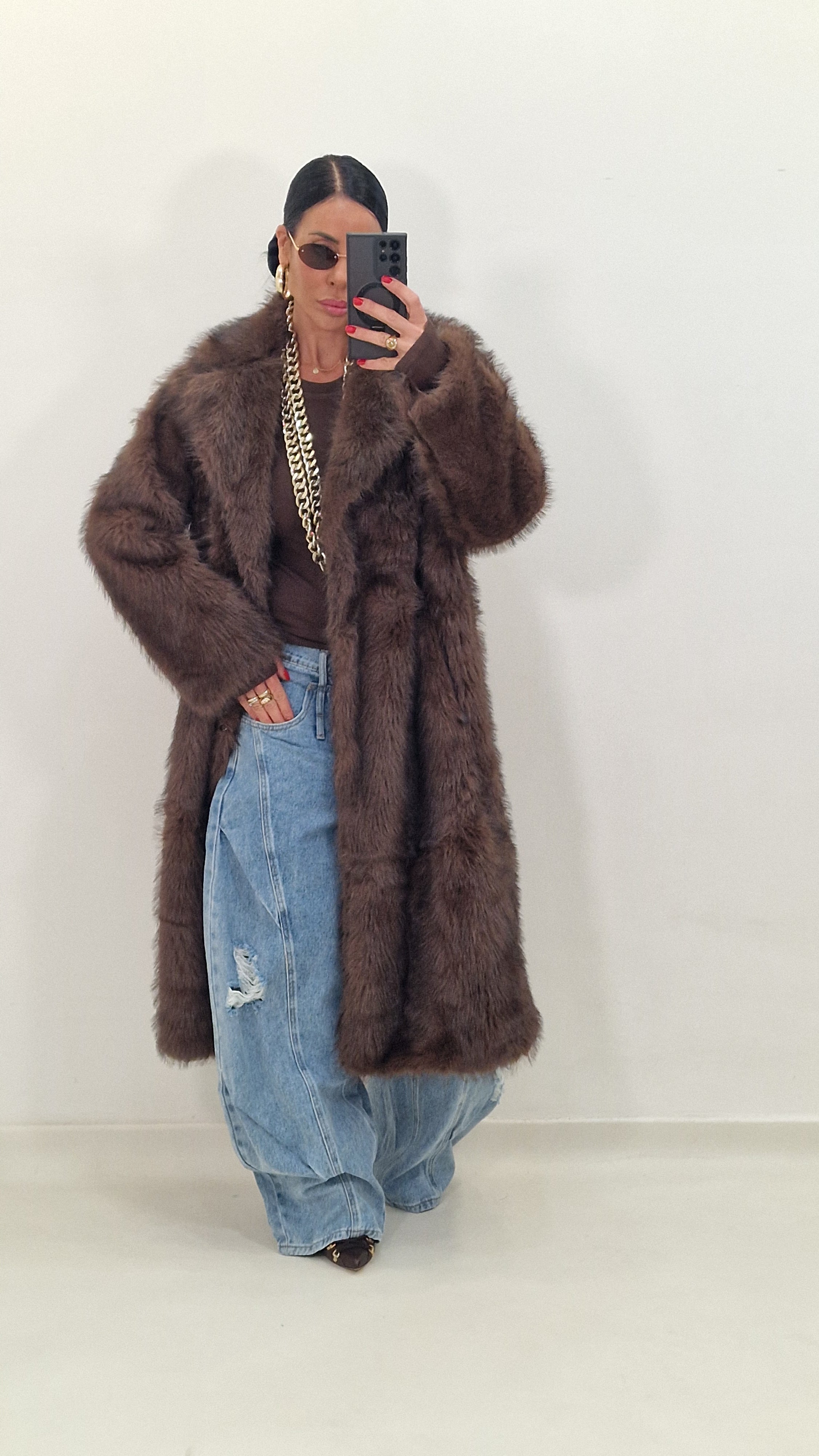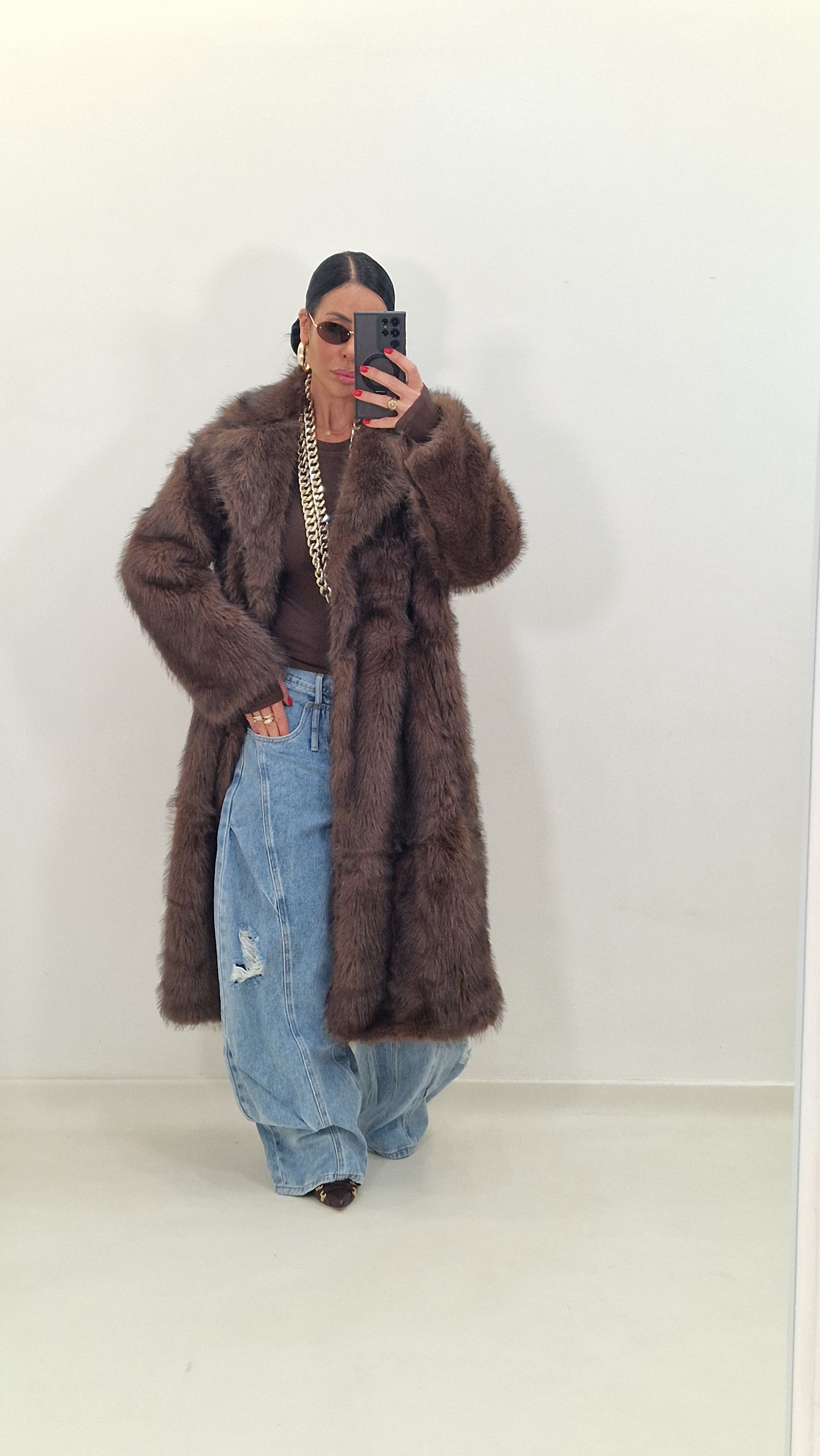 BRIGITTE brown eco fur coat