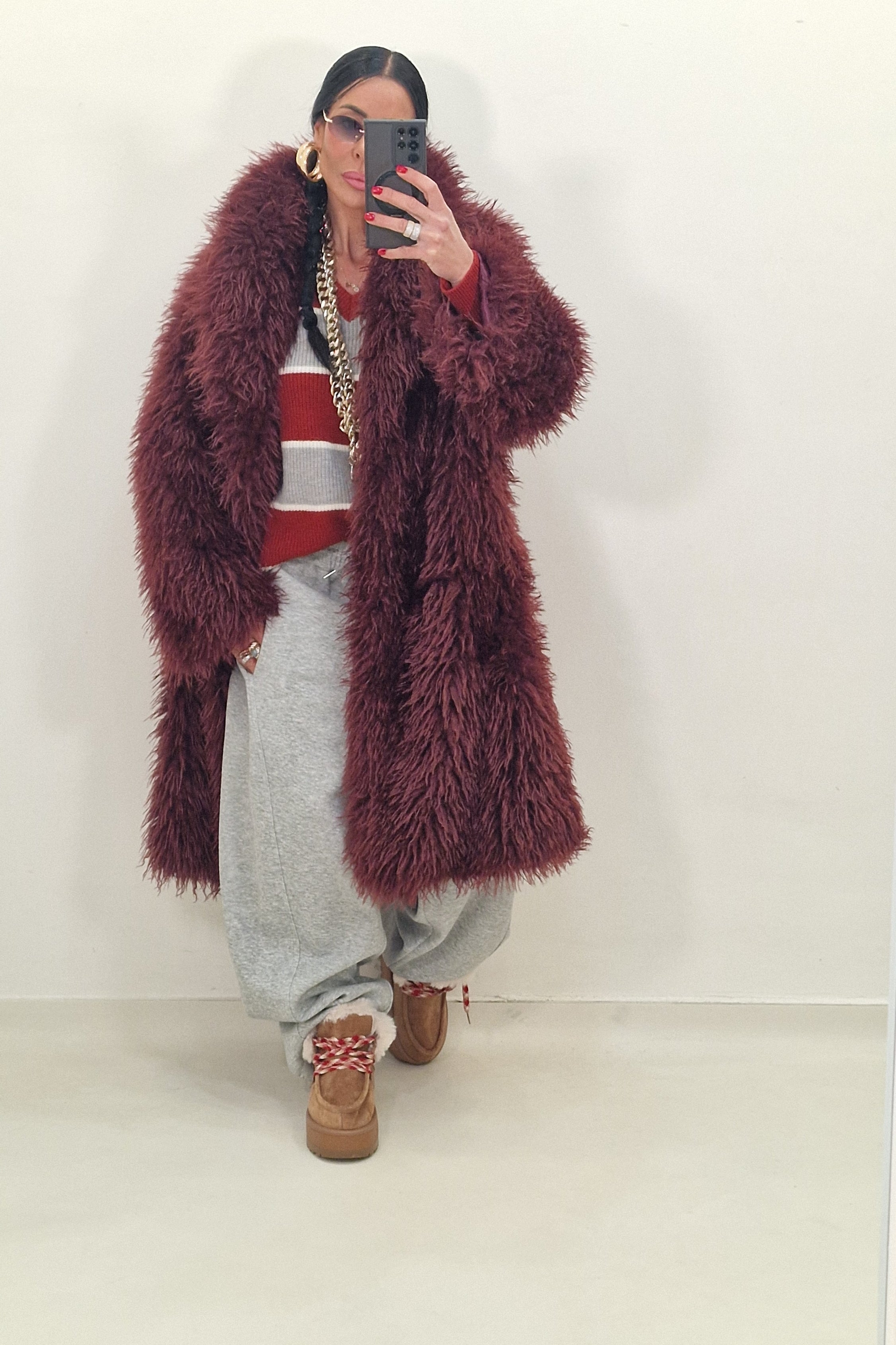 ESMERALDA burgundy eco fur coat