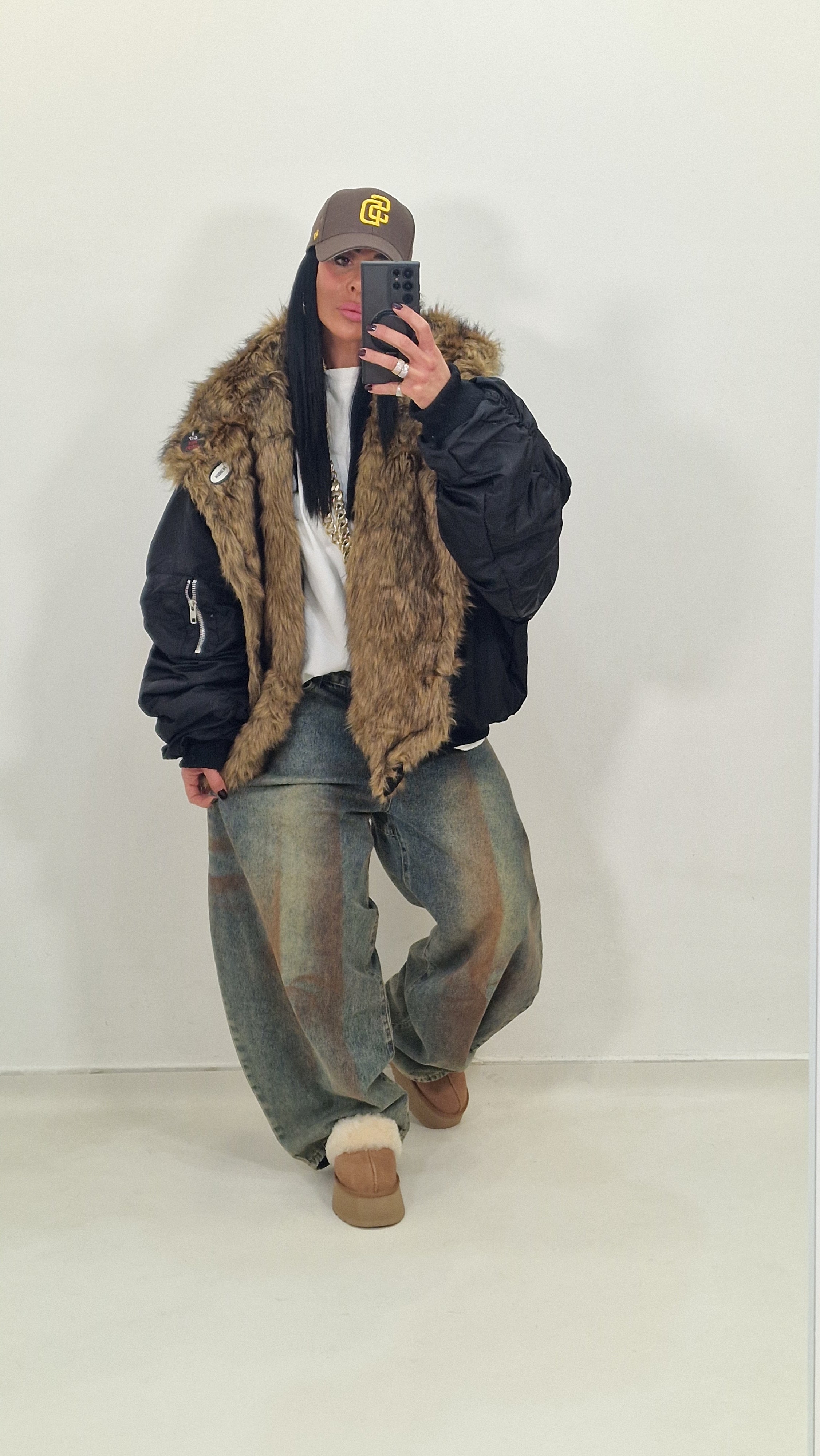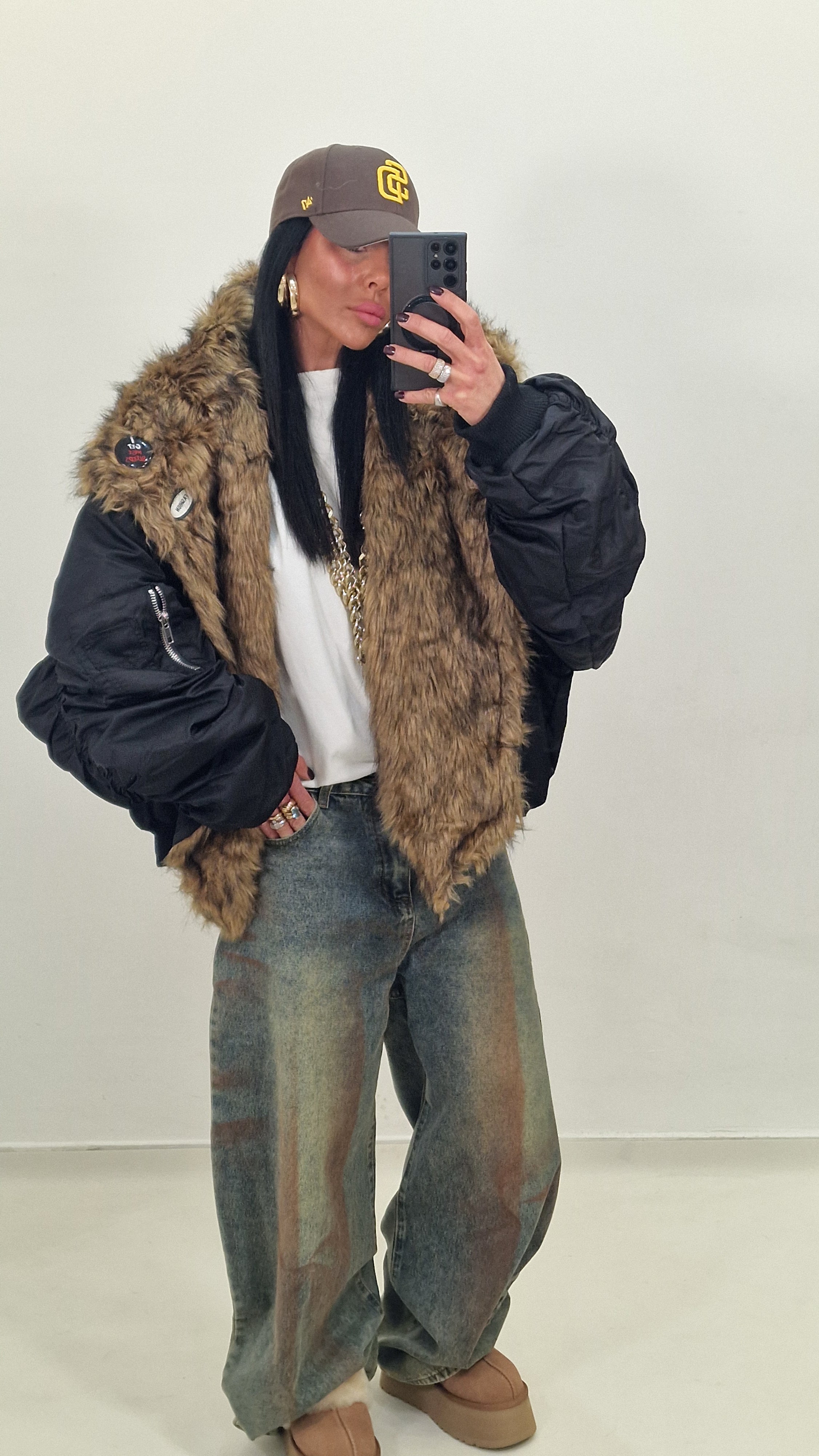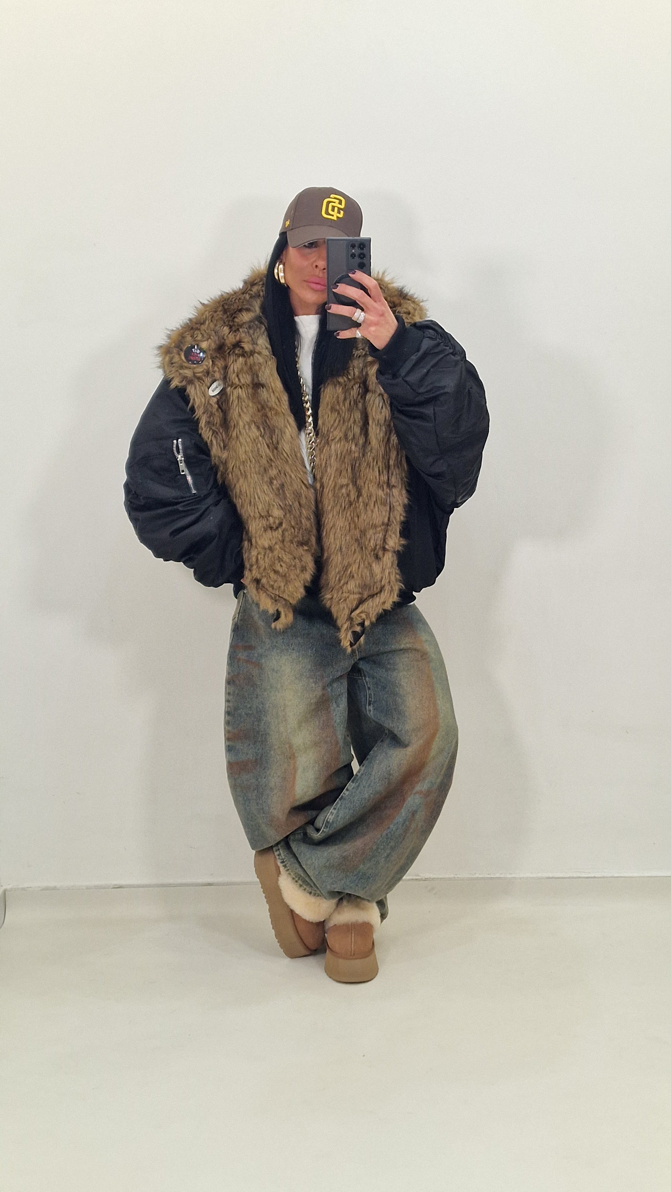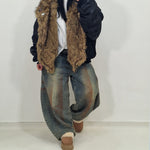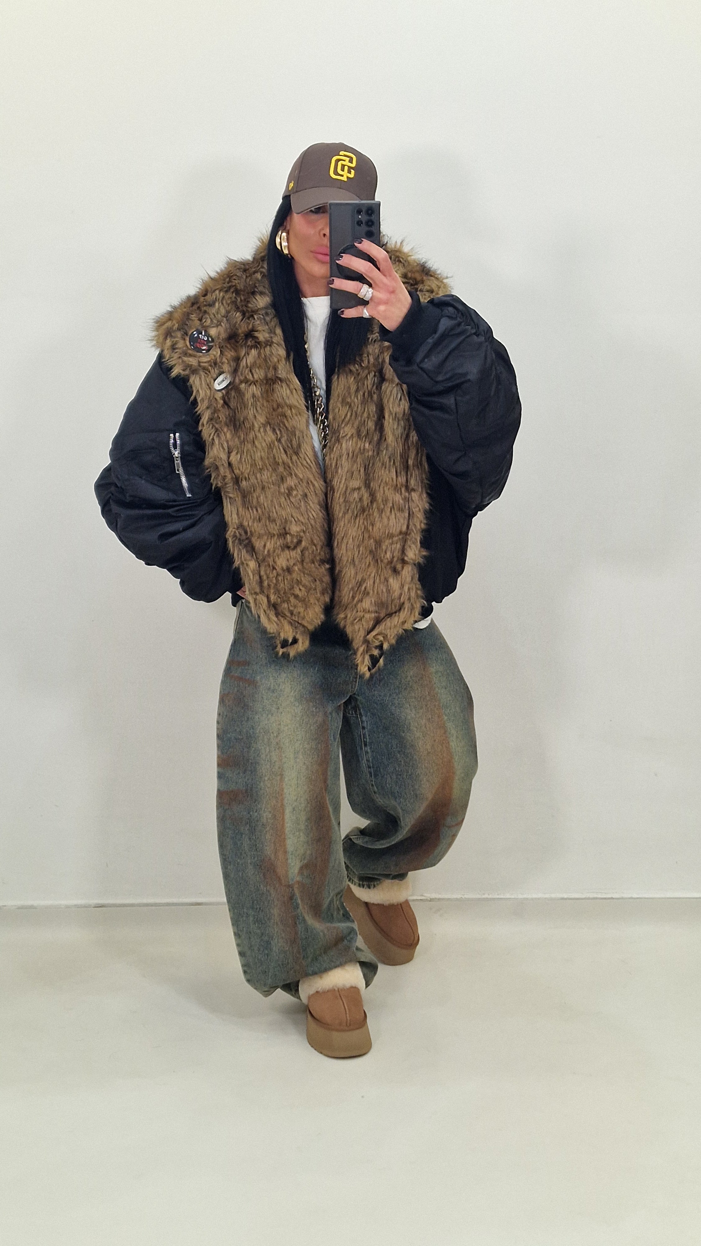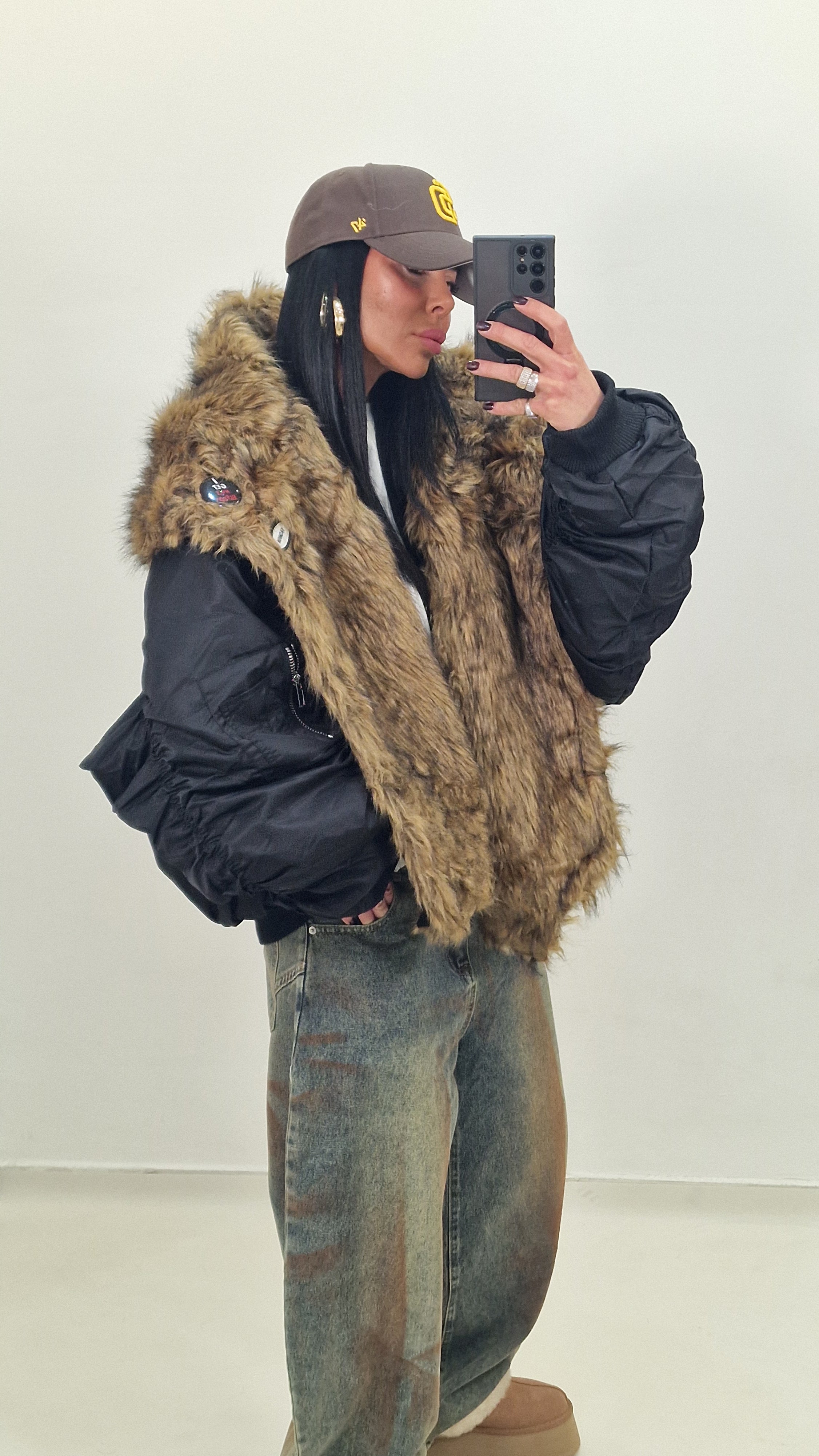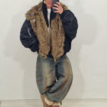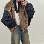 Bomber over con collo di pelliccia