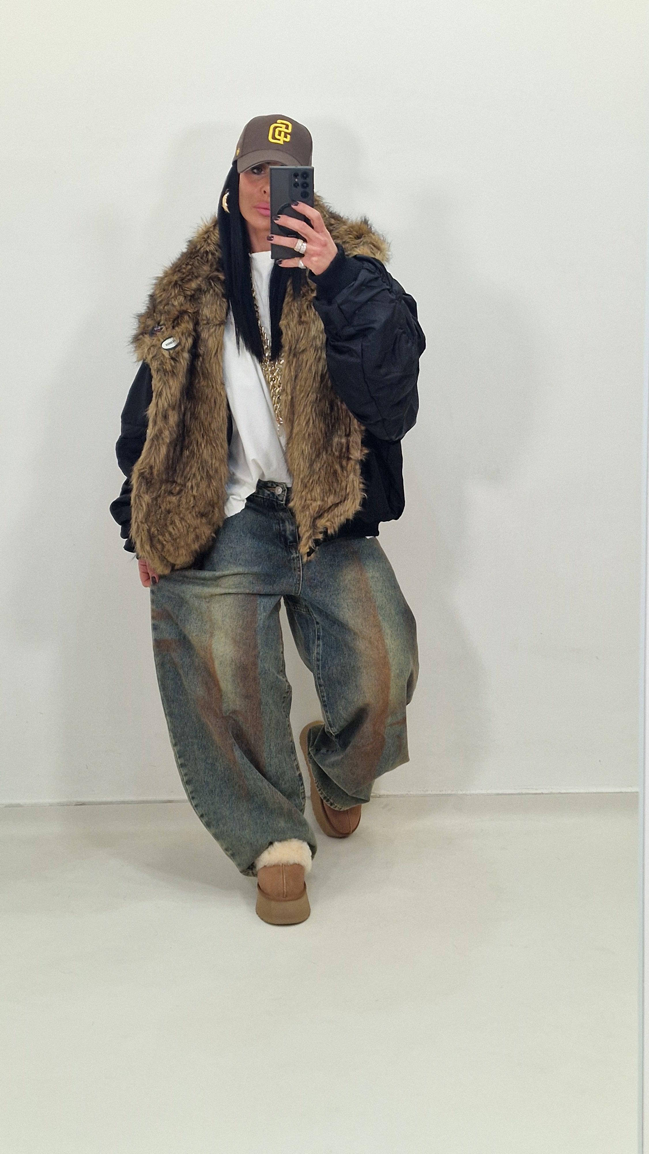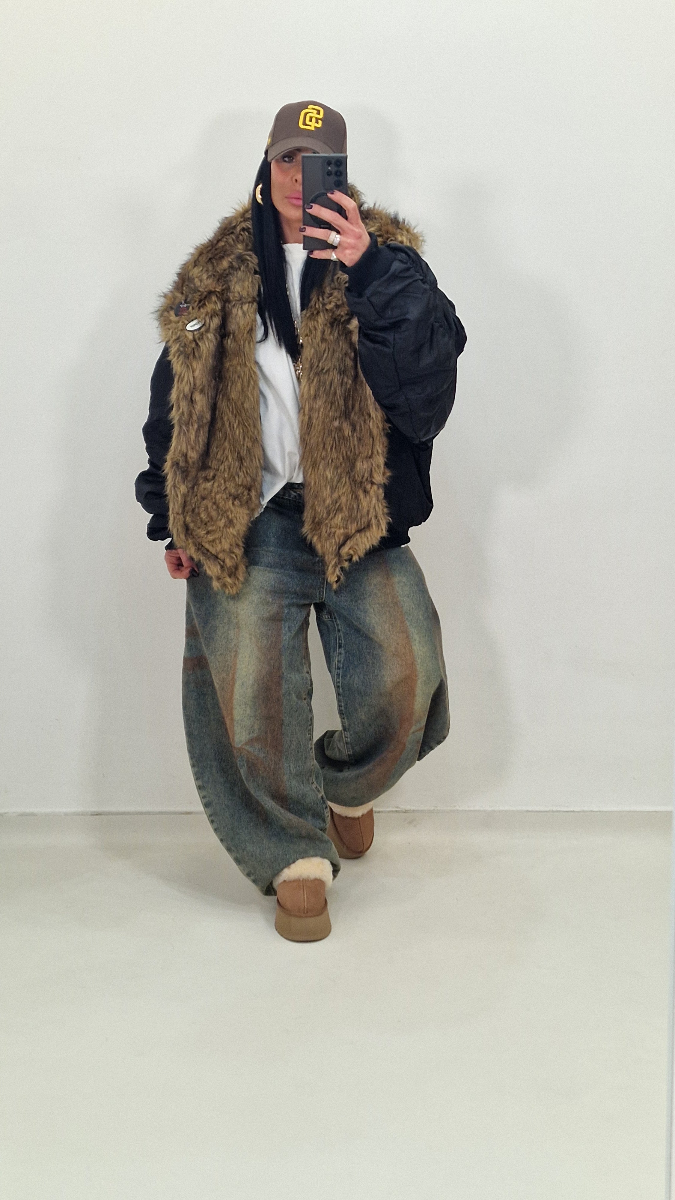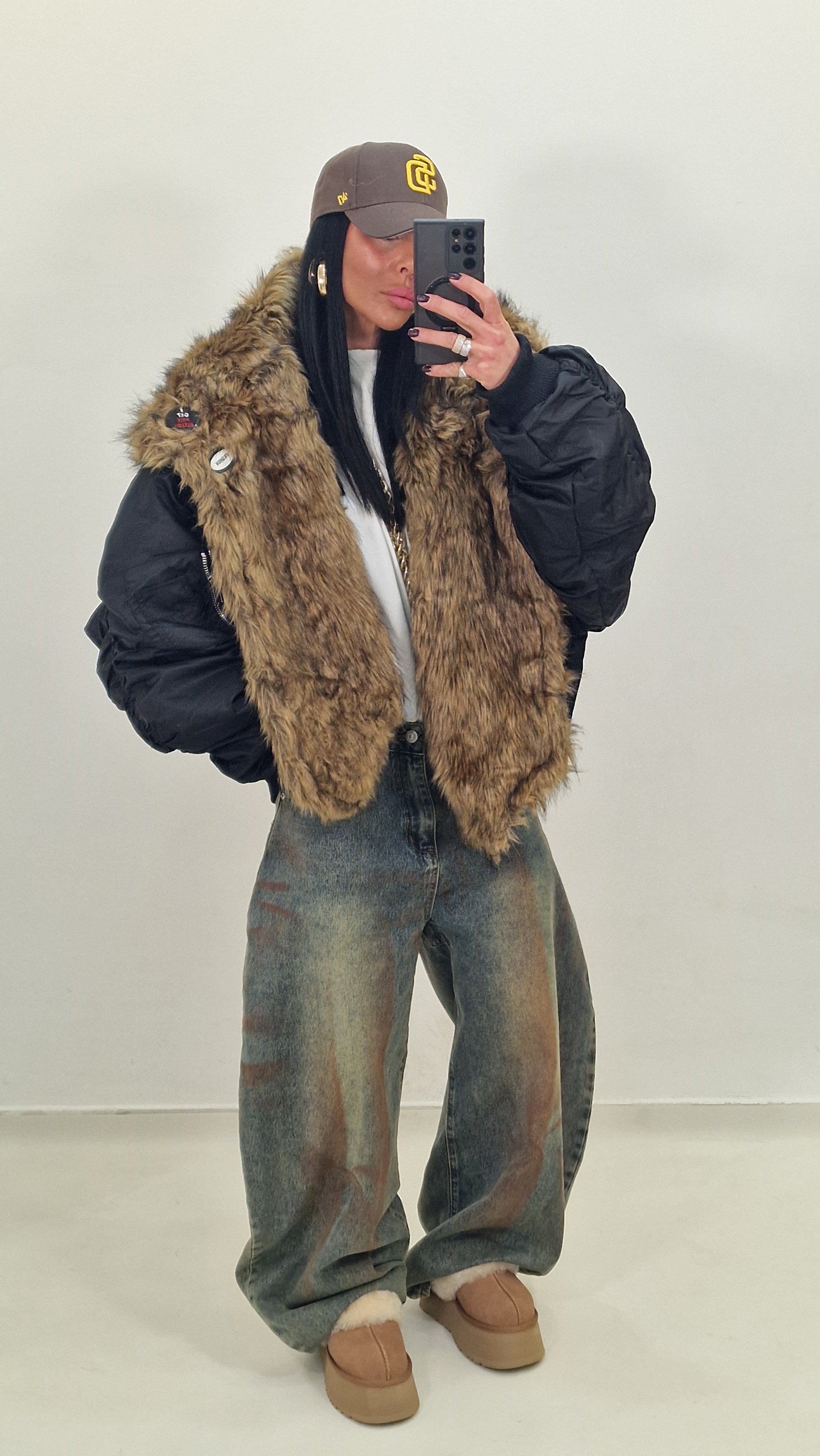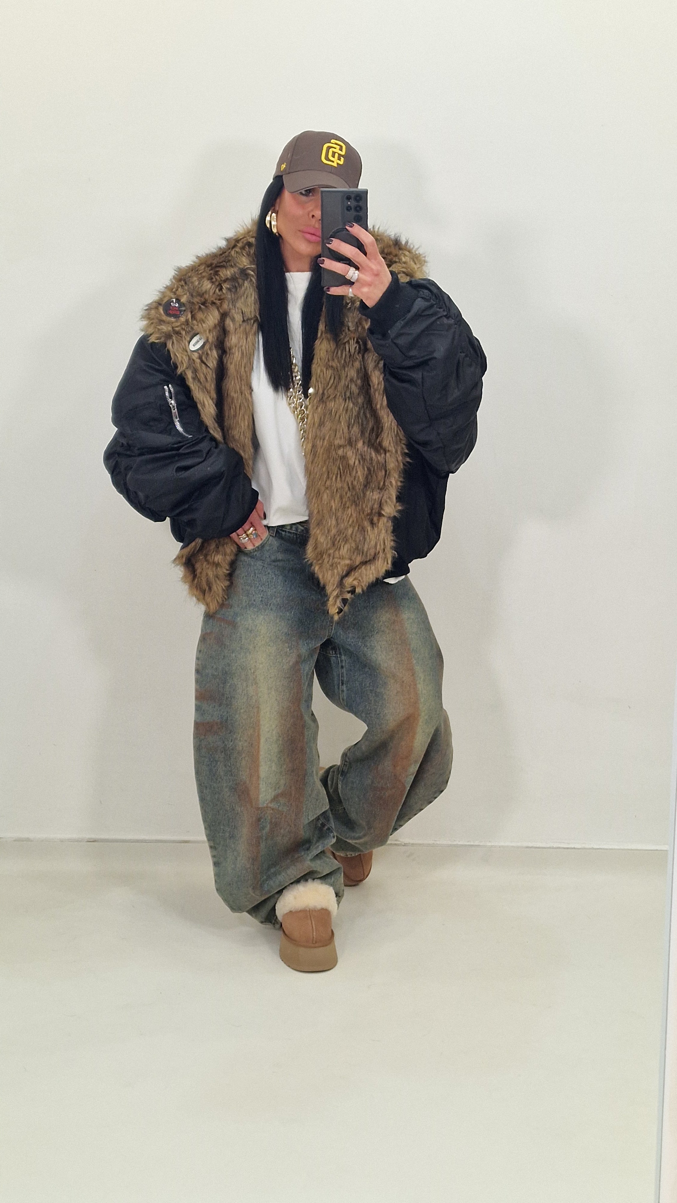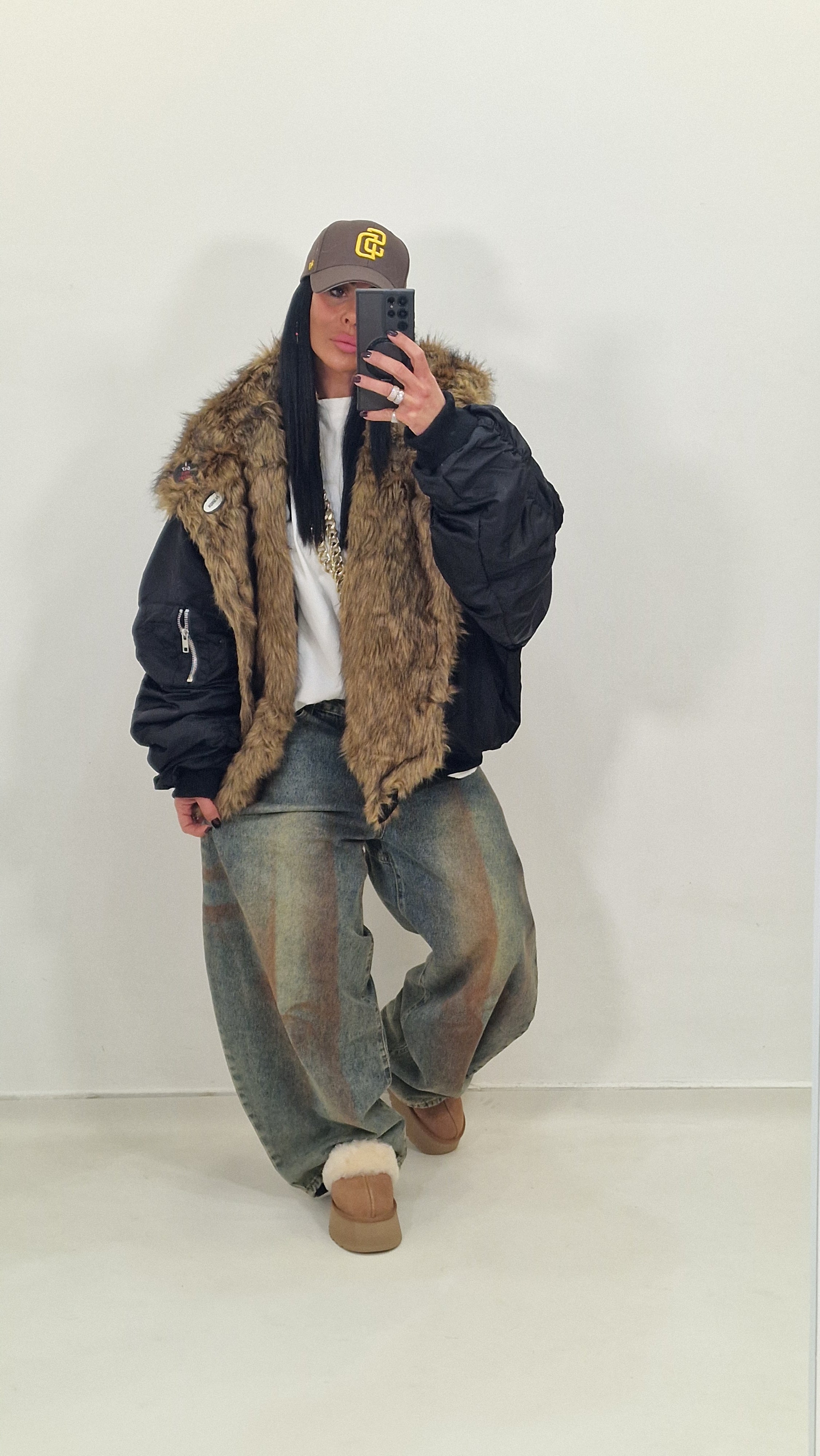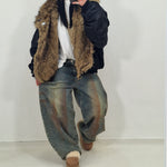 Bomber over con collo di pelliccia