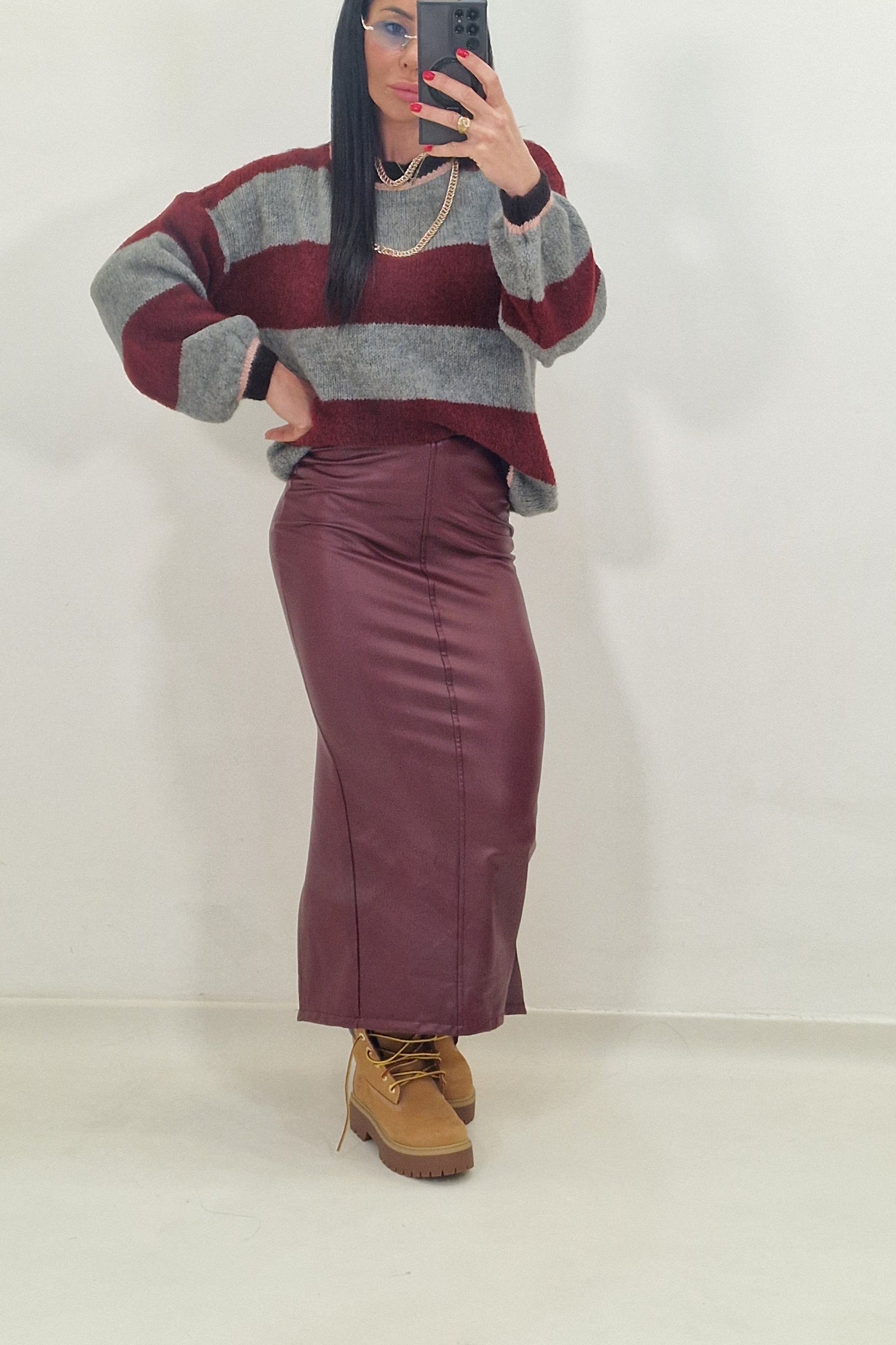 CORINNE burgundy faux leather skirt