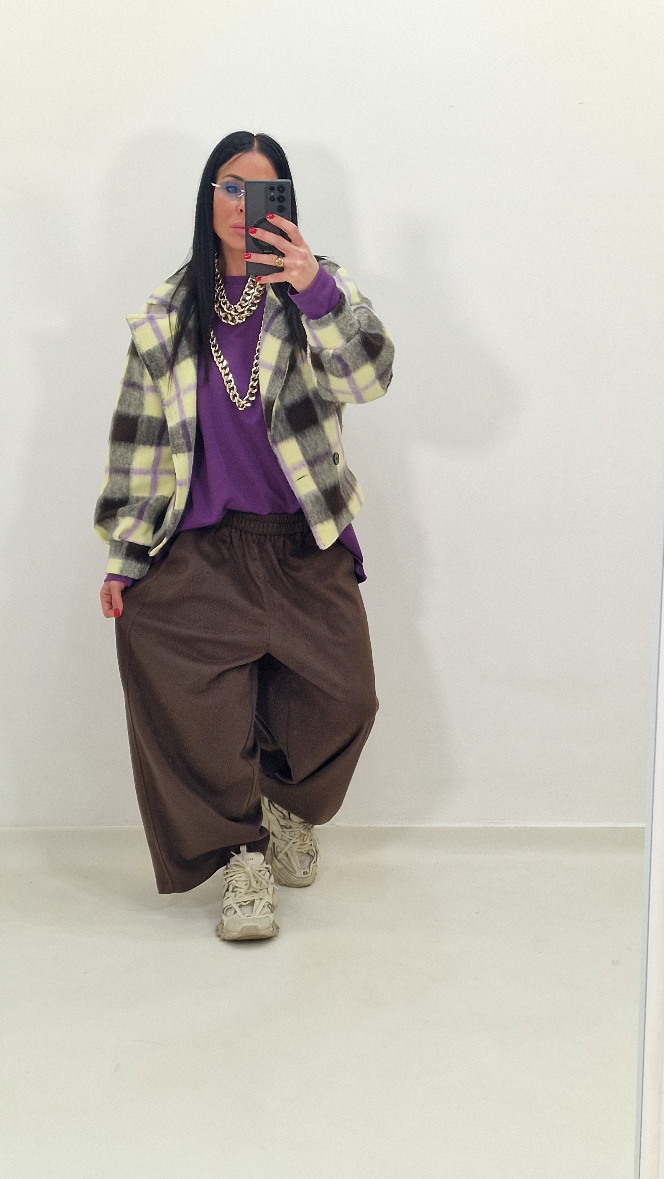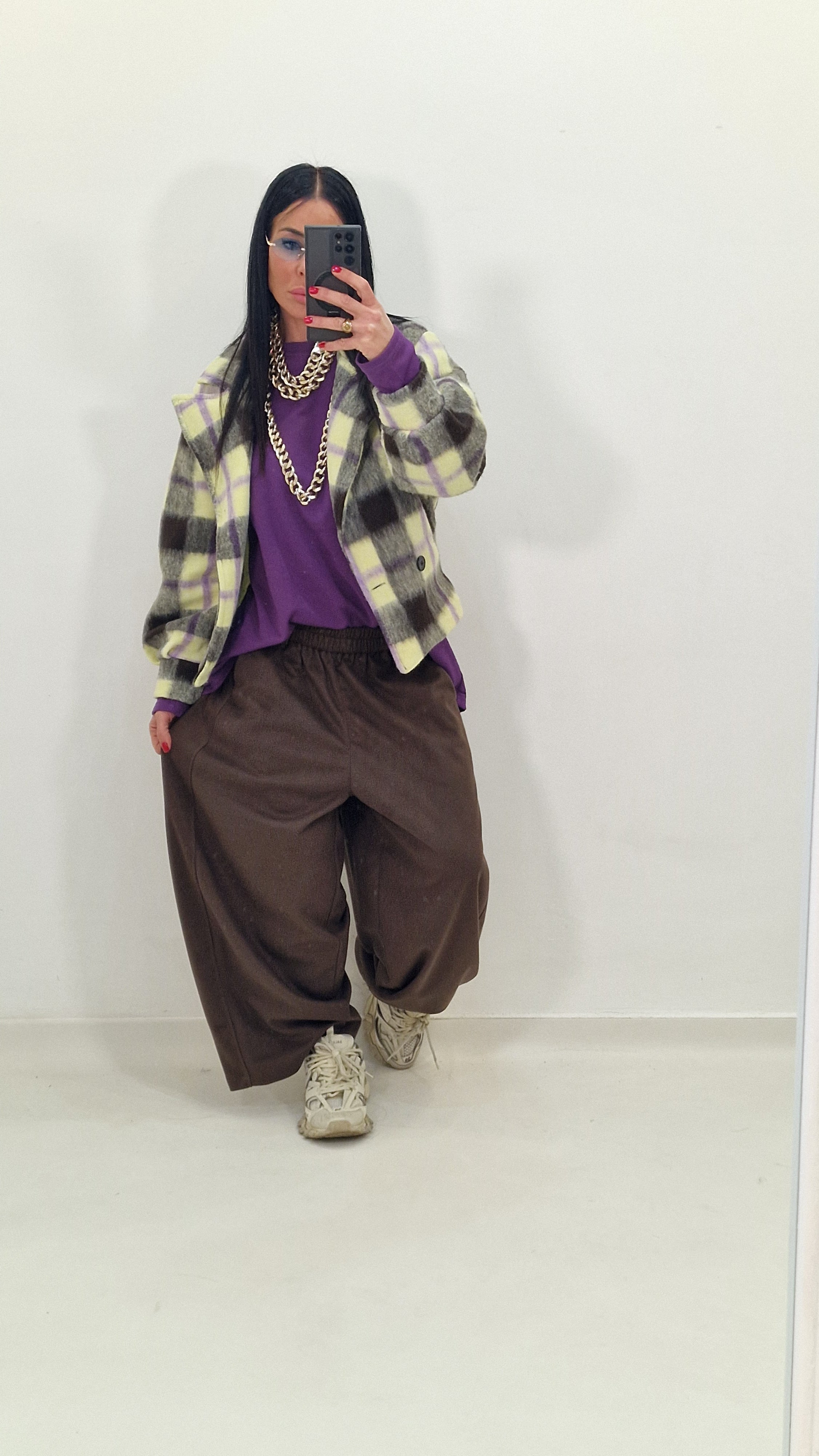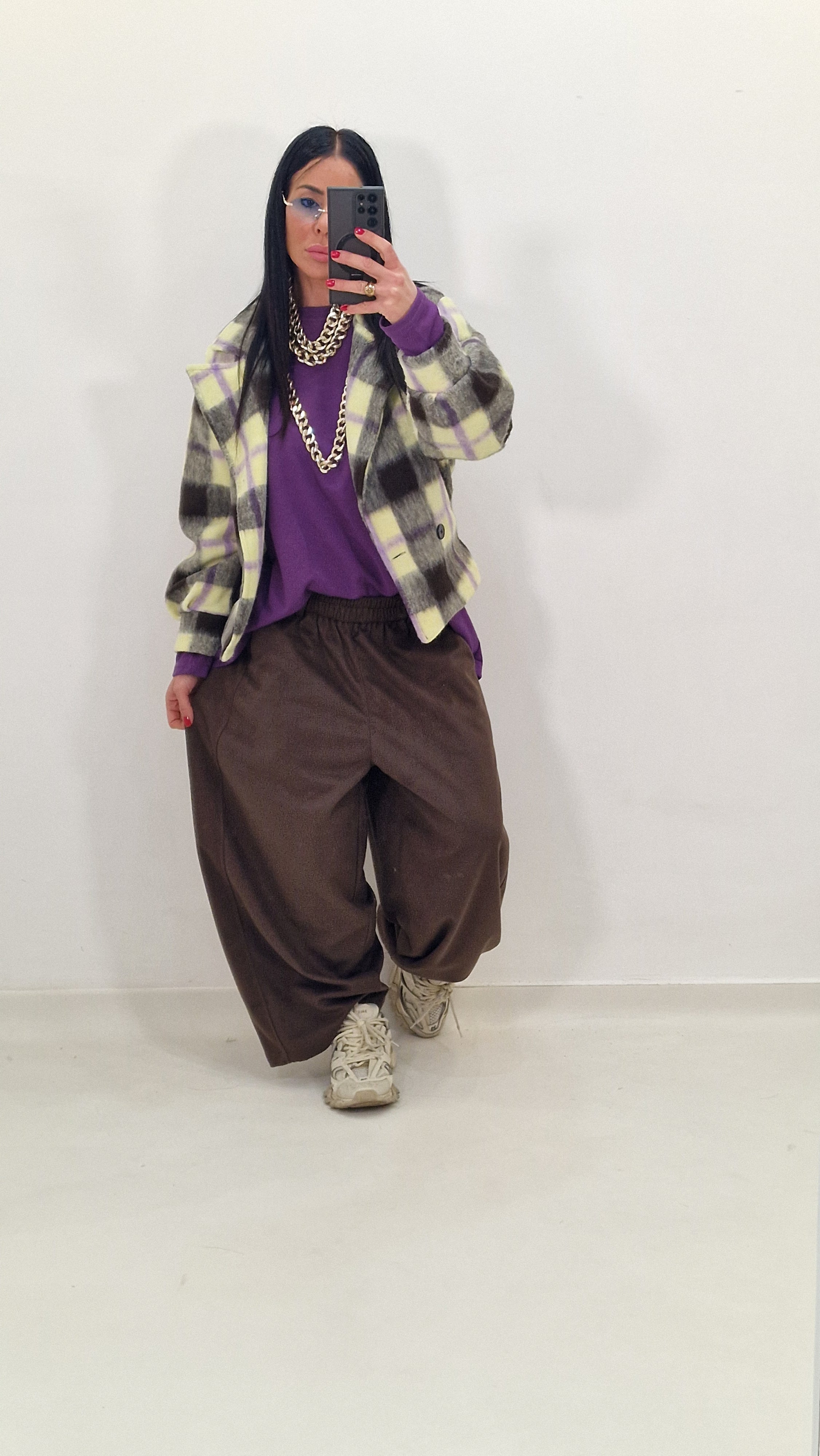 Balloon-style trousers in double material with elastic waist.