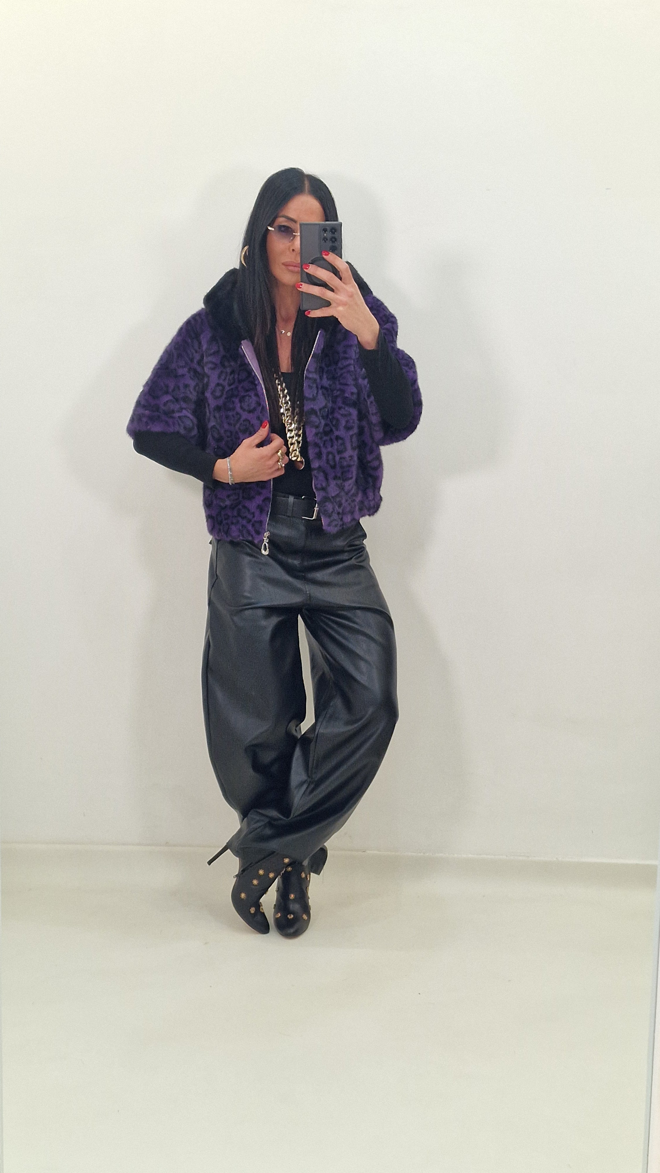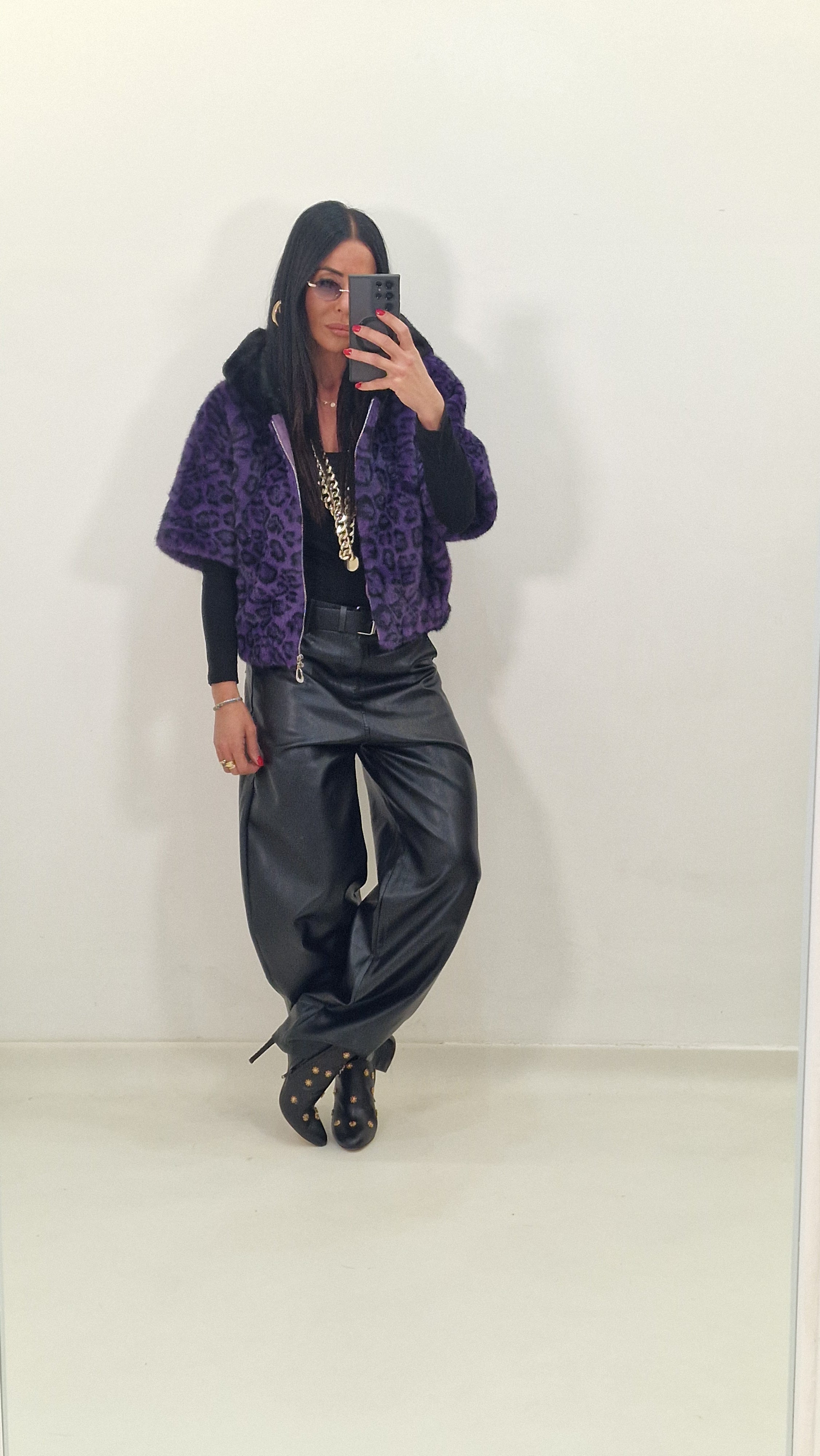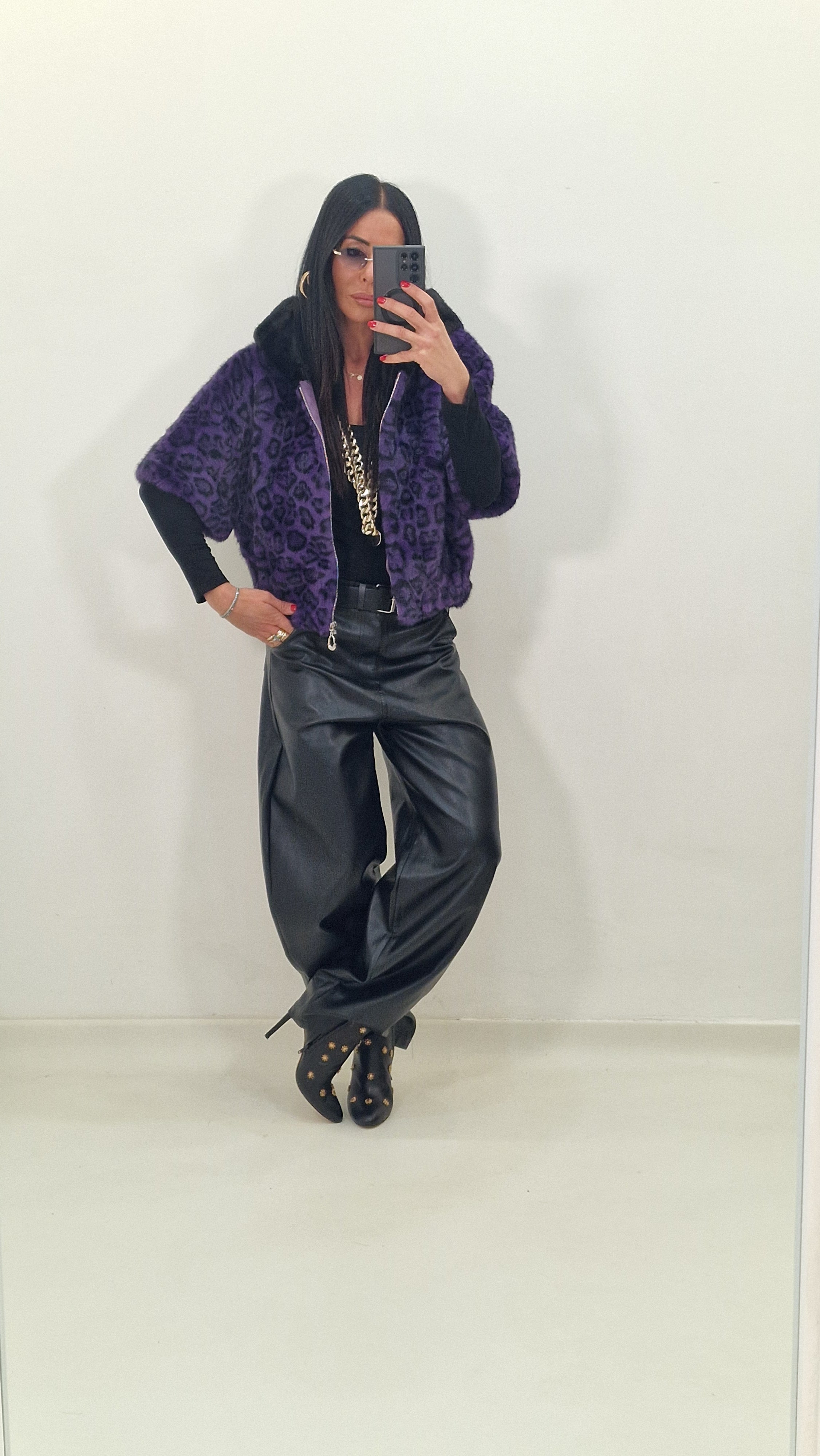 MOON black faux leather trousers