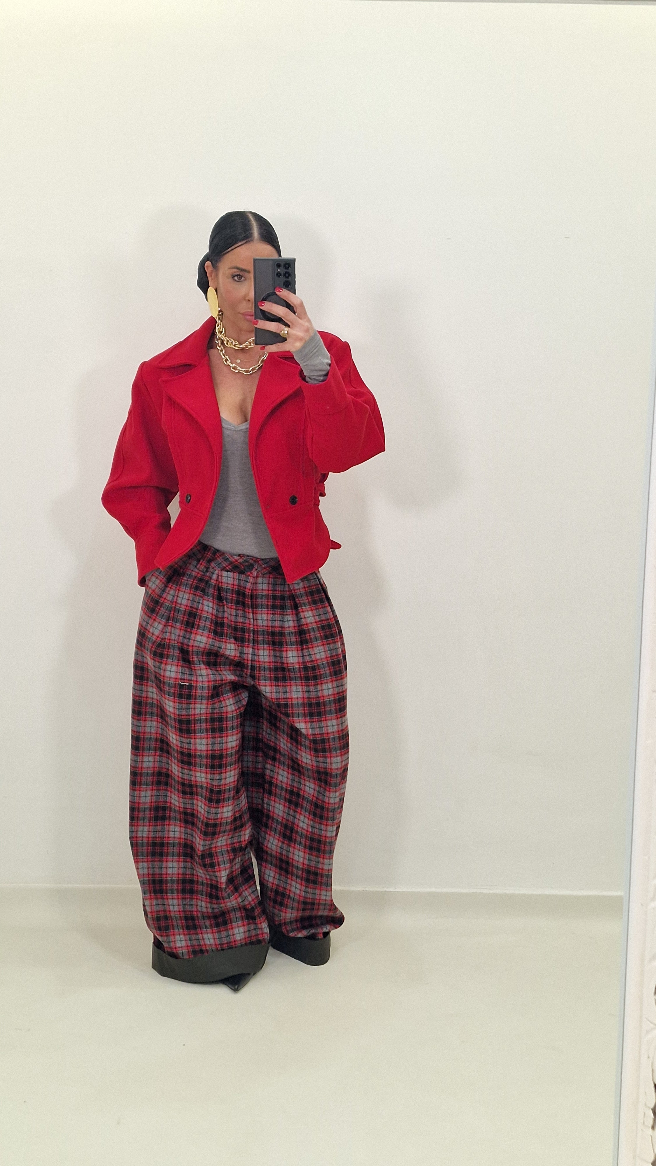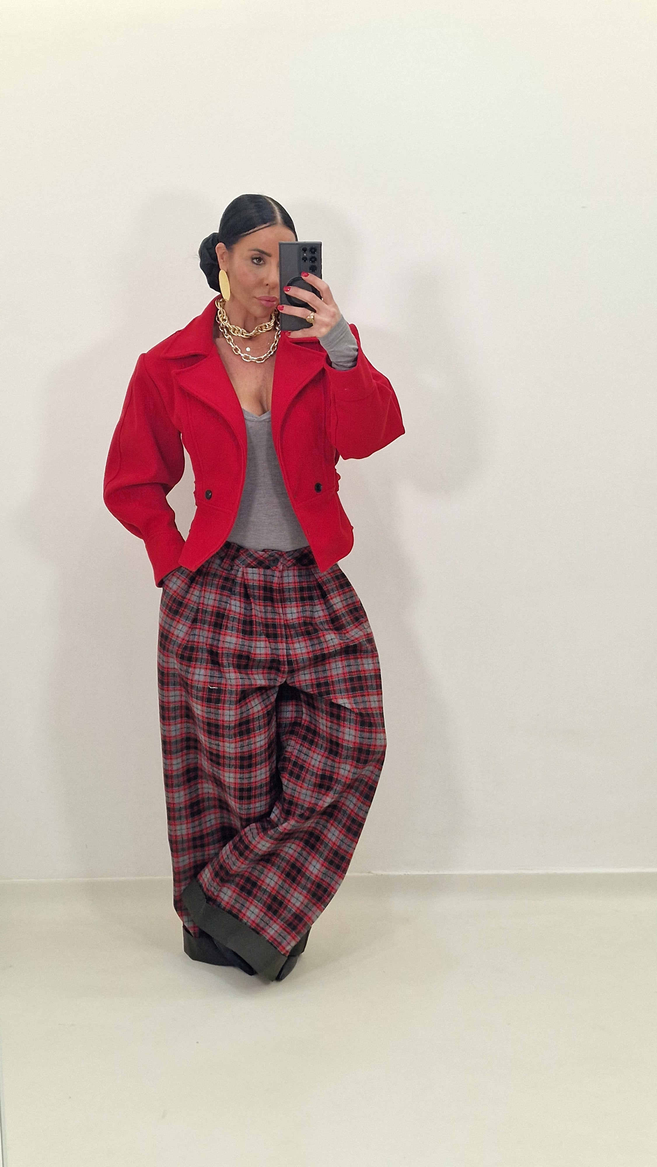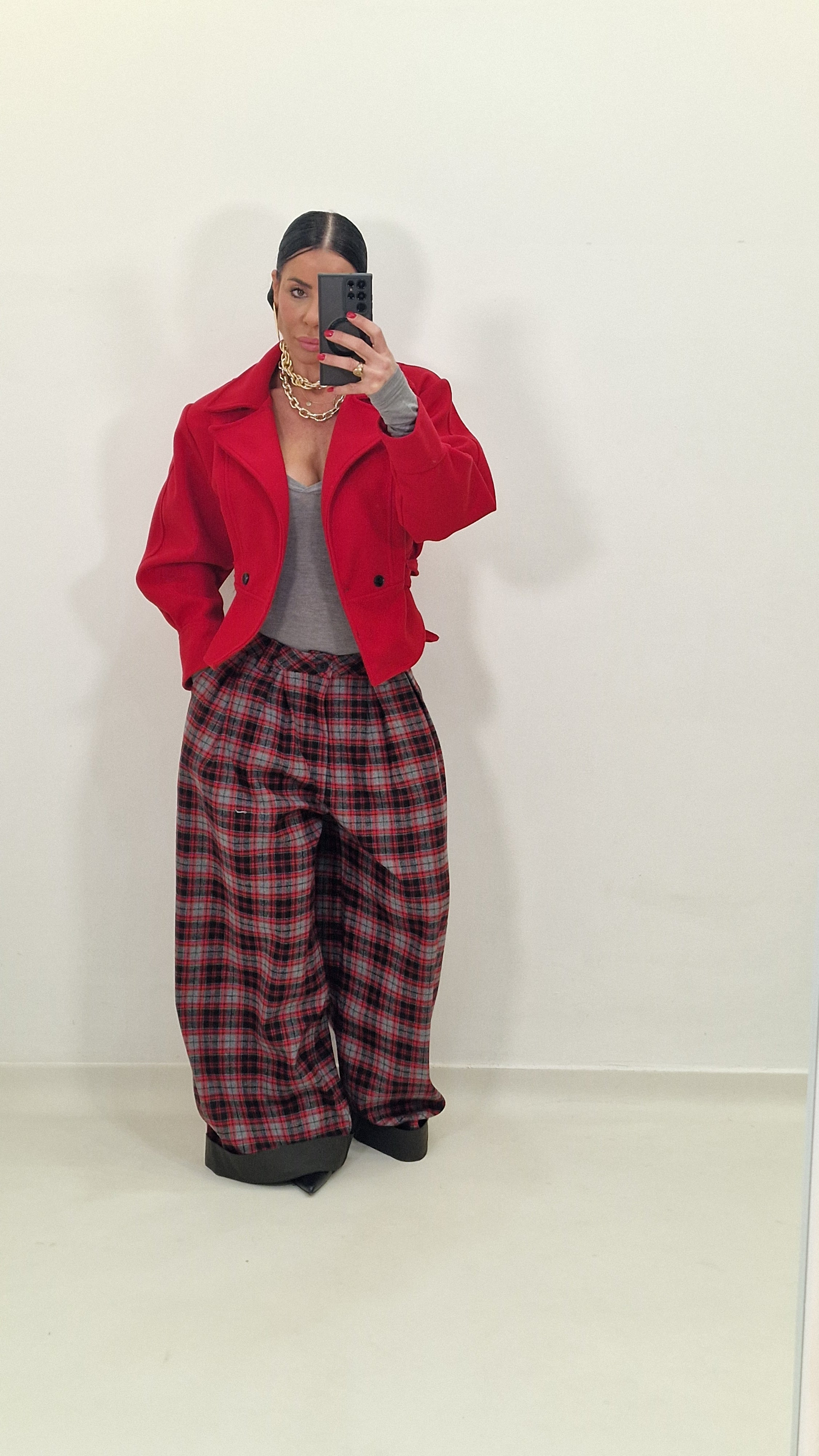 Checked trousers with cuffs, padded with chenille