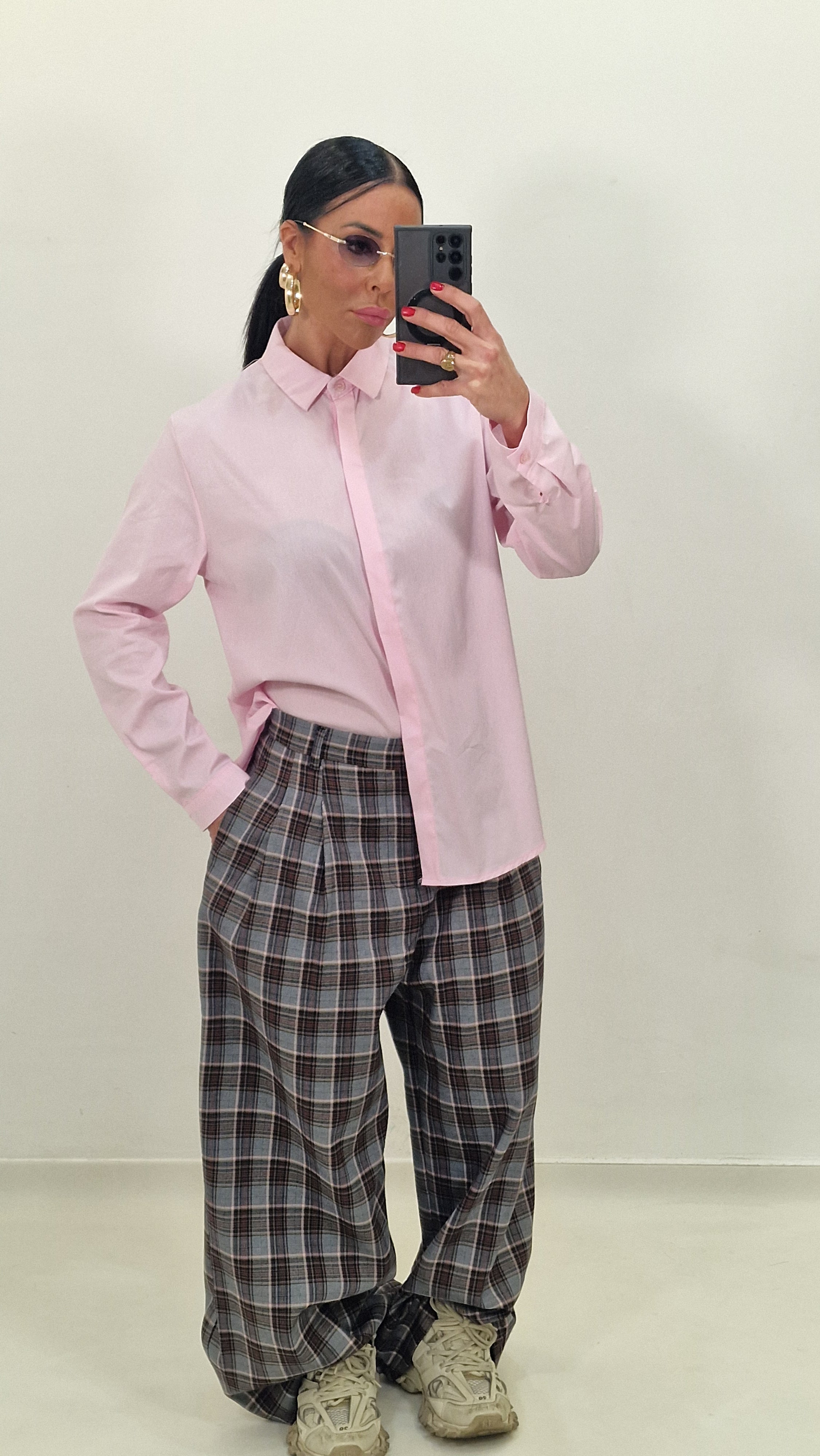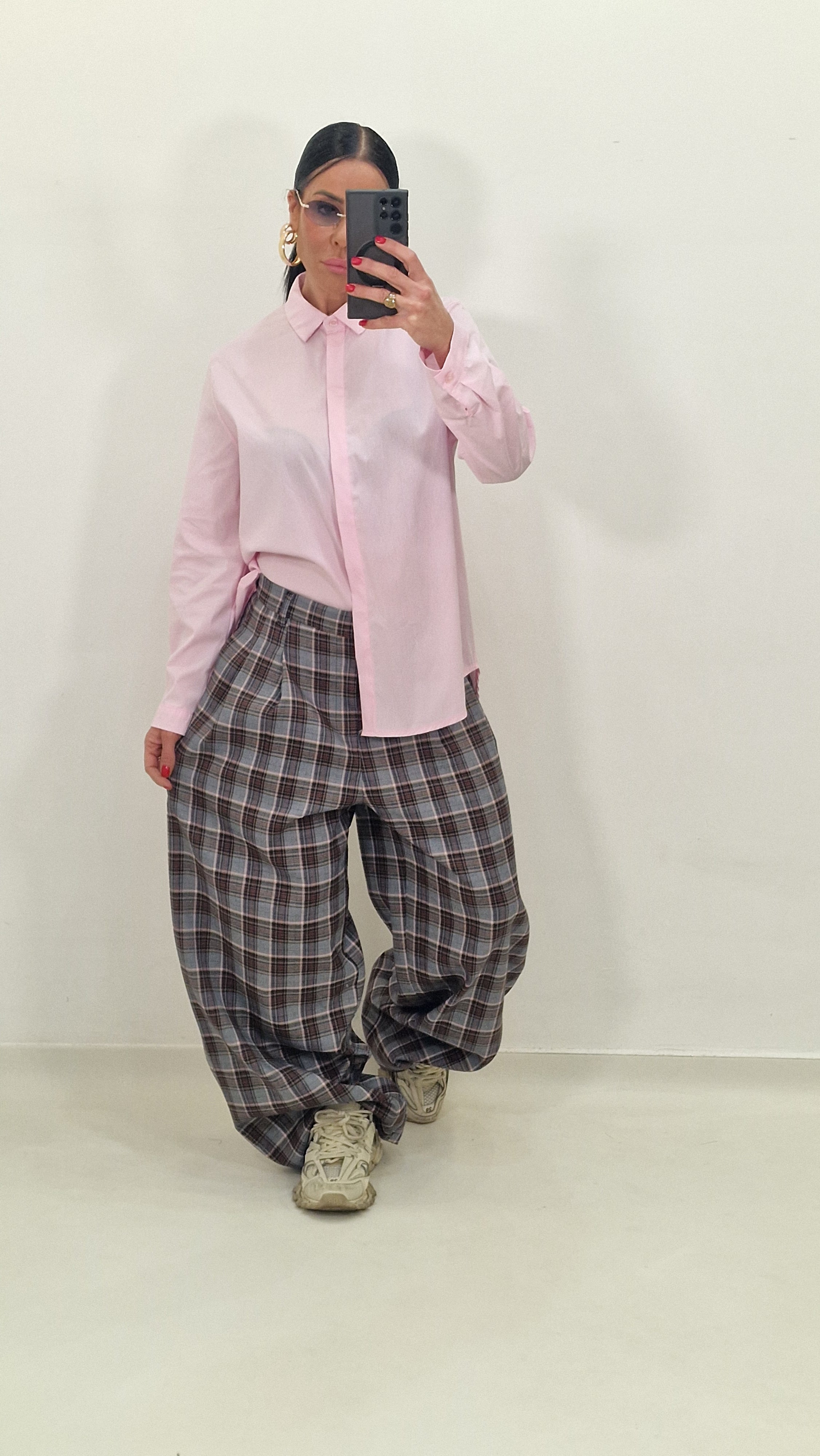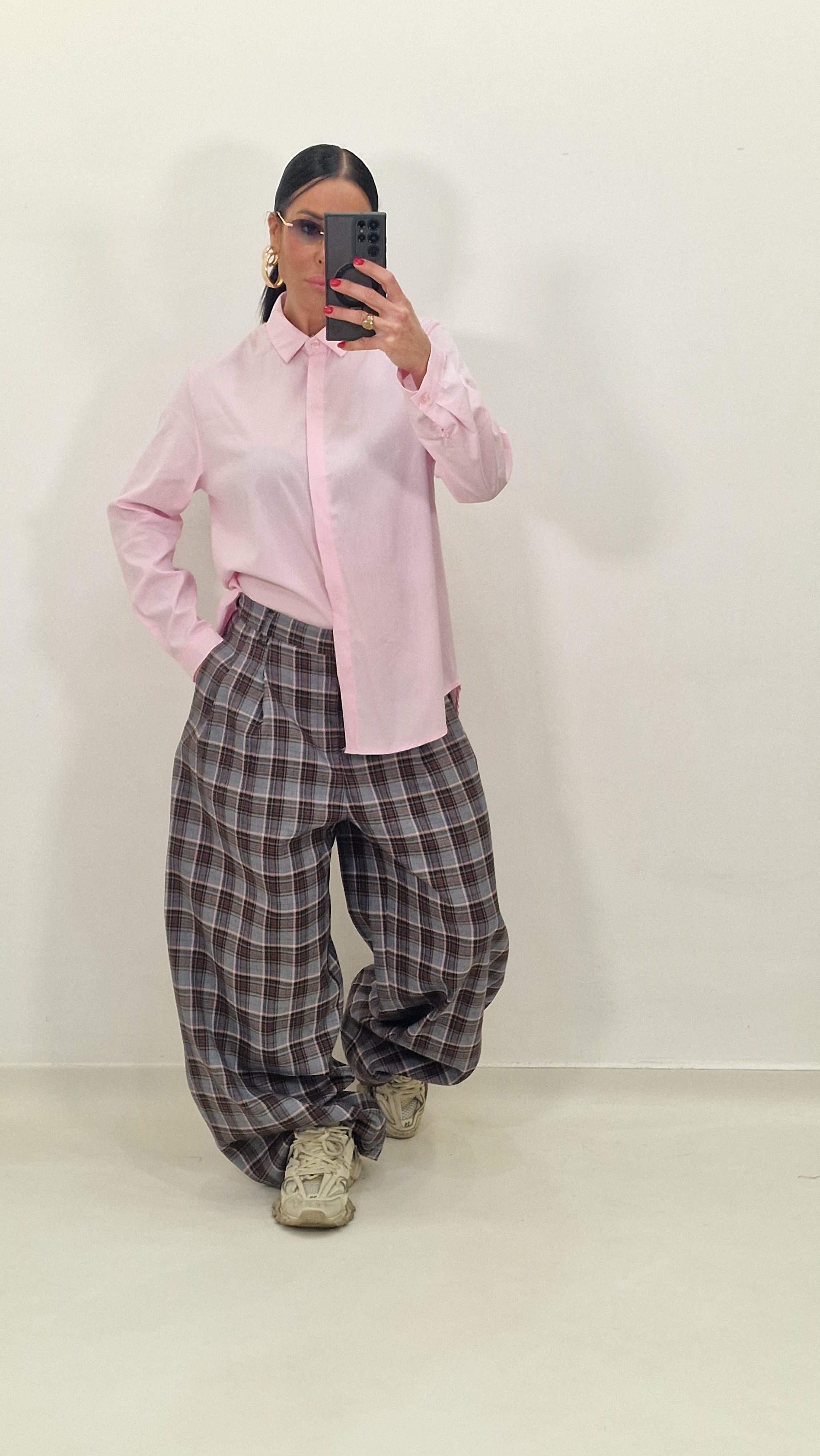 Checked trousers with pleats