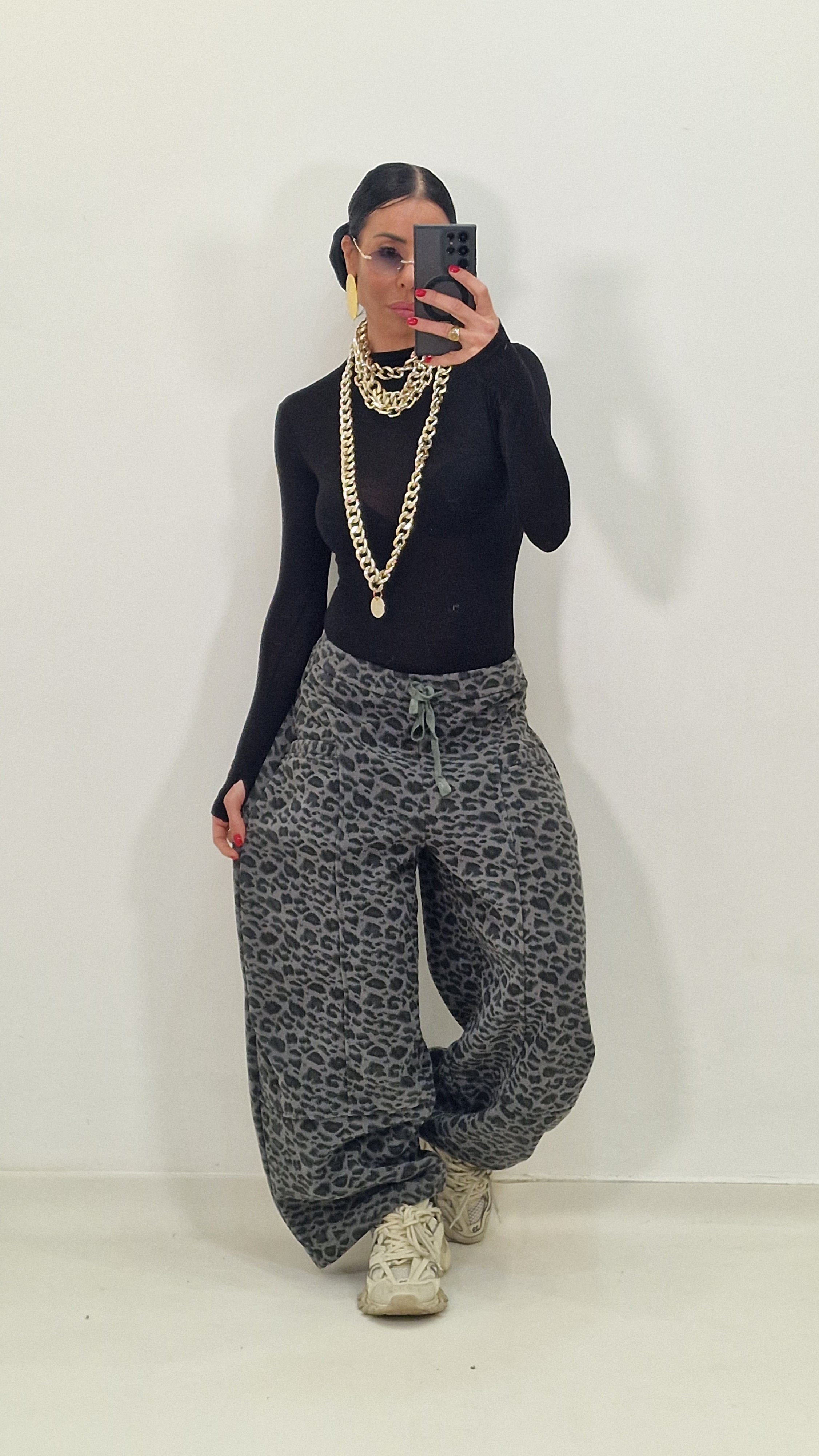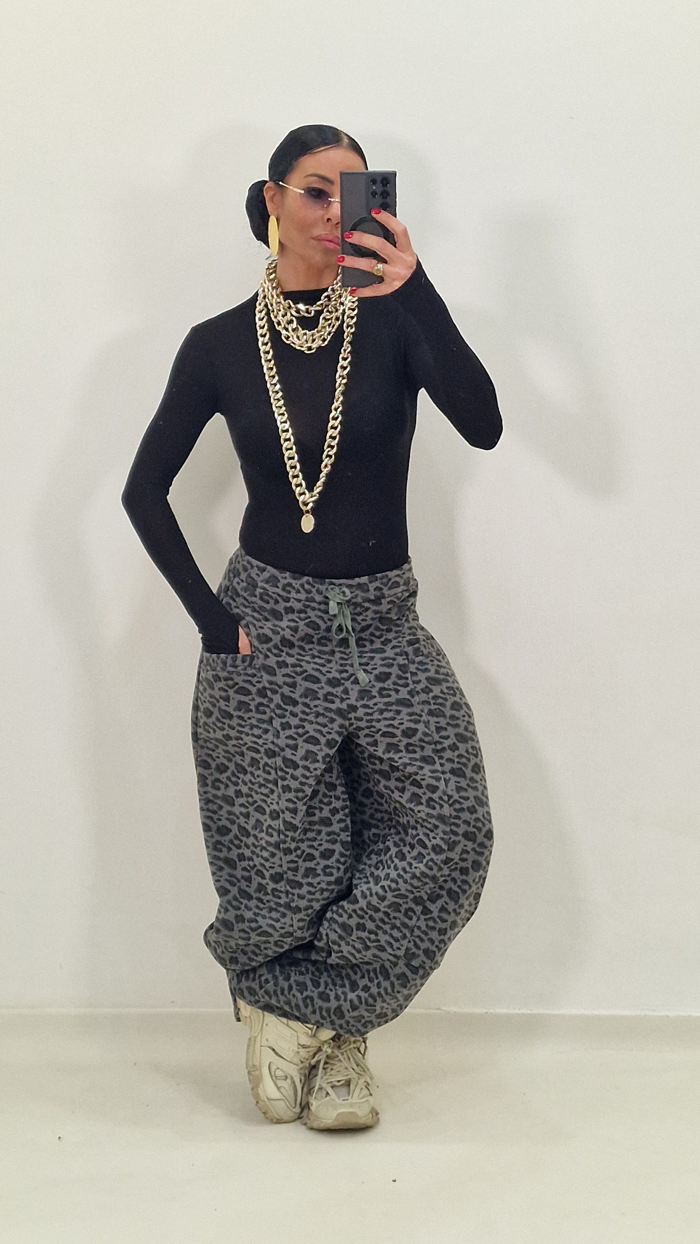 With grey leopard print