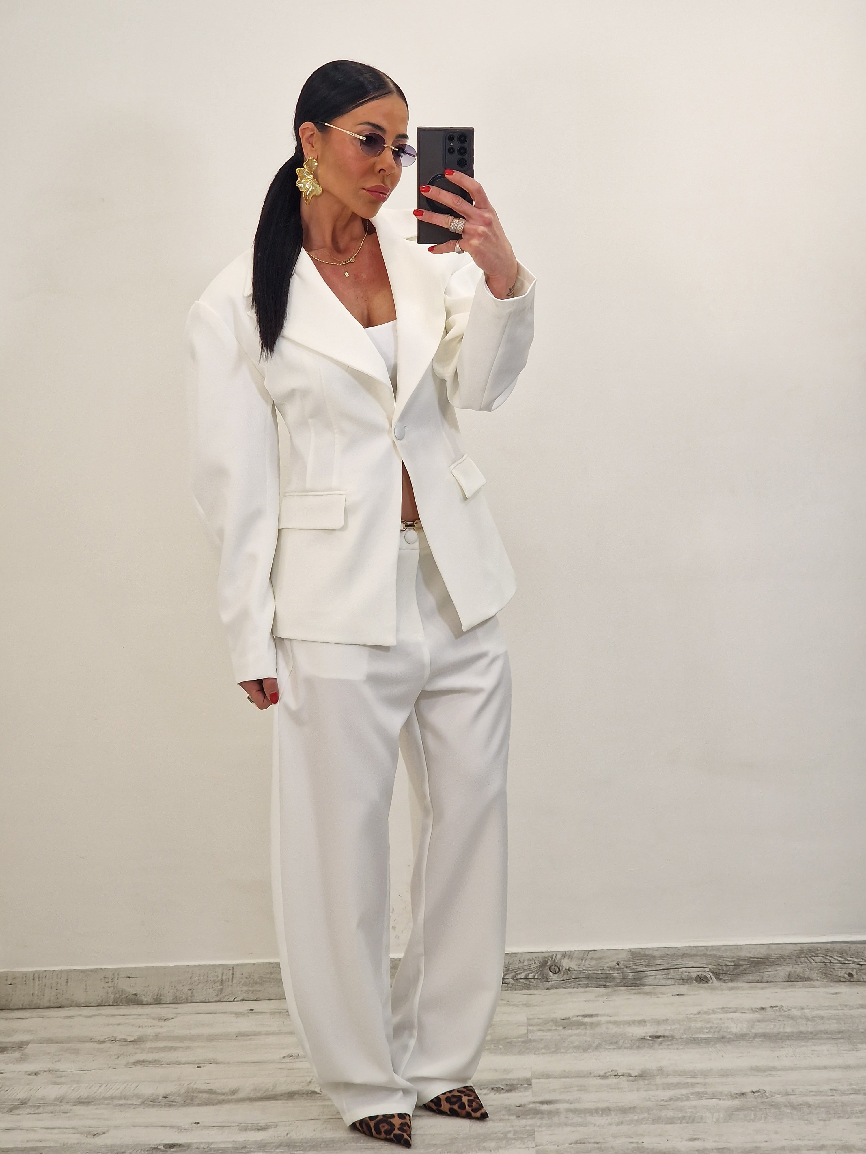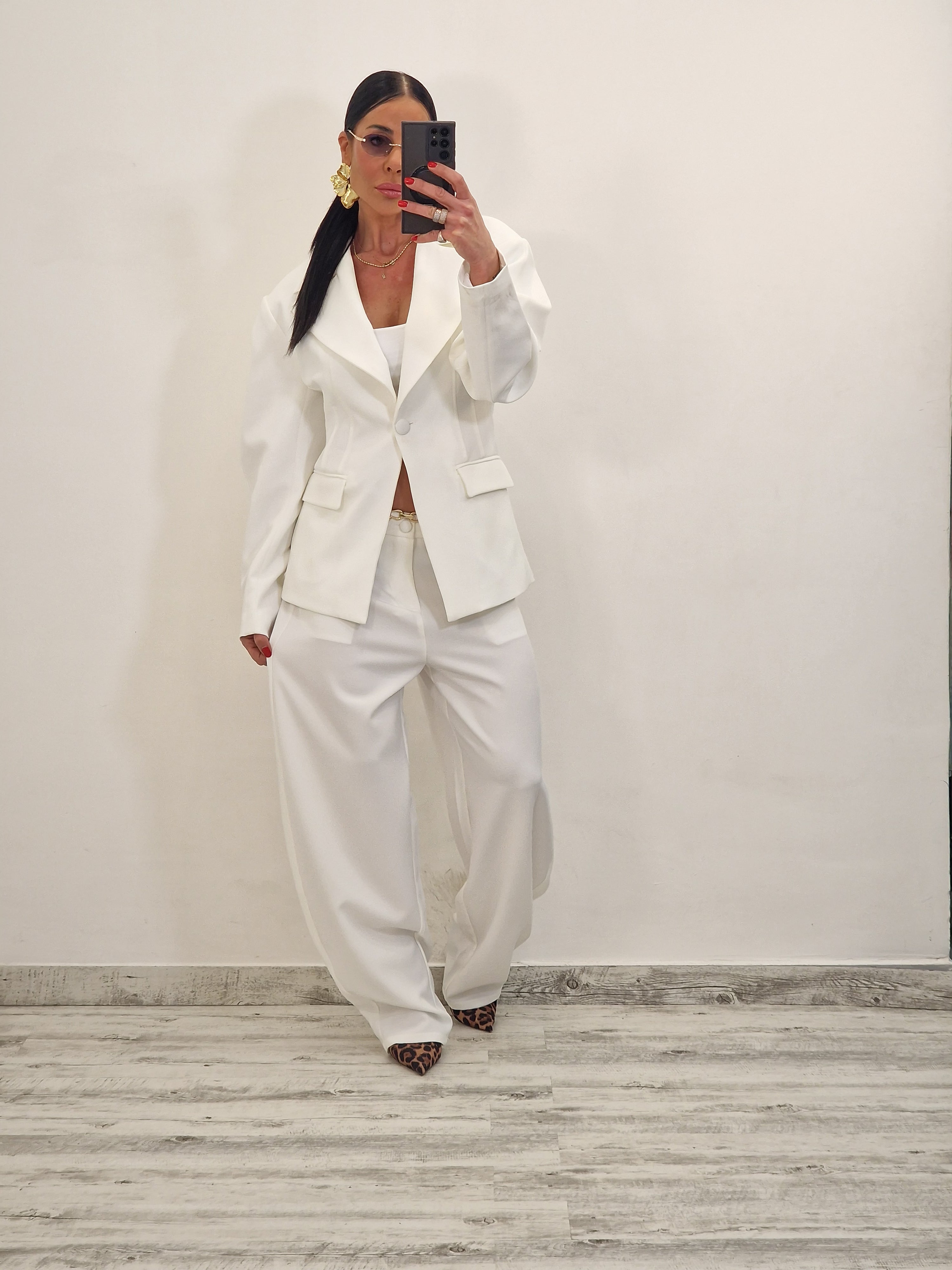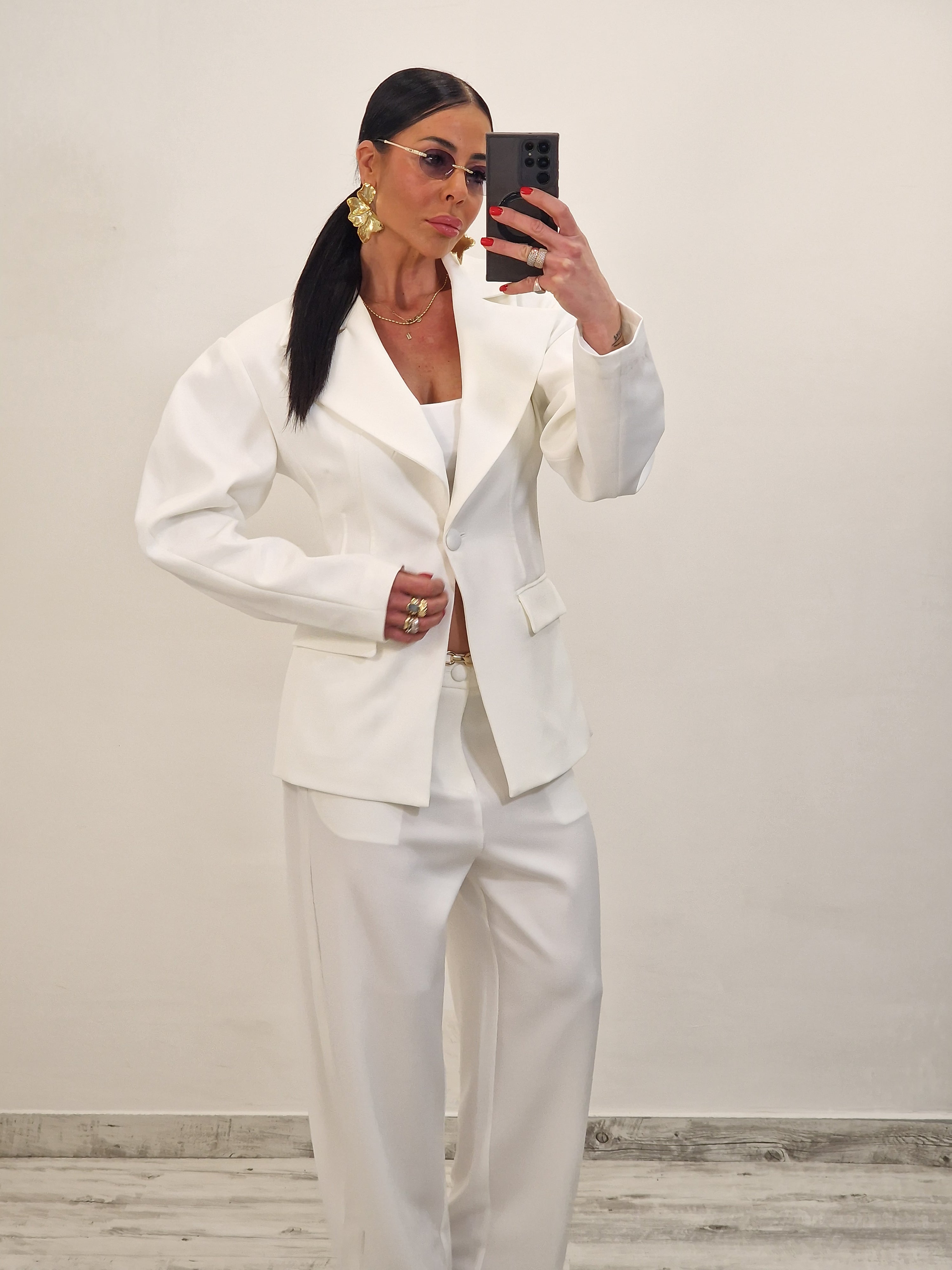 Blazer strutturato con manica balloon con bottoni rivestiti