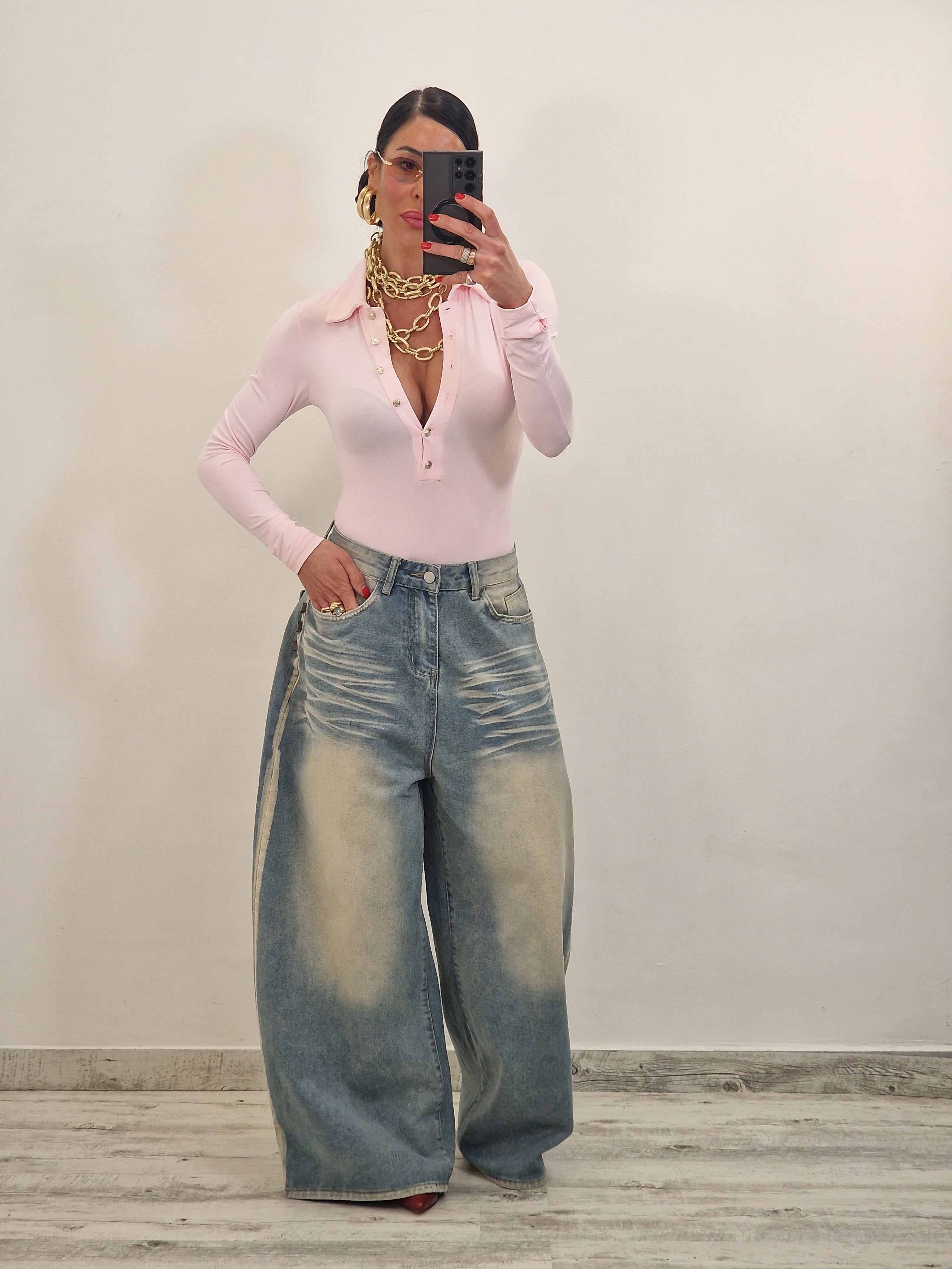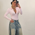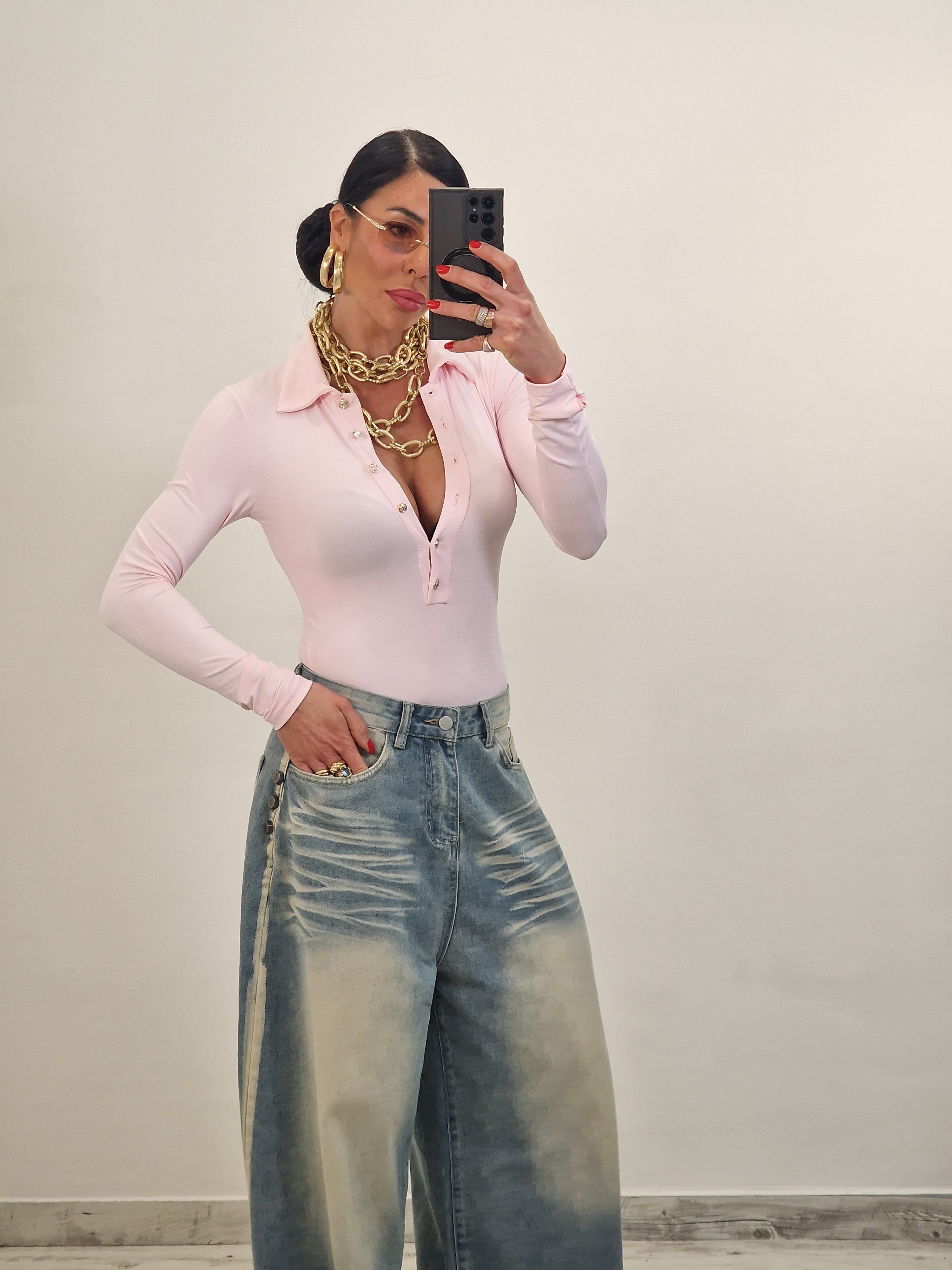 Body modello polo con maniche lunghe e bottoncini dorati