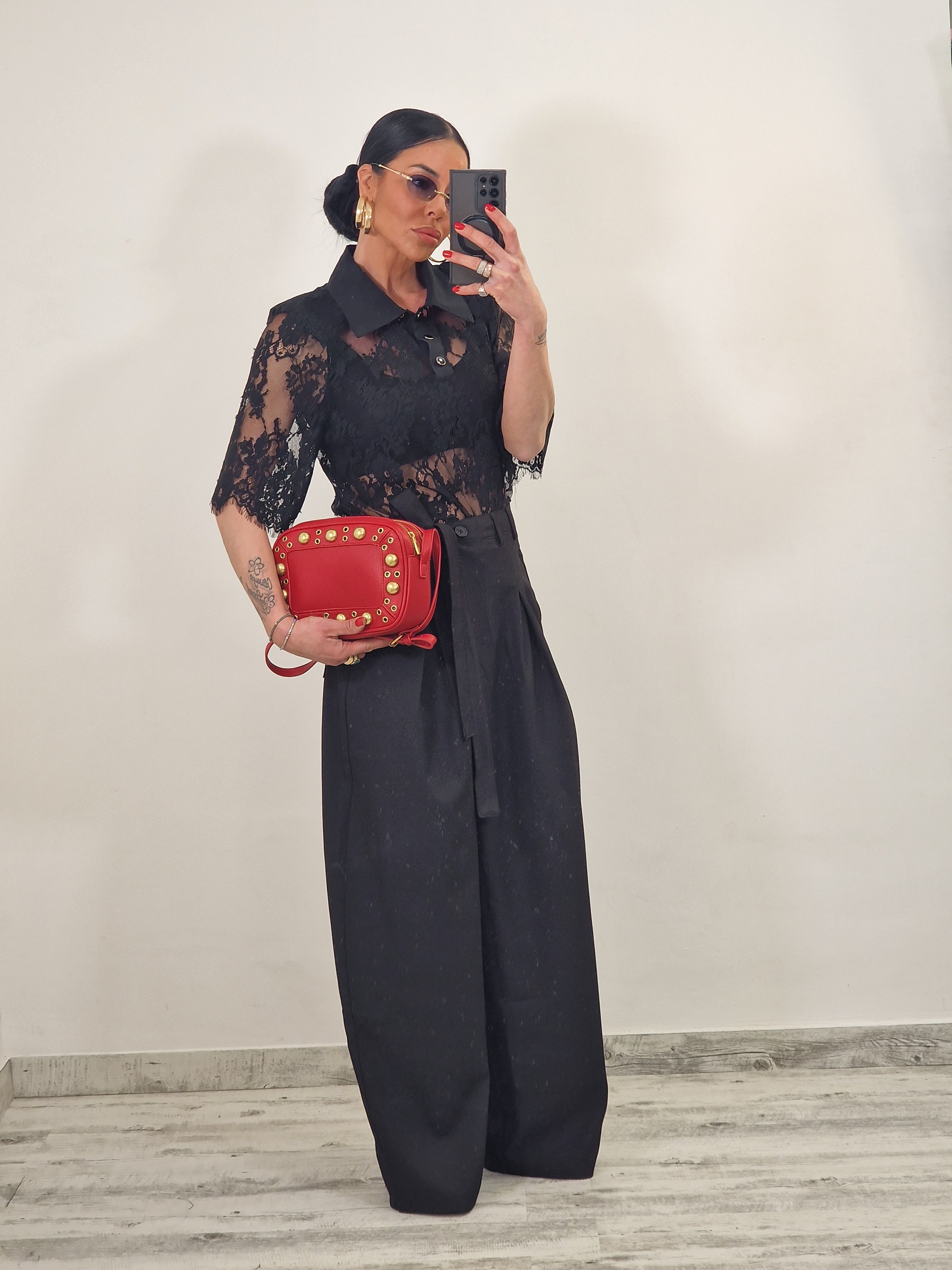 Borsa EVELYN con borchie rossa