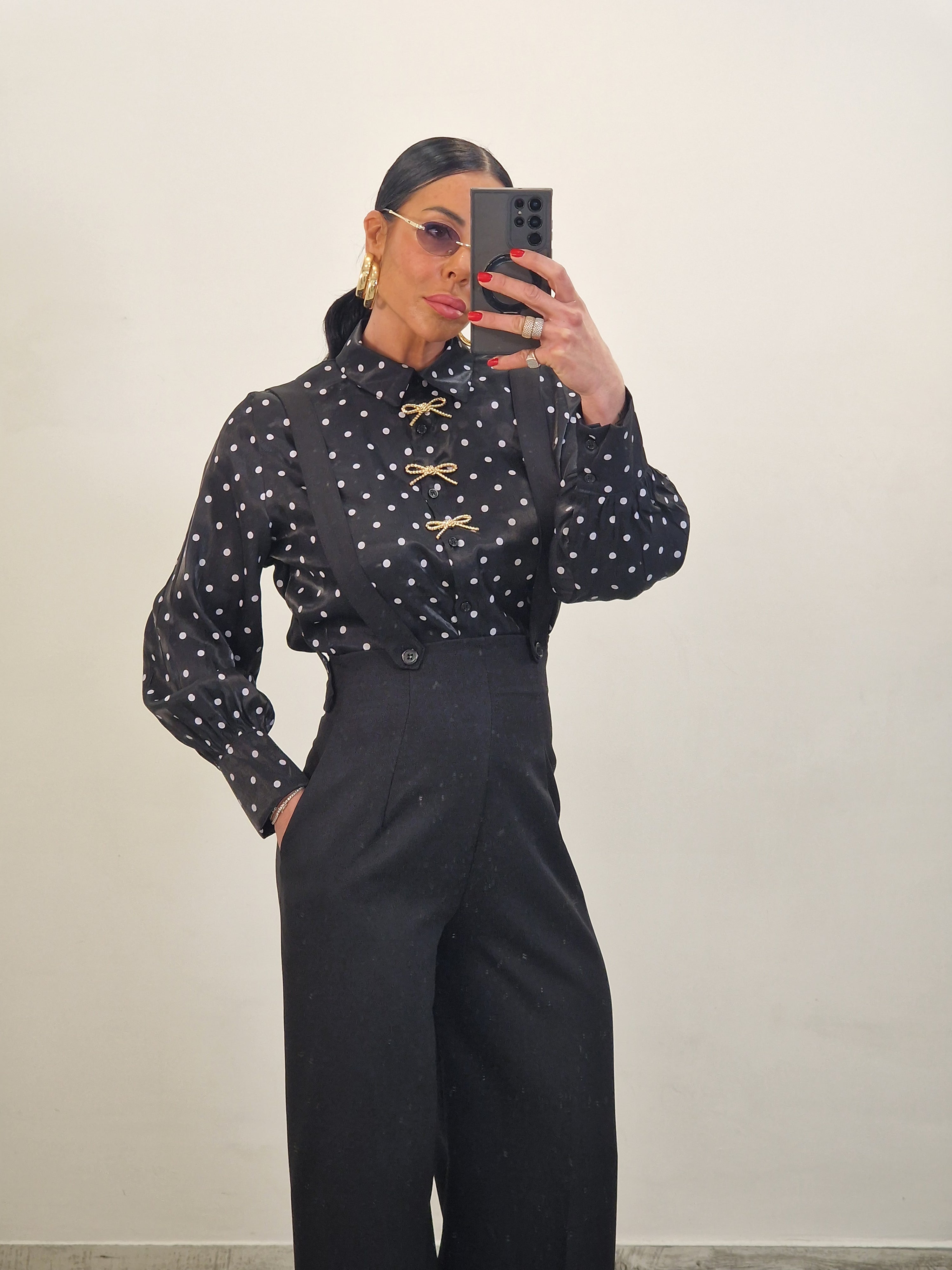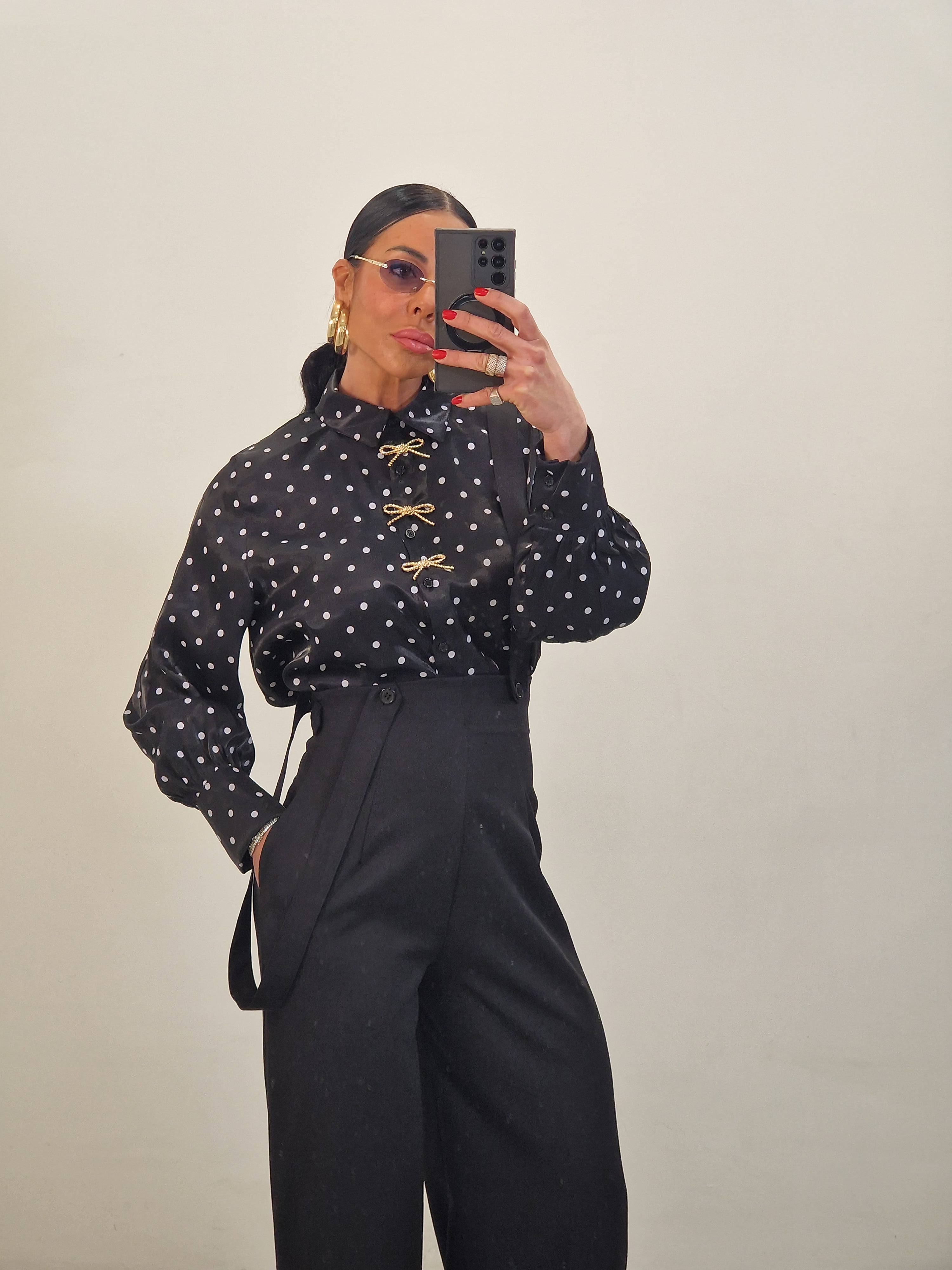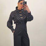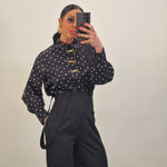Camicia a pois con applicazioni fiocco dorate