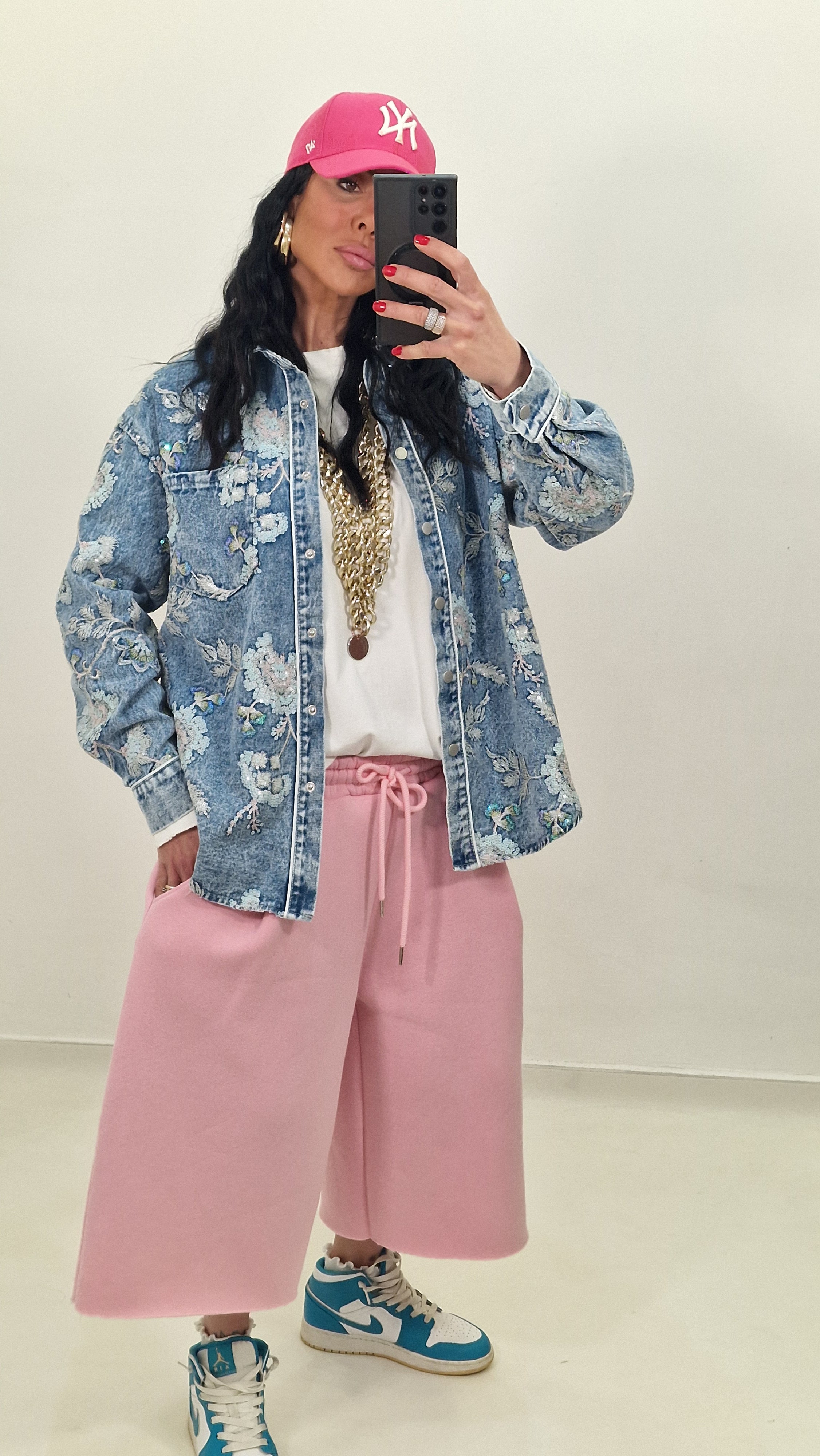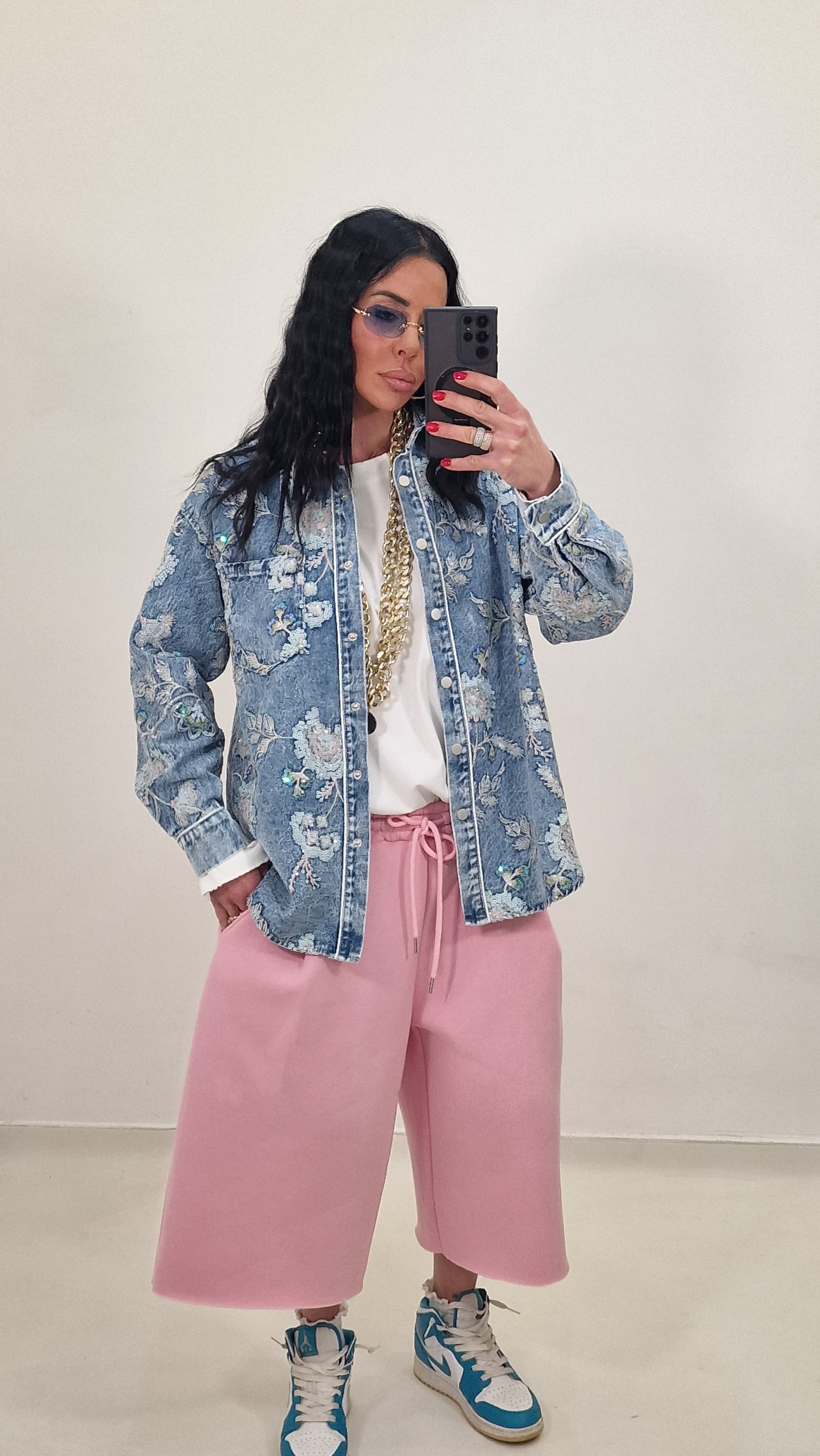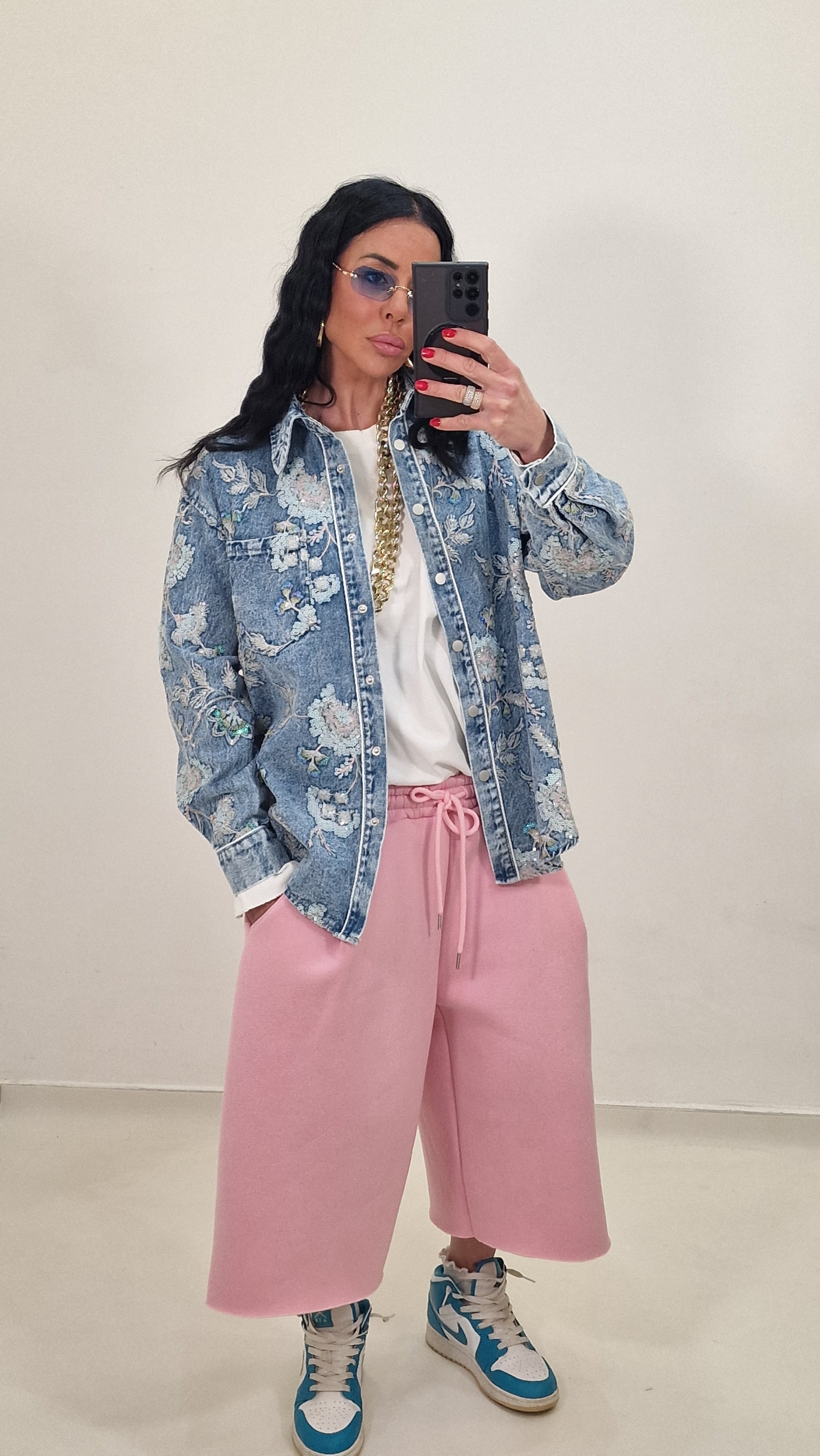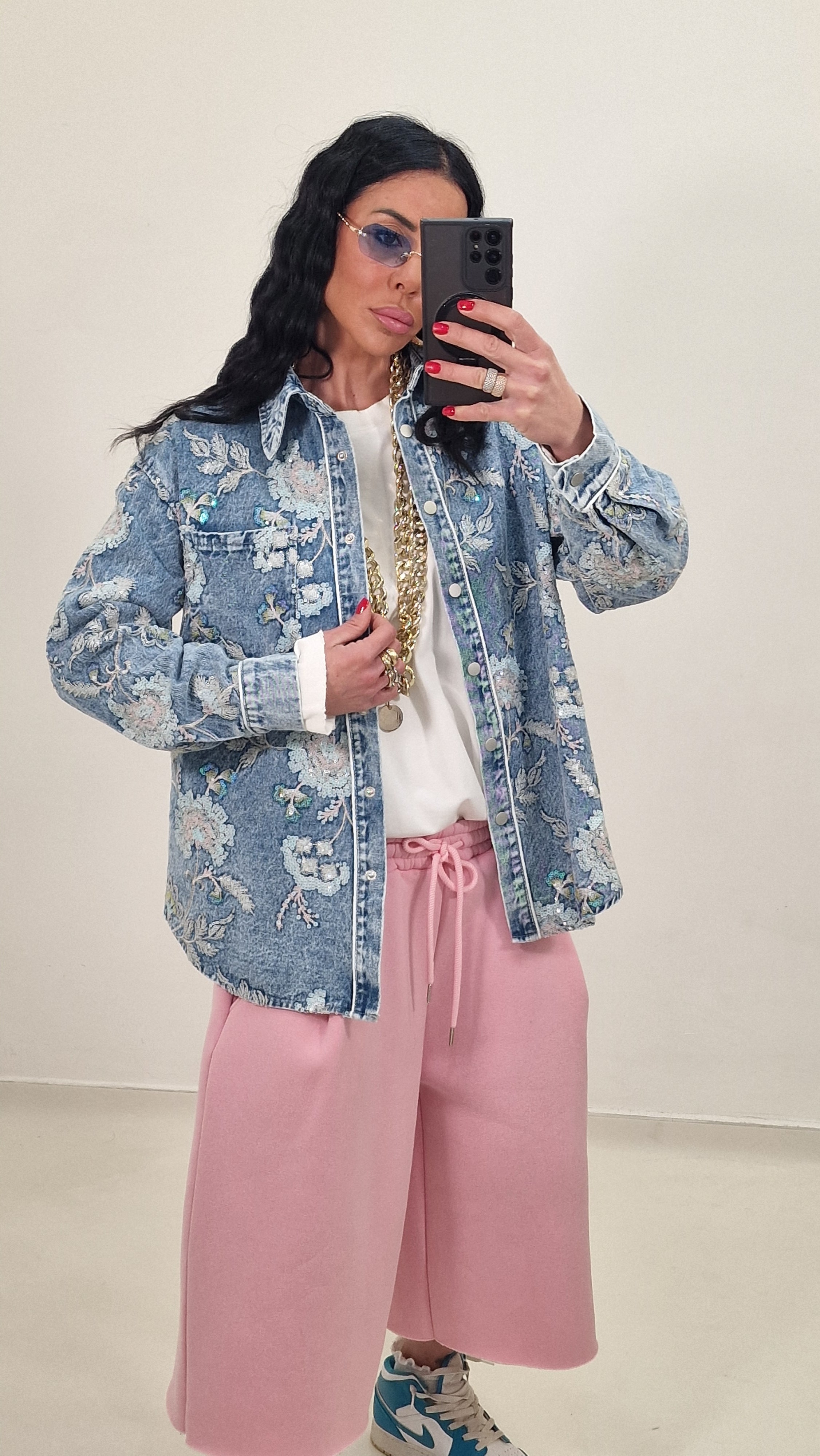 Camicia jeans tela fissa con ricami