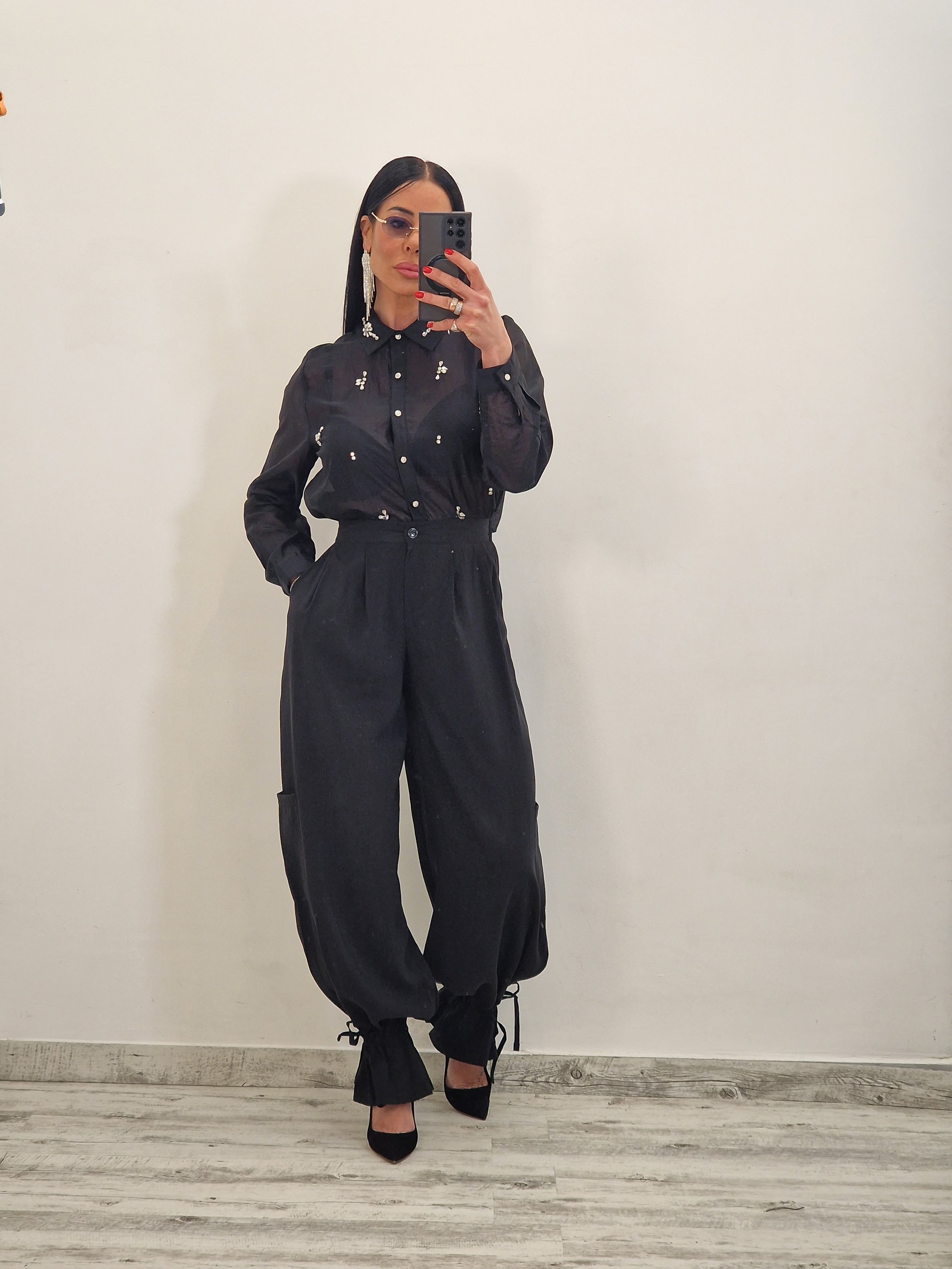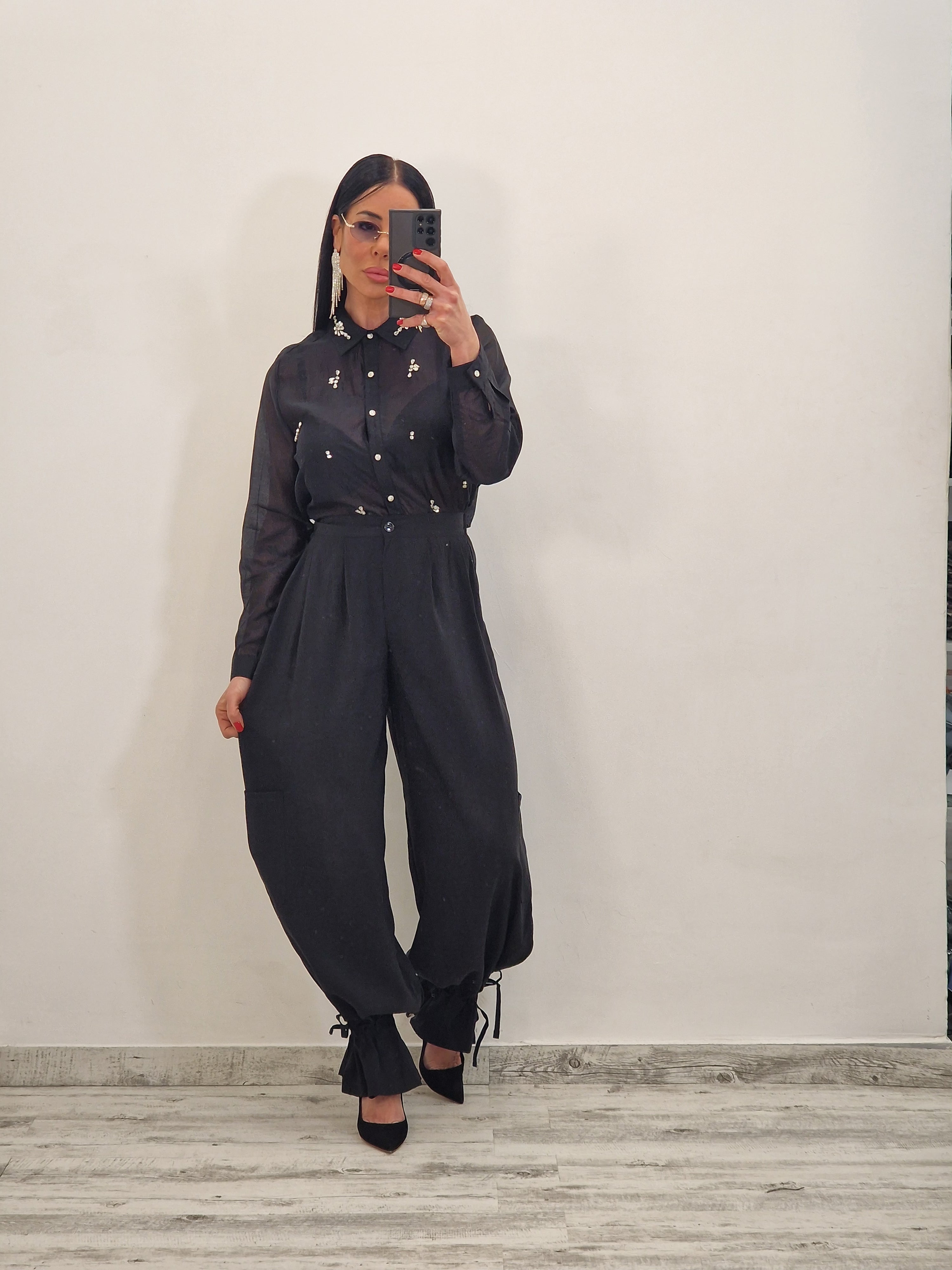 Camicia velata con applicazioni di swarovsky