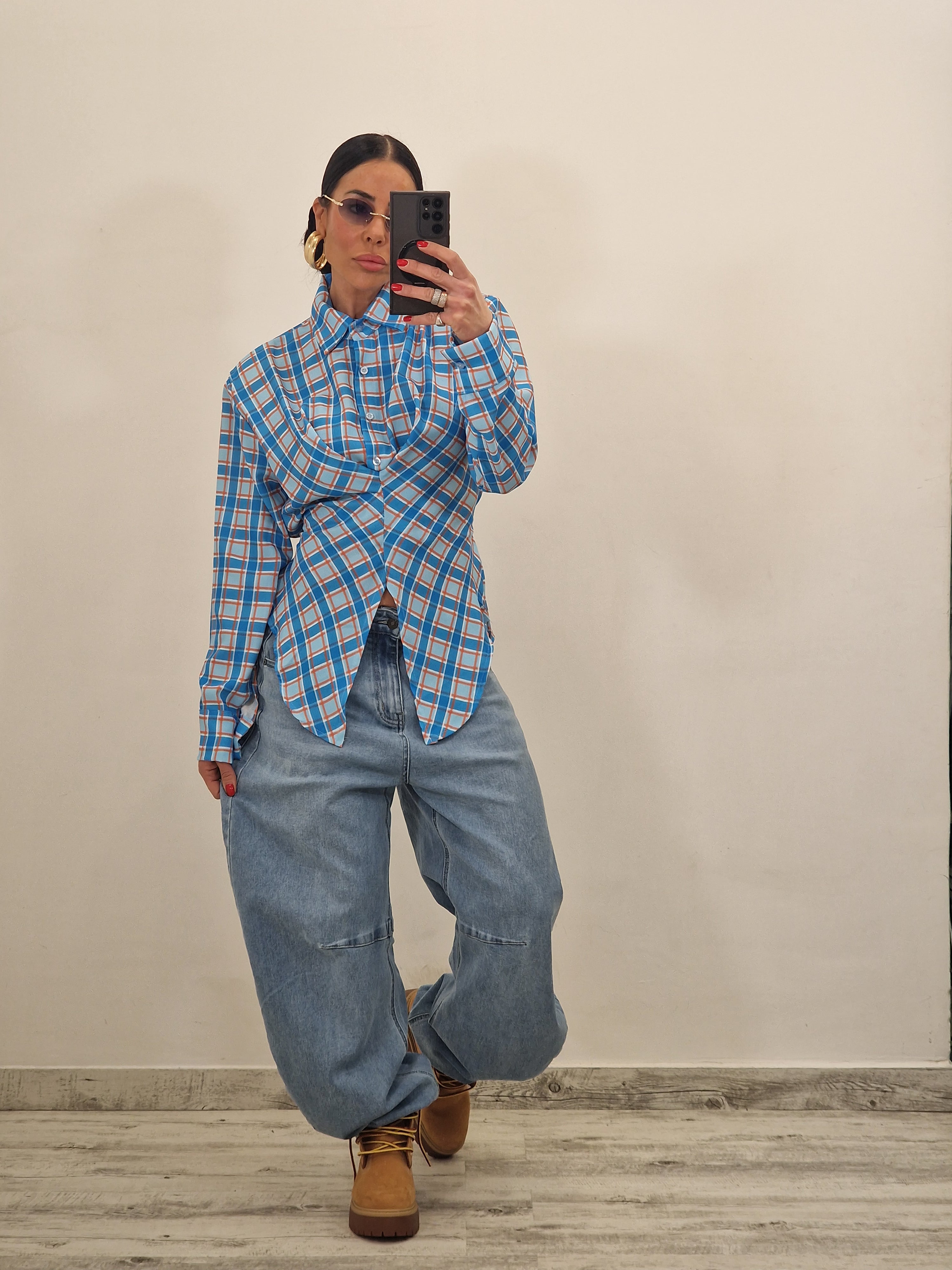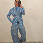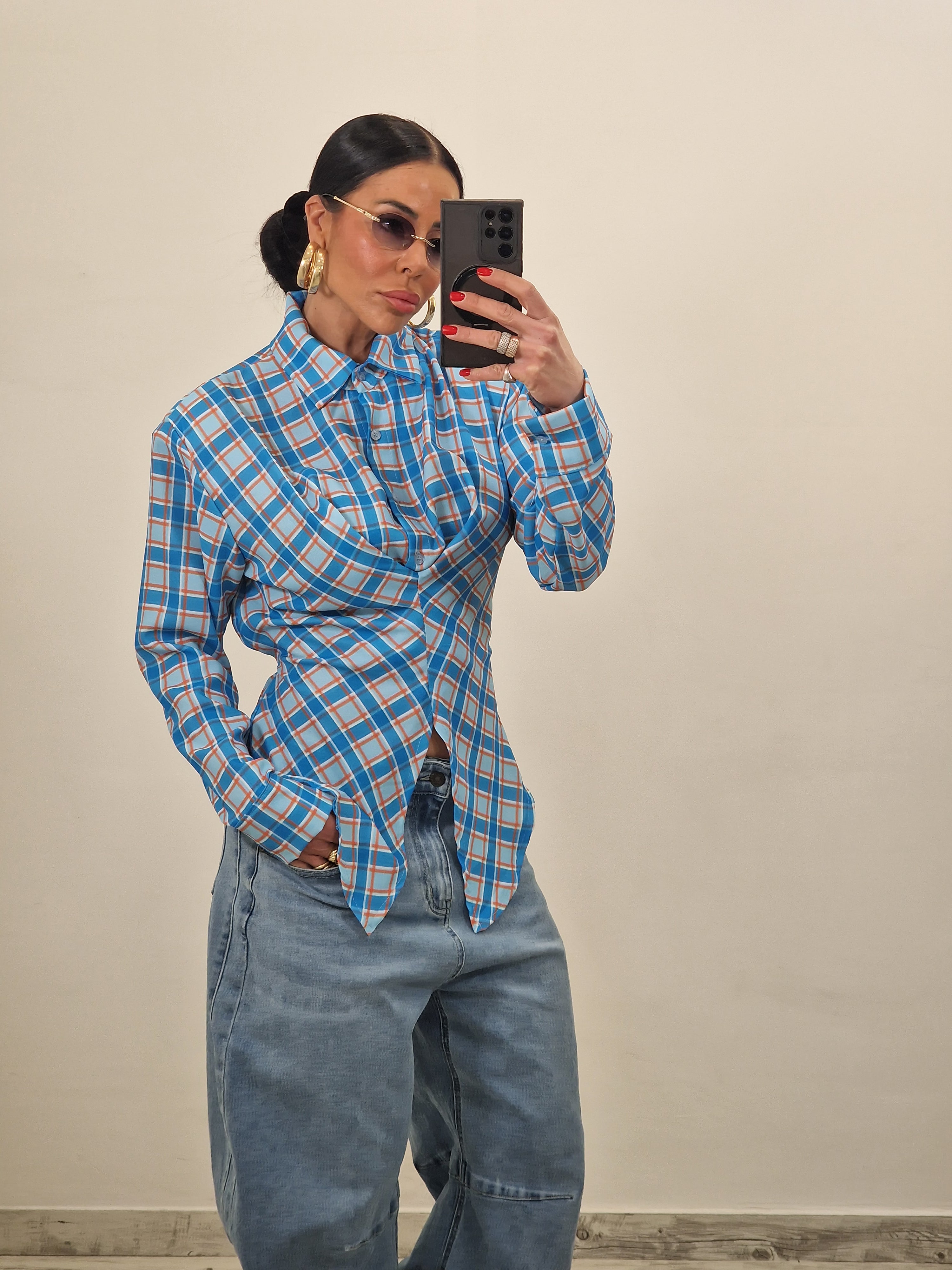 Casacca a quadri chiusa e drappeggiata d'avanti