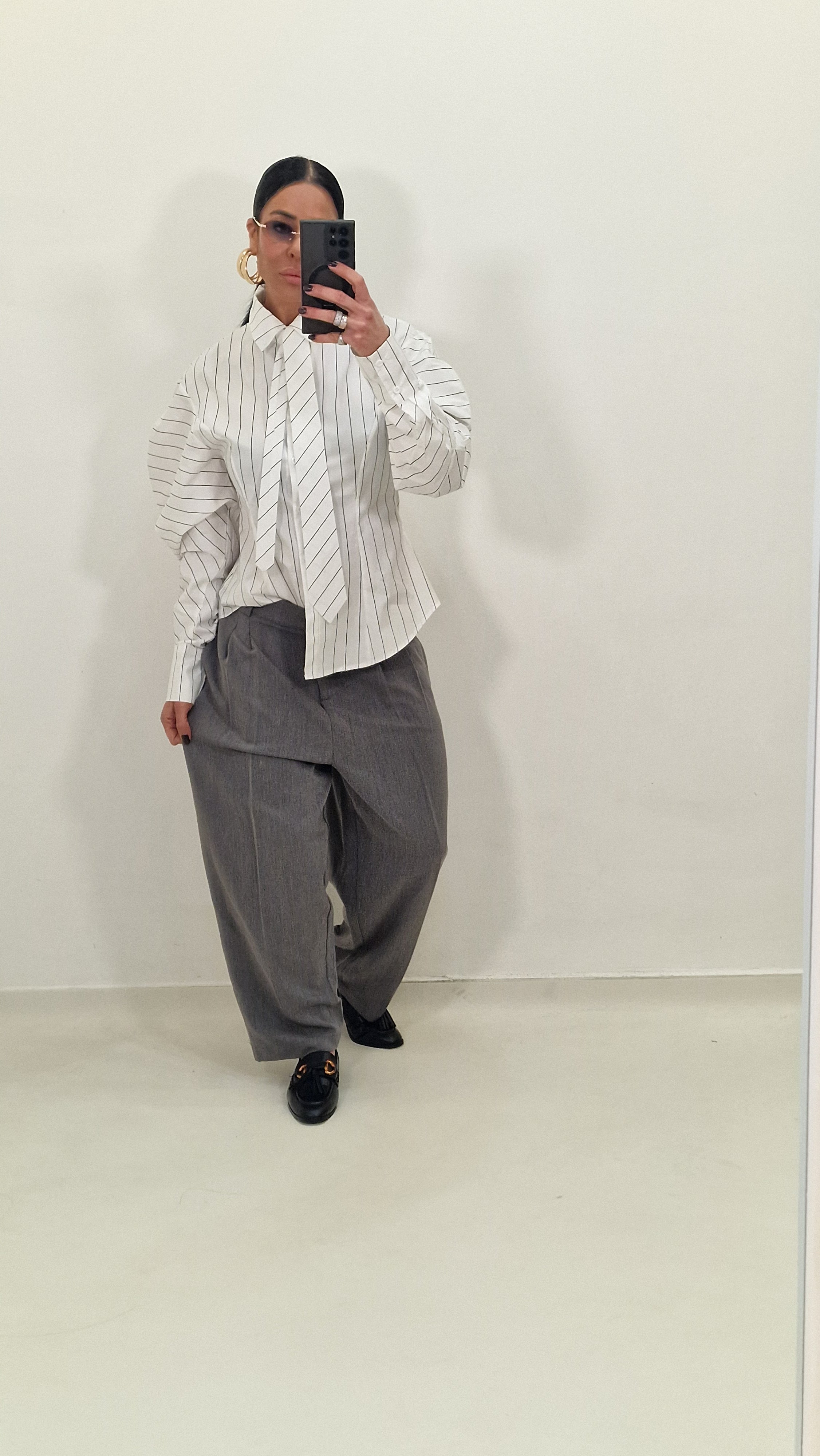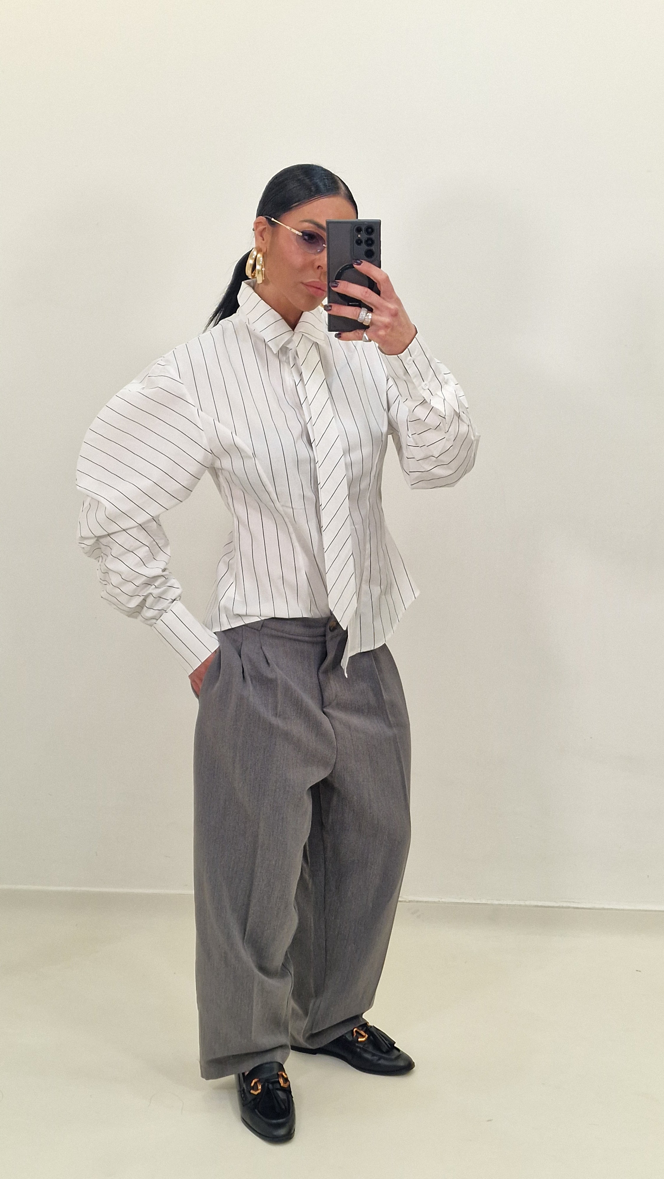 Camicia avvitata con manica a sbuffo e cravatta