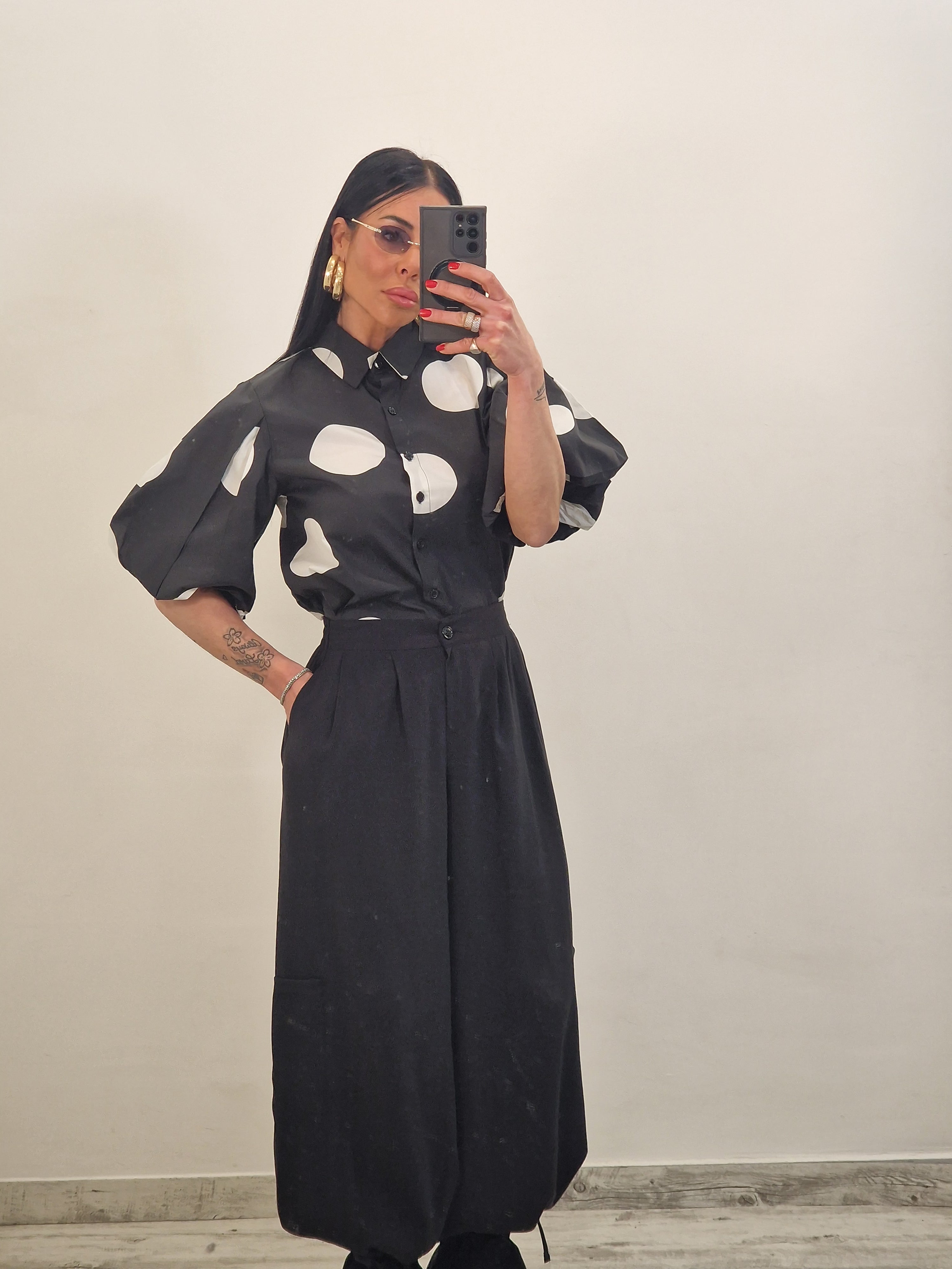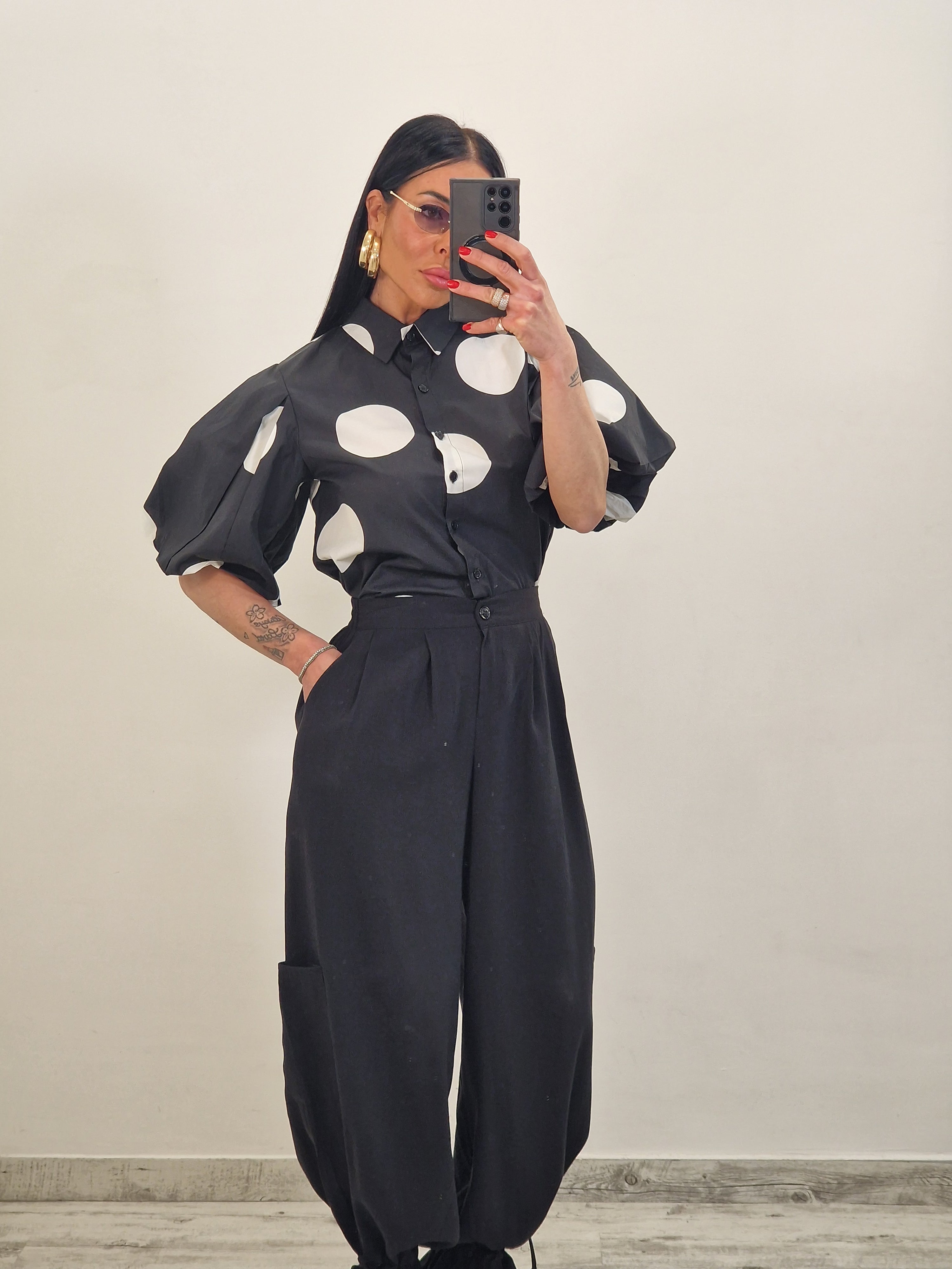 Camicia crop con maniche a palloncino