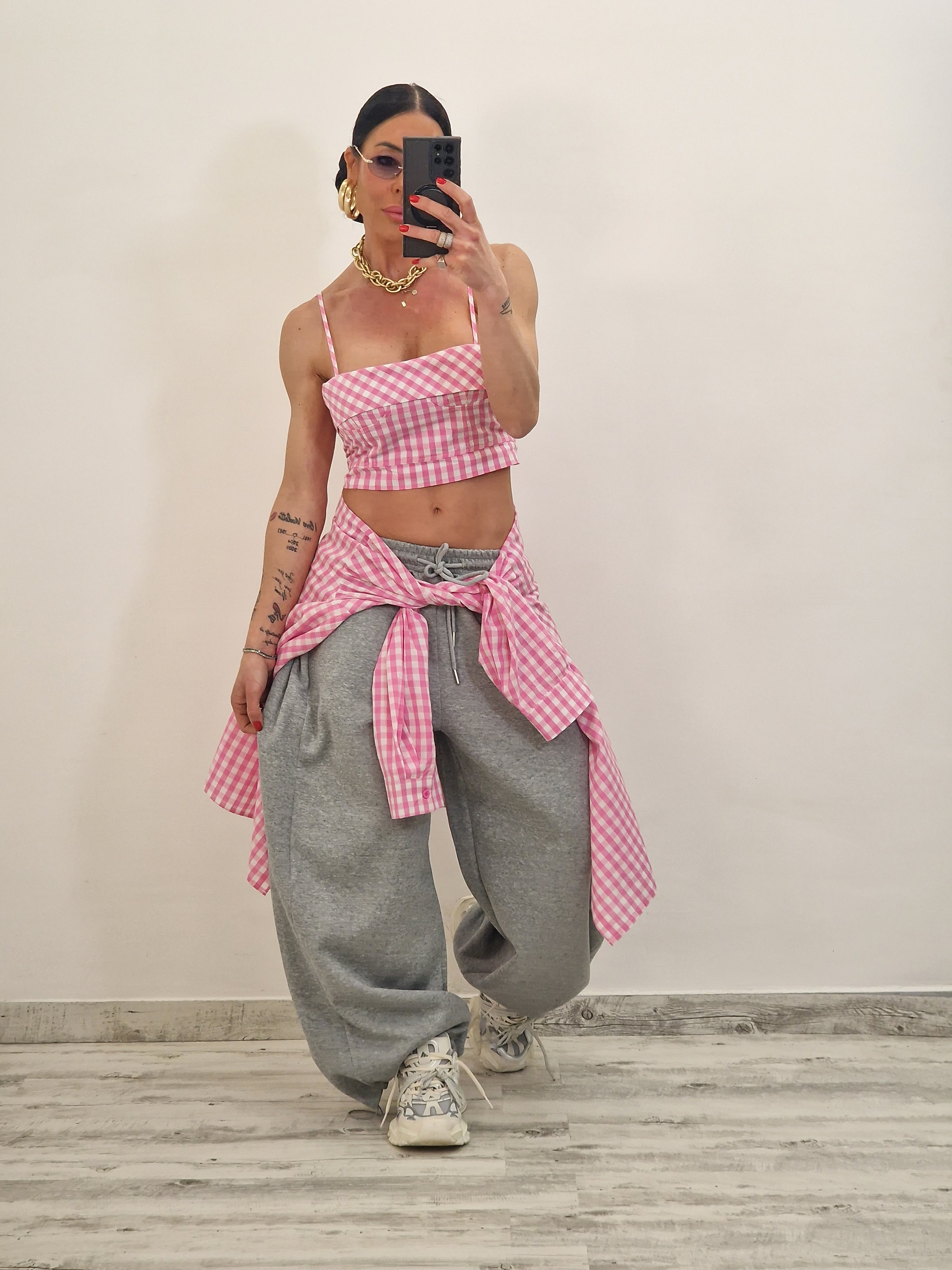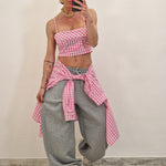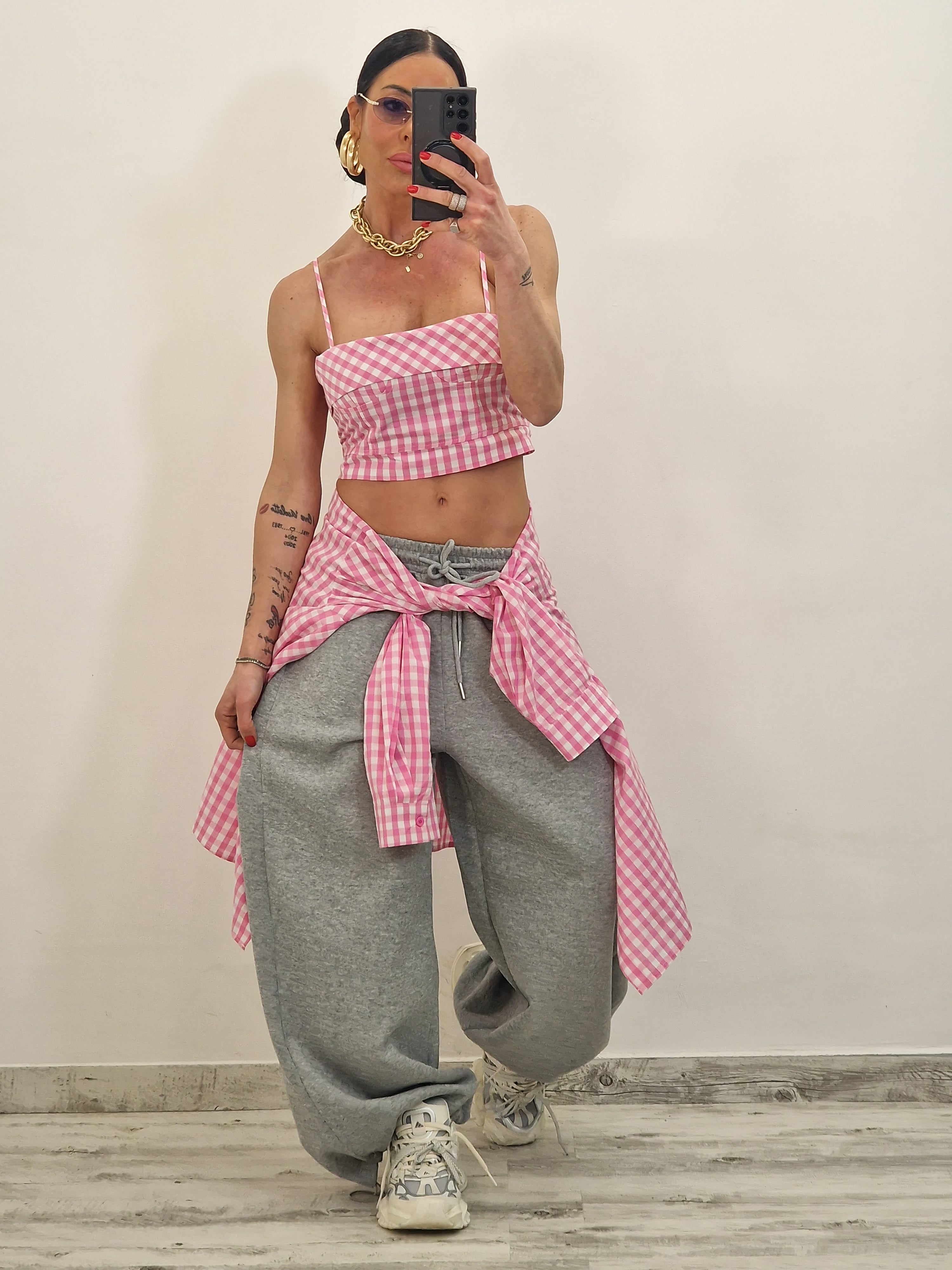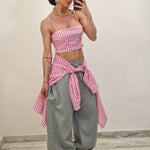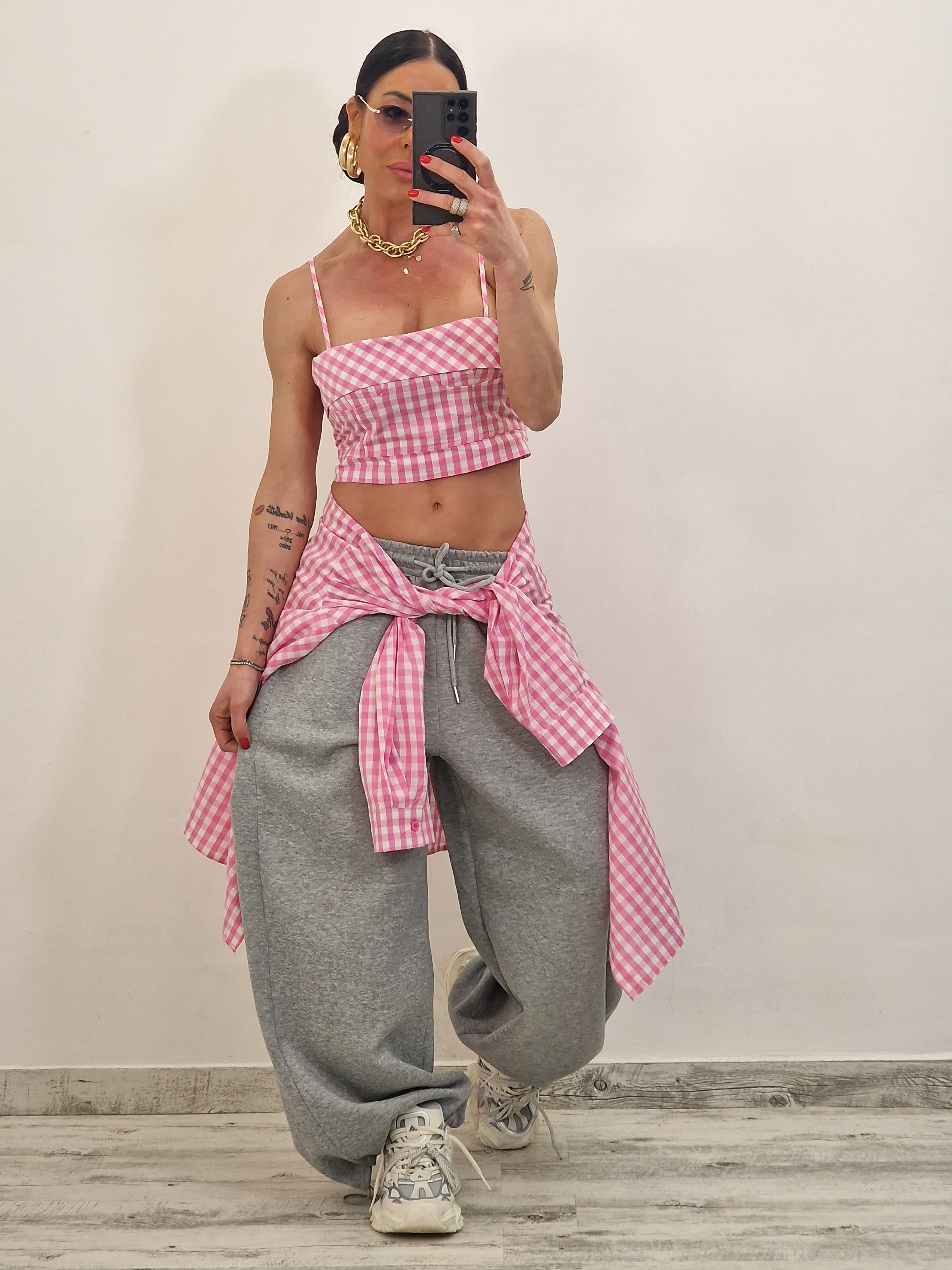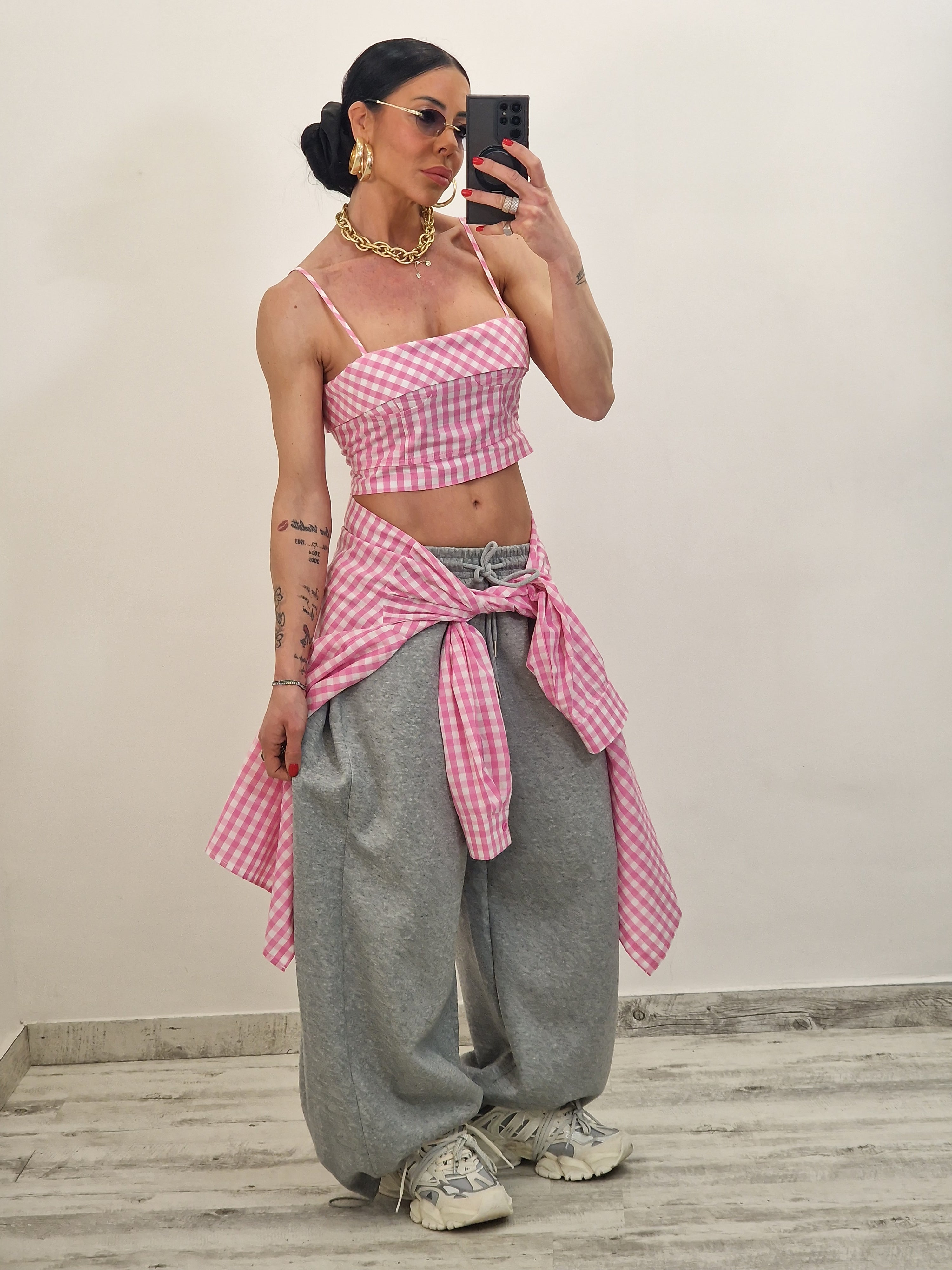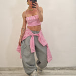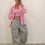Camicia di cotone a quadrettini con crop top con zip dietro
