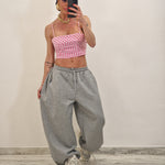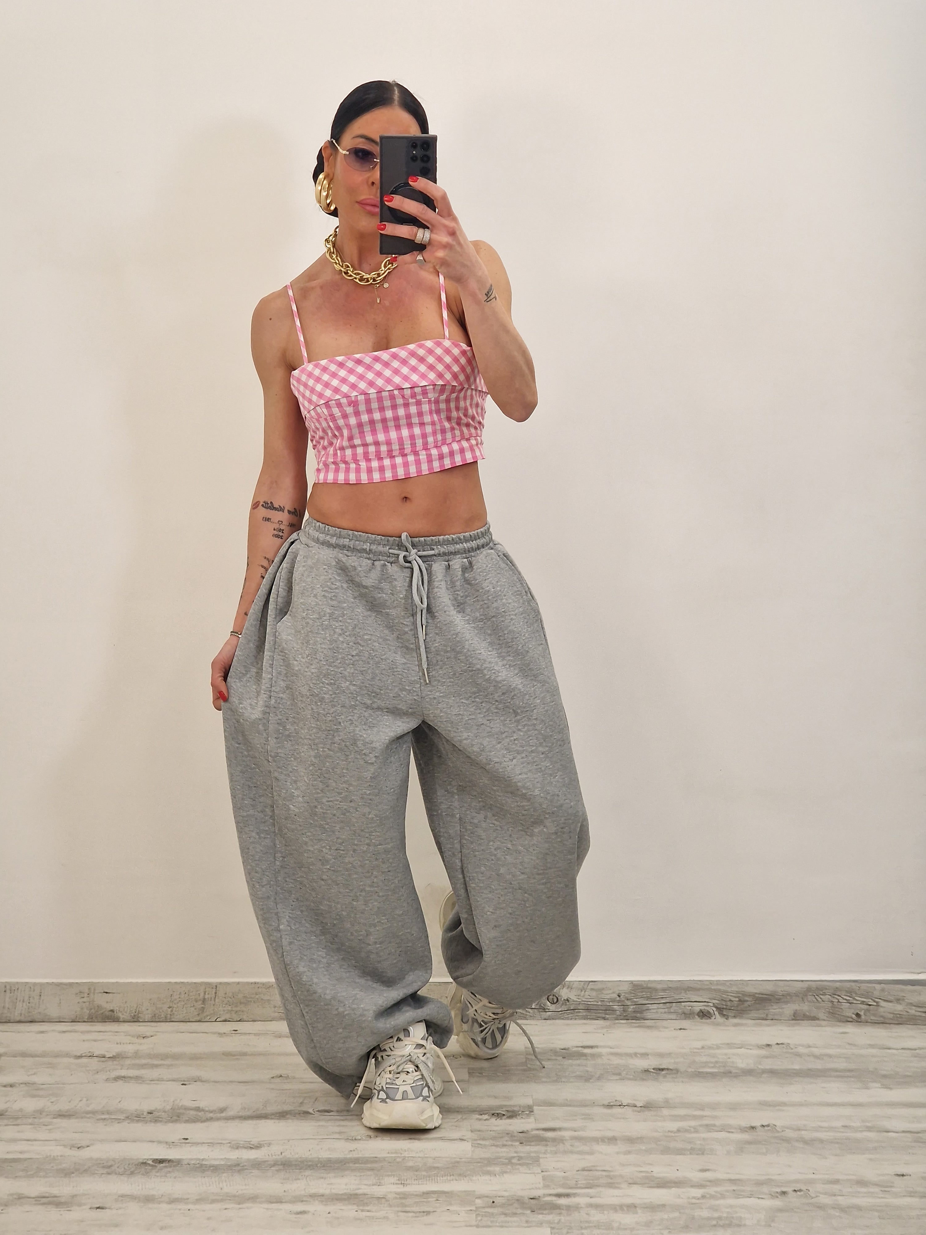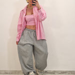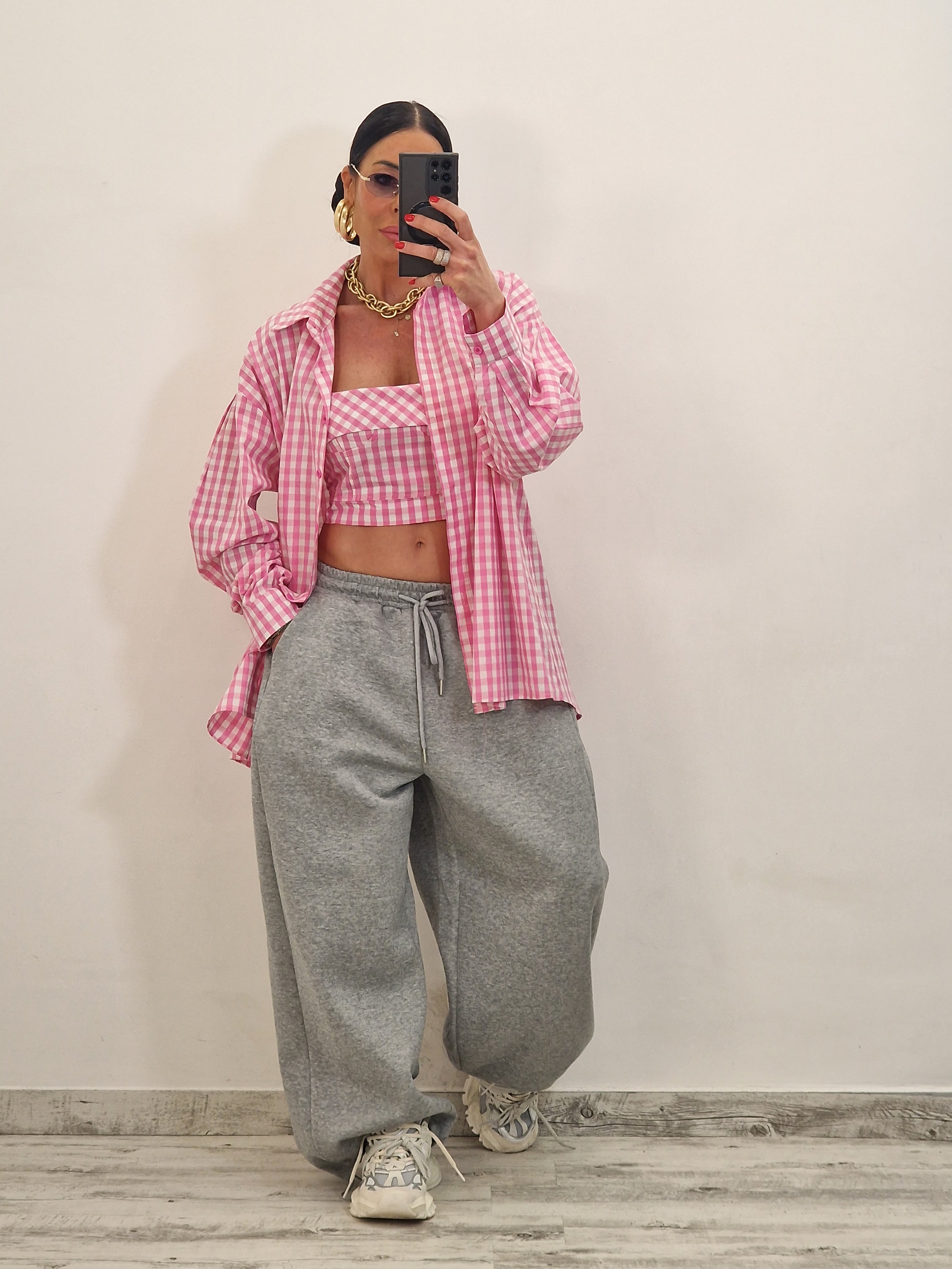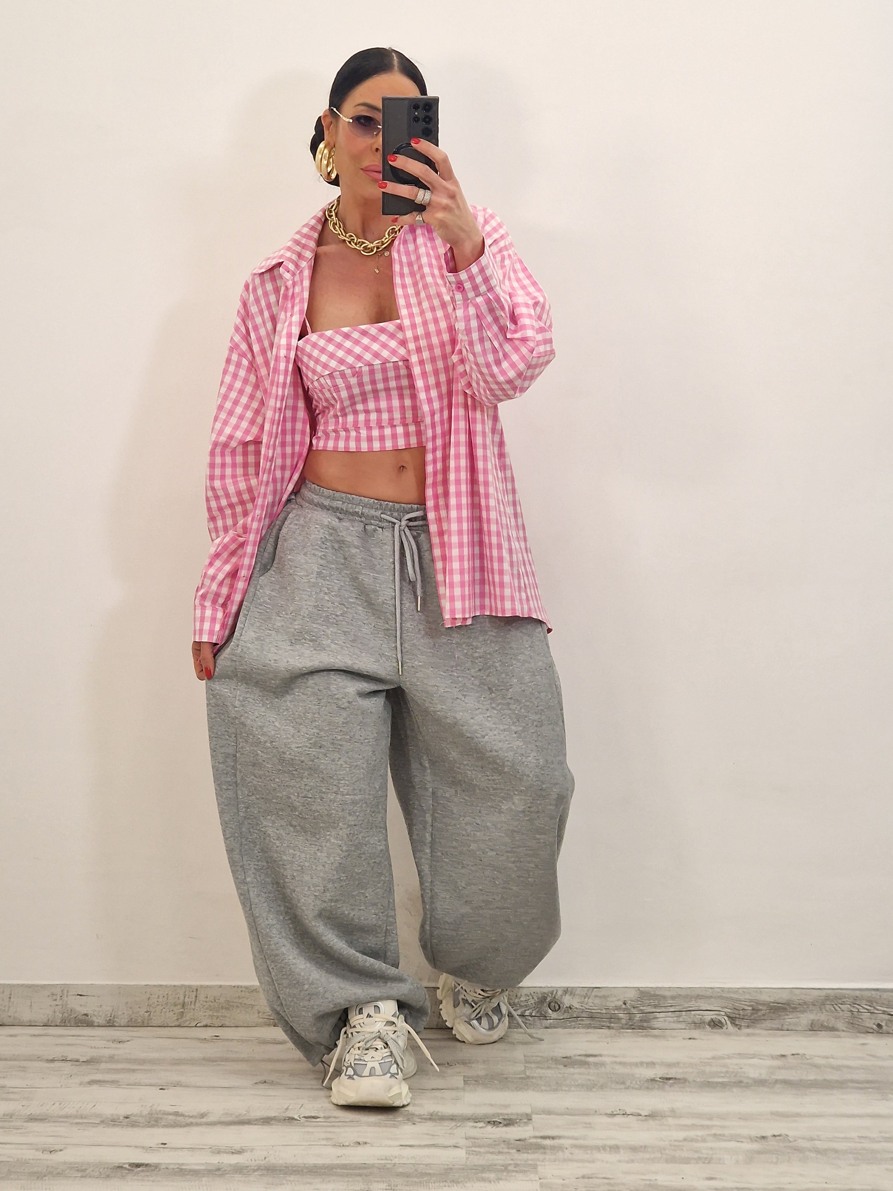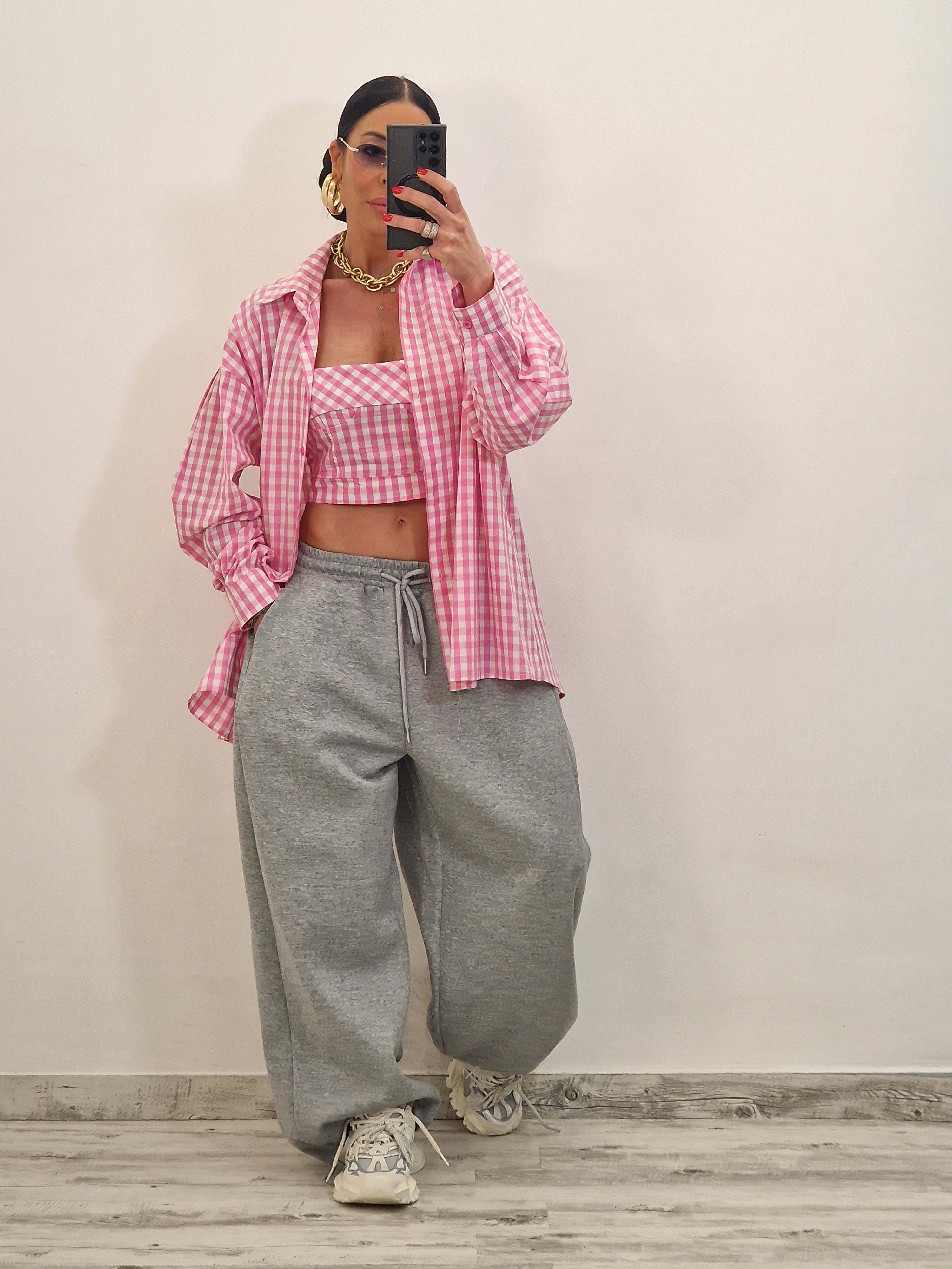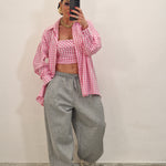 Camicia di cotone a quadrettini con crop top con zip dietro