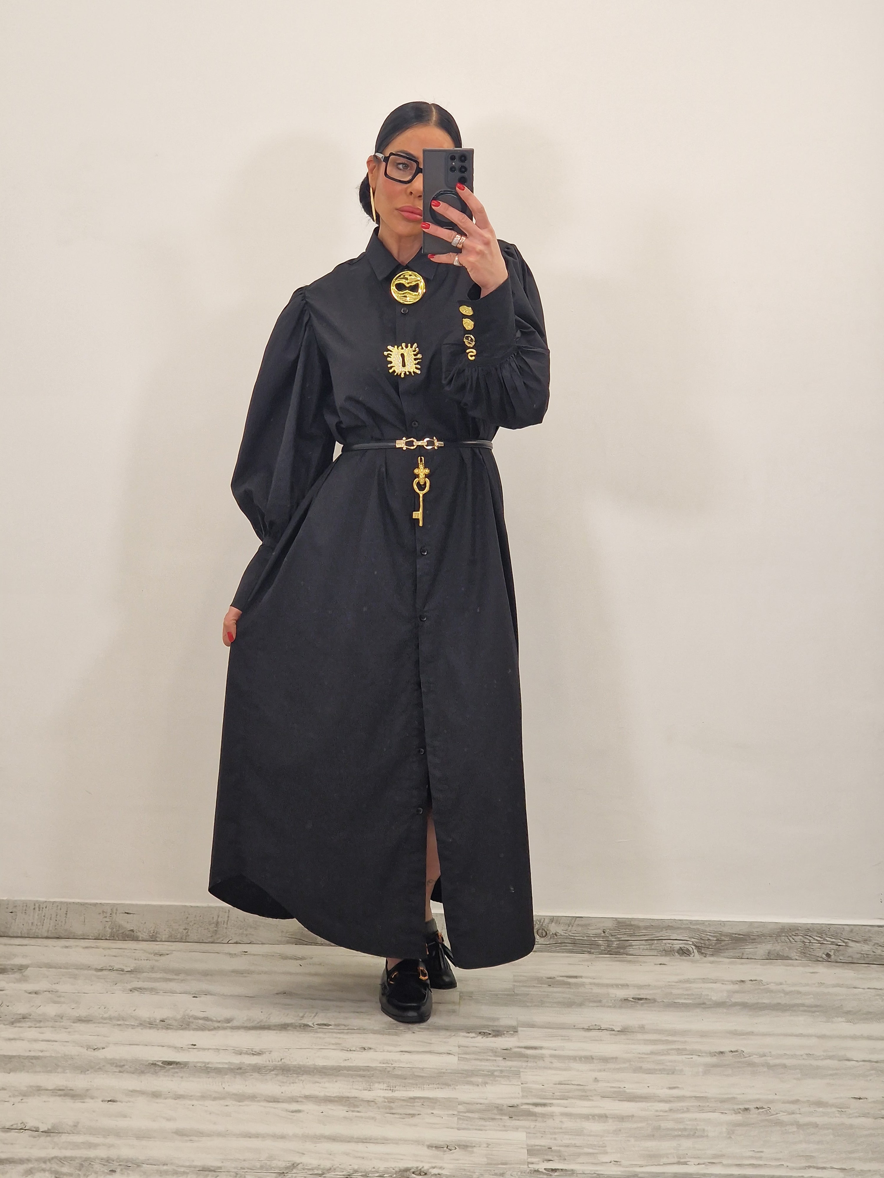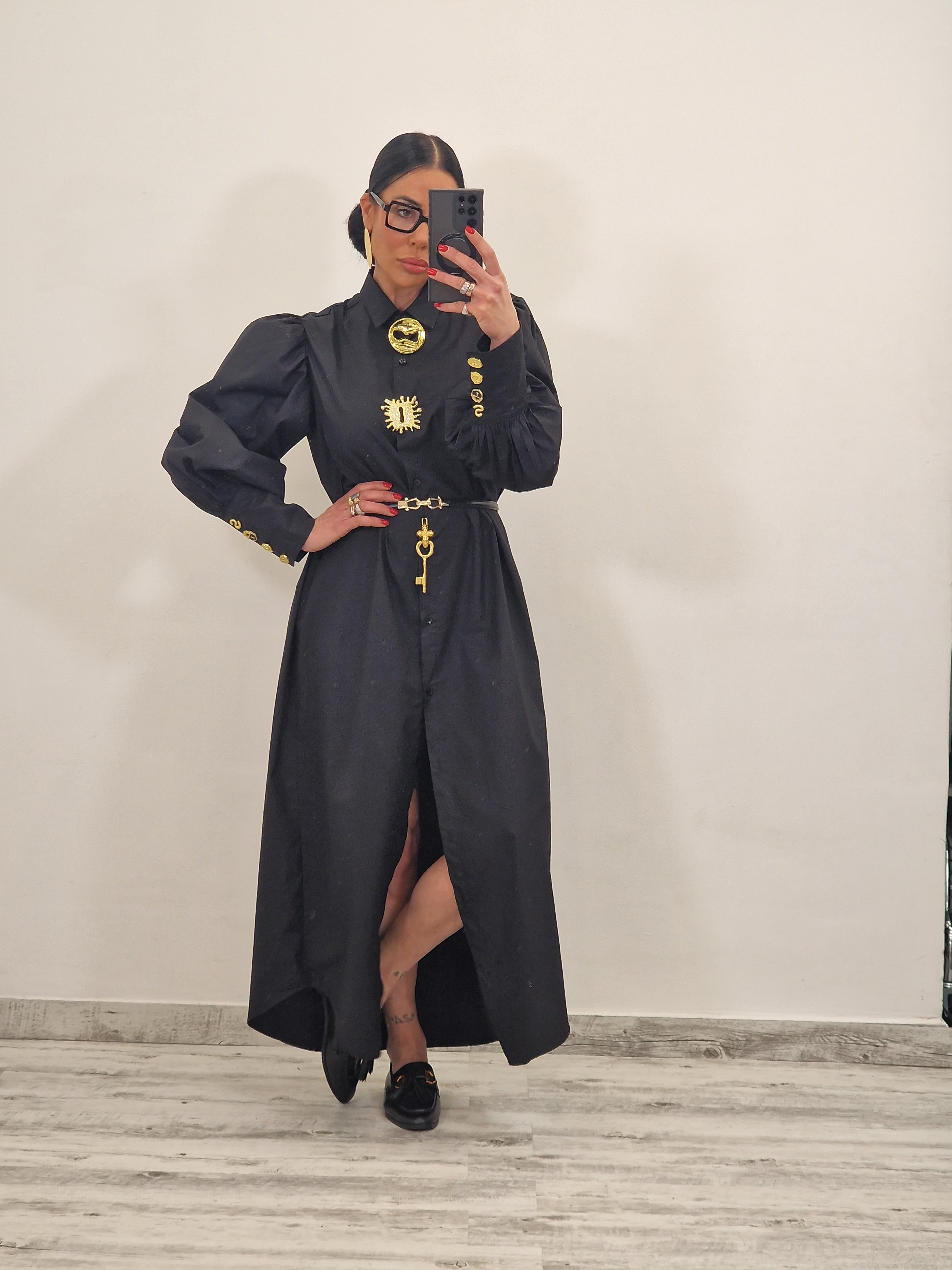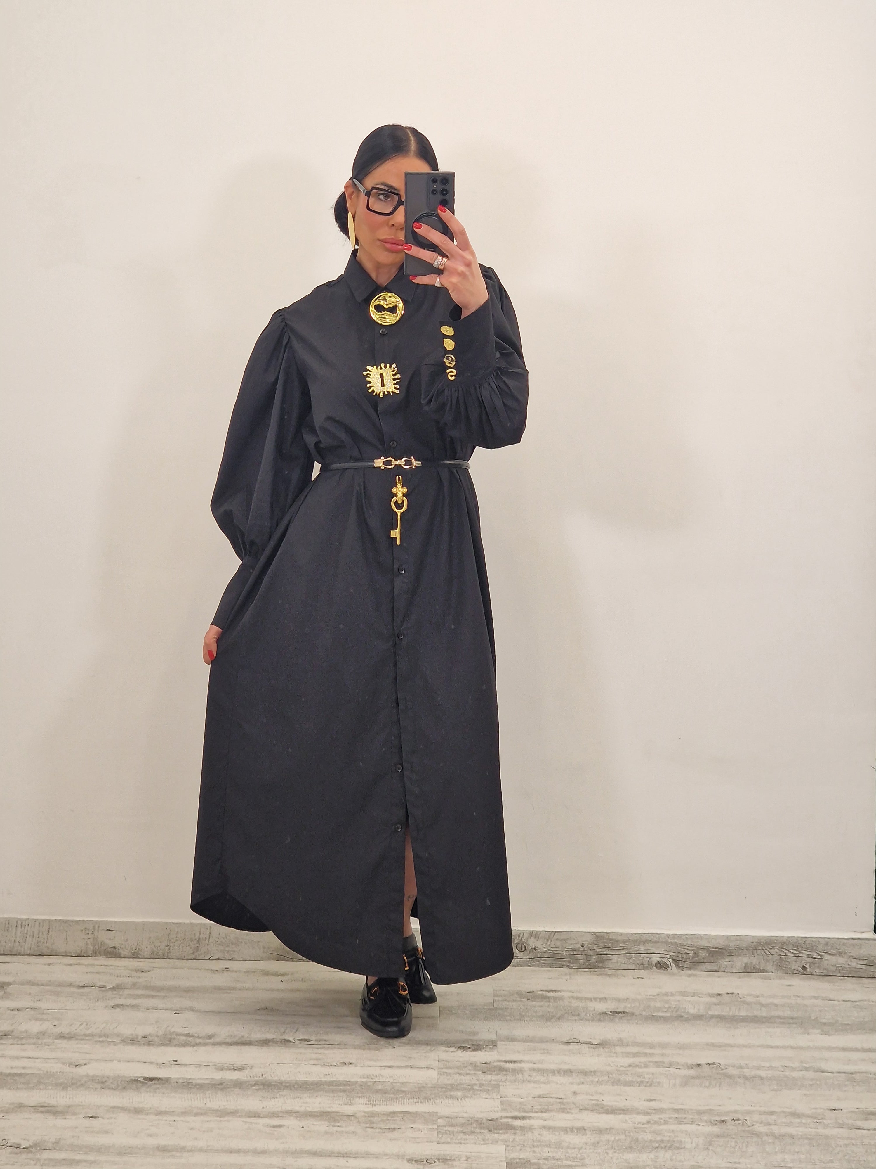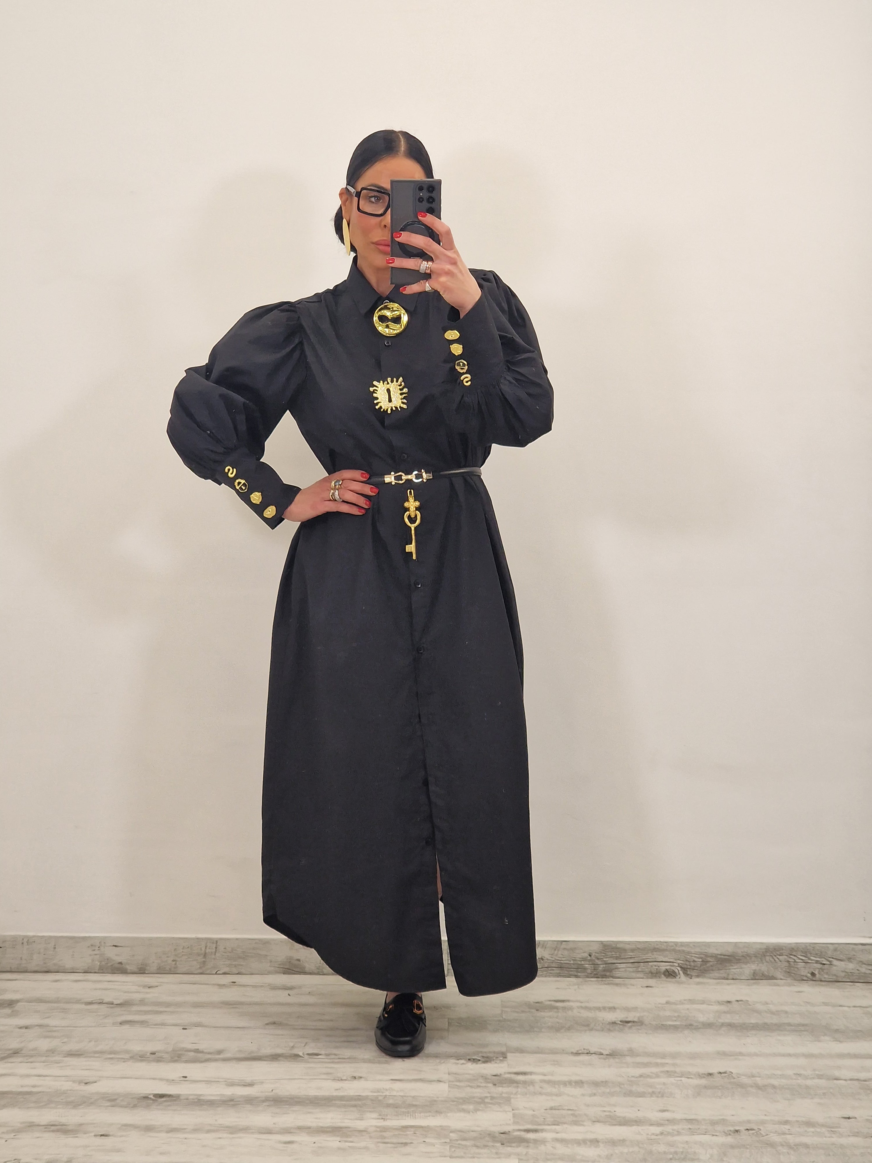 Camicione 100% cotone con spille gioiello dorate e bottoni gioiello sui polsini