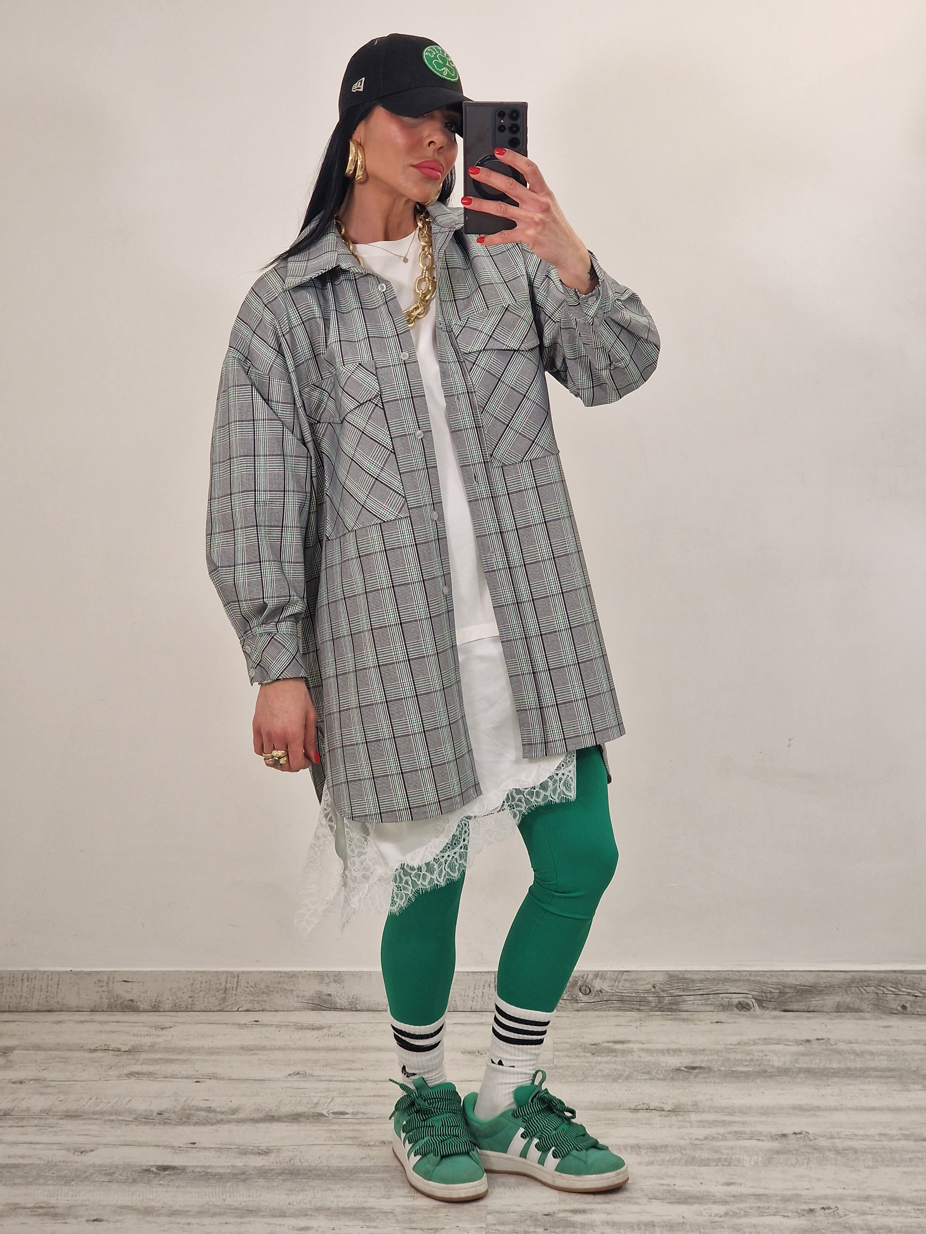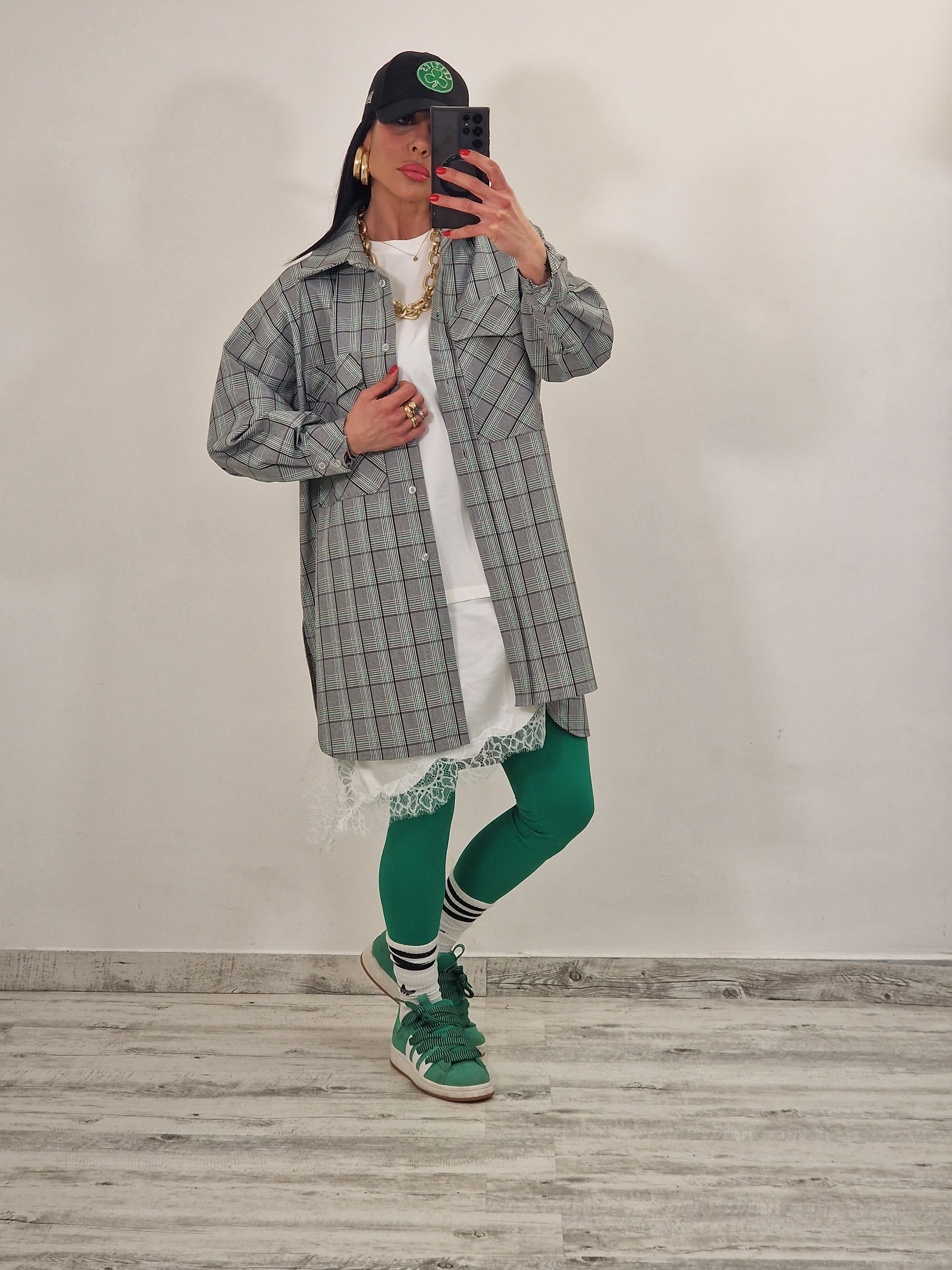 Stile casual e praticità: Questo camicione a quadri piccoli colorati unisce vivacità e funzionalità. I tasconi sul petto aggiungono un dettaglio pratico e distintivo, mentre il taglio ampio garantisce comfort e libertà di movimento. Perfetto da indossare da solo o abbinato a un capo più essenziale per un look informale e alla moda.