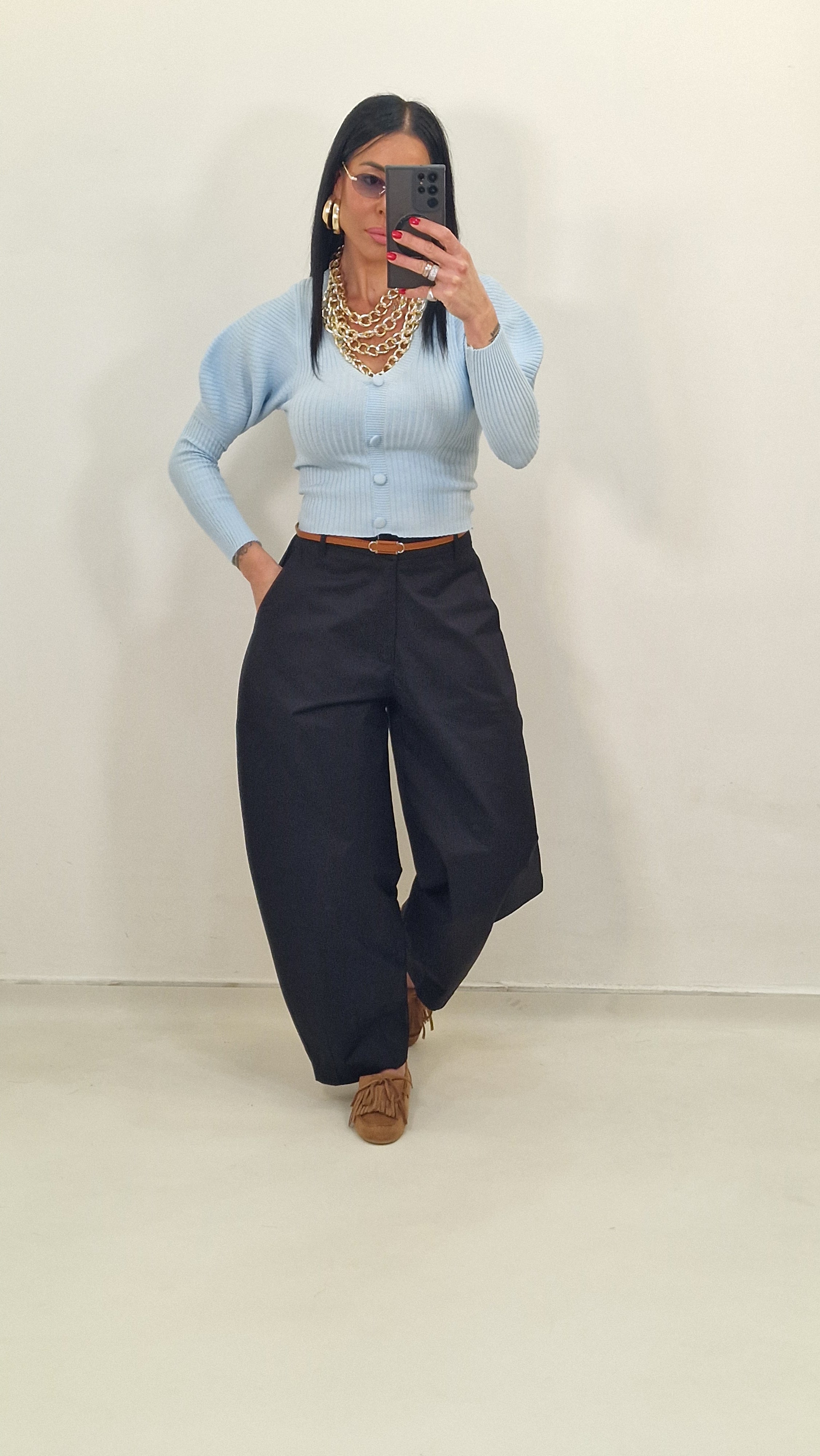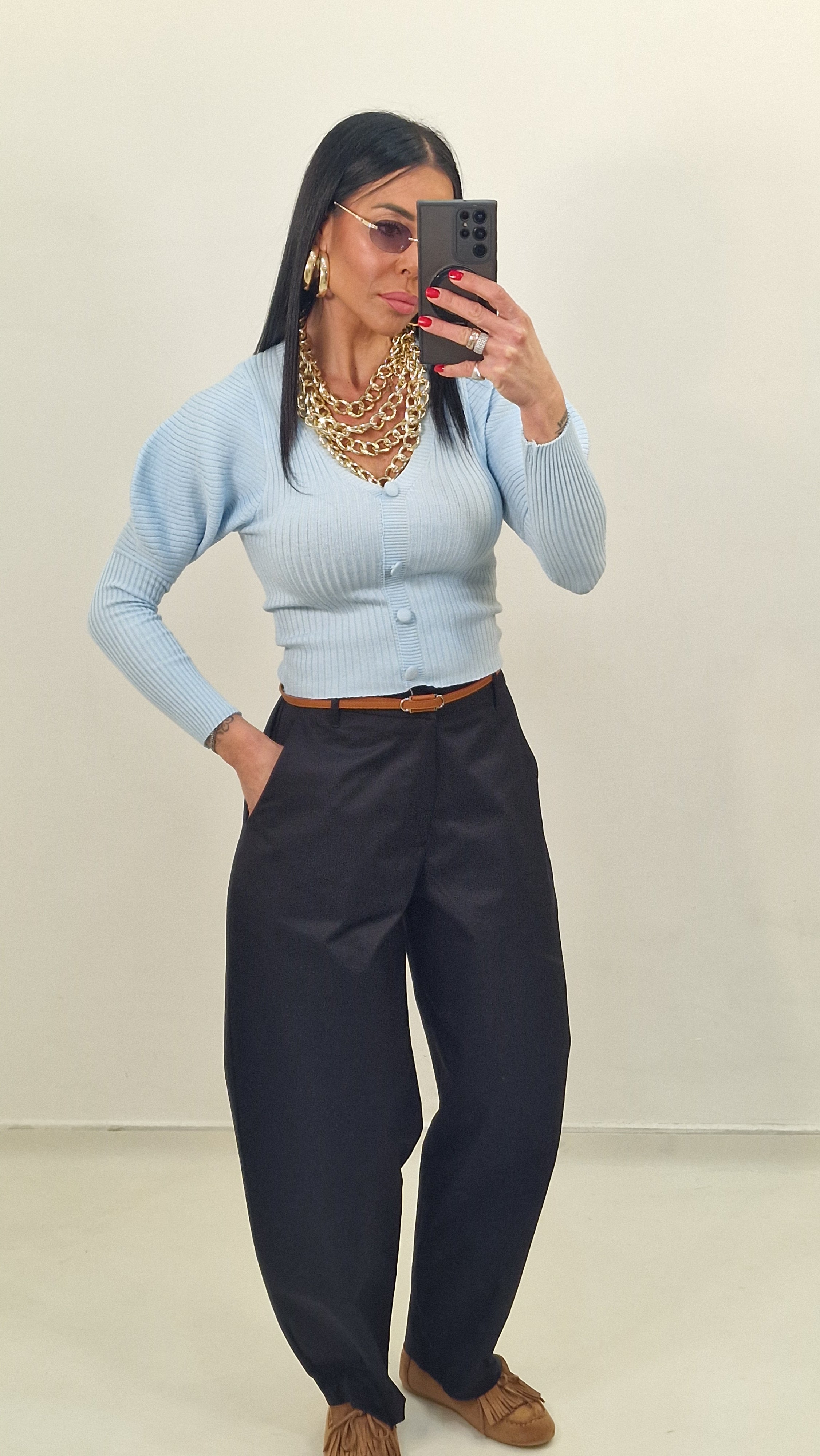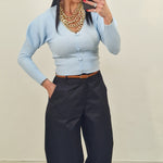 Cardigan con bottoni con manica con sbuffo