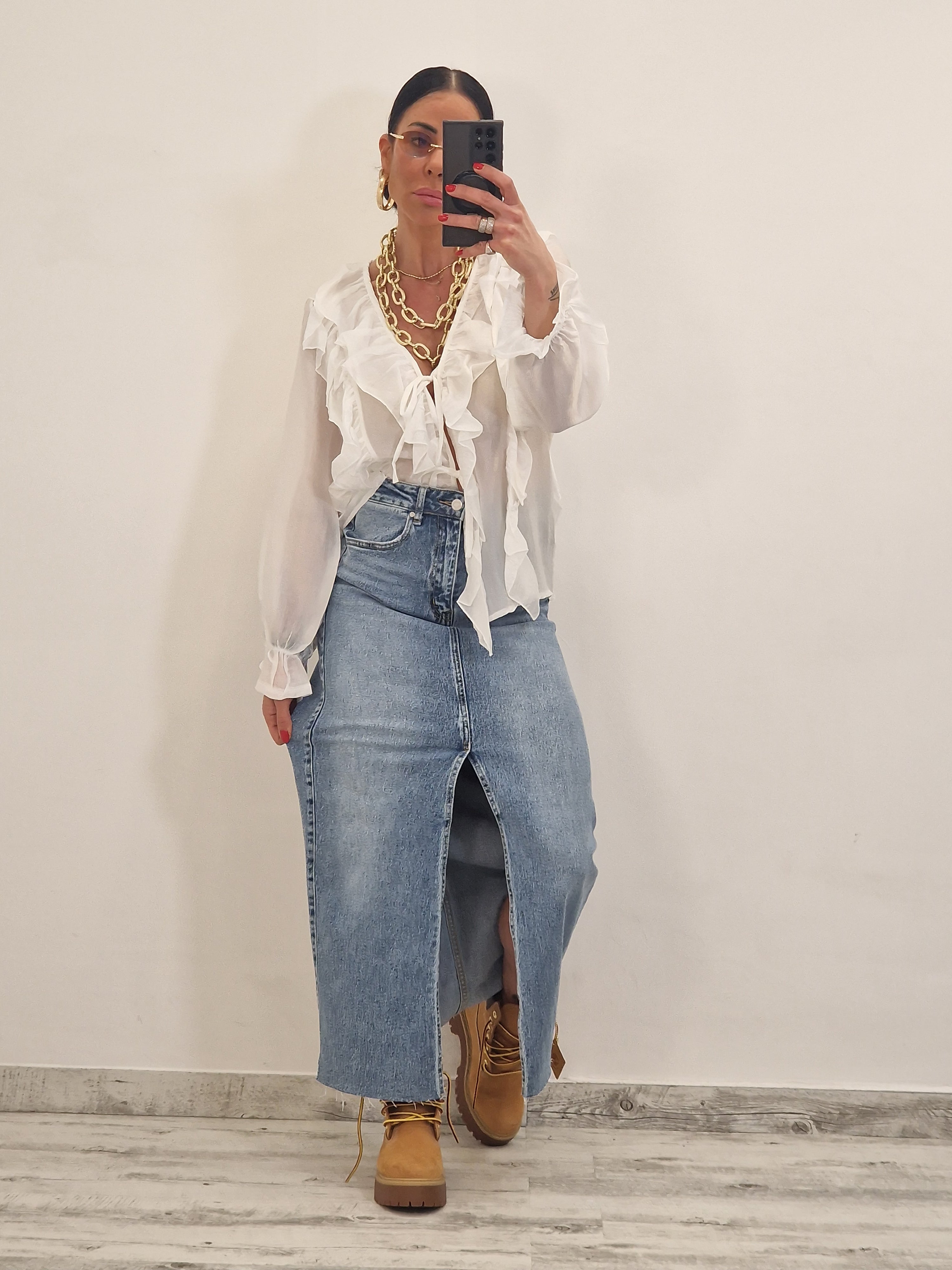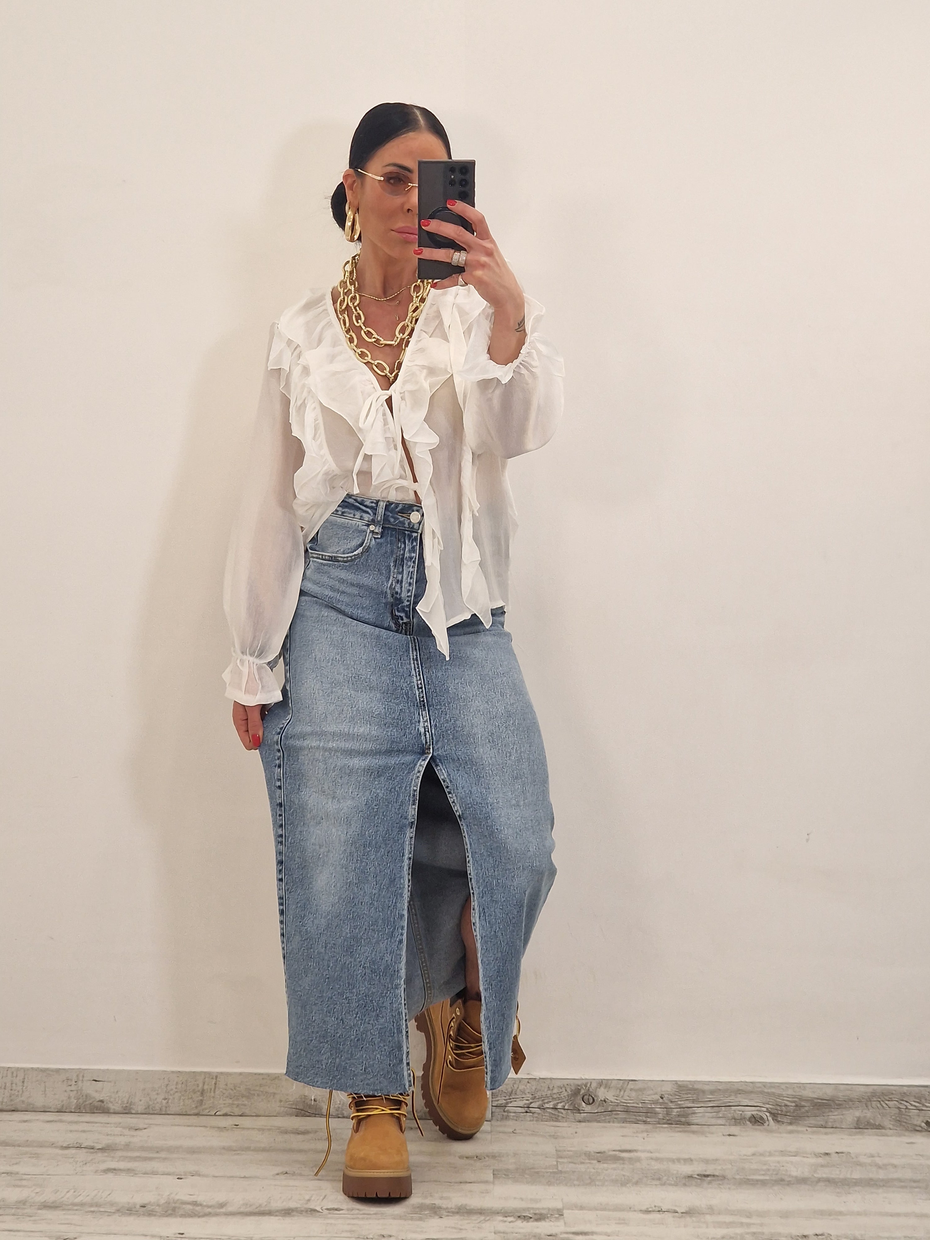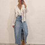 Casacca morbida con ruches e laccetti in avanti , con elastico al polso