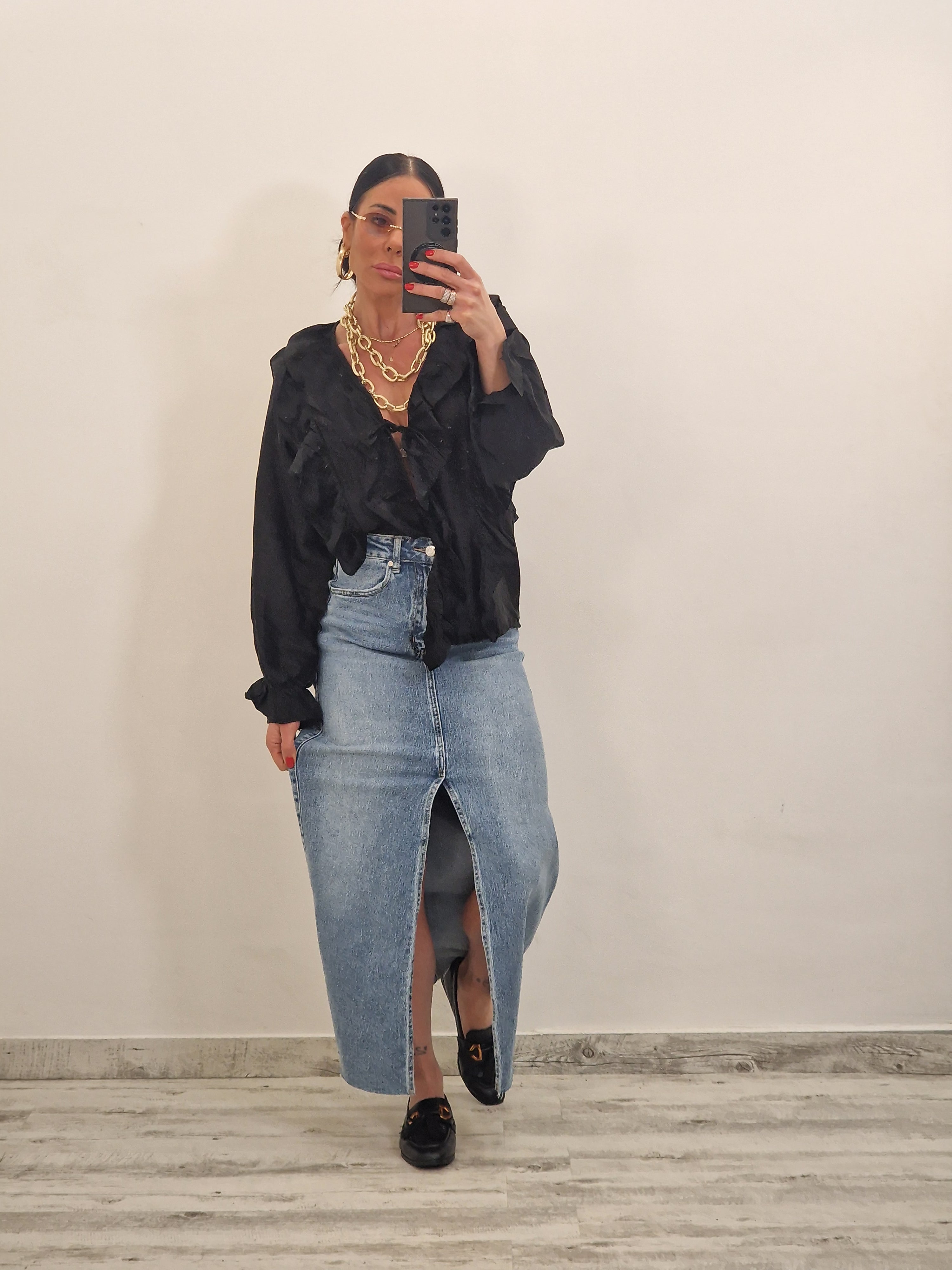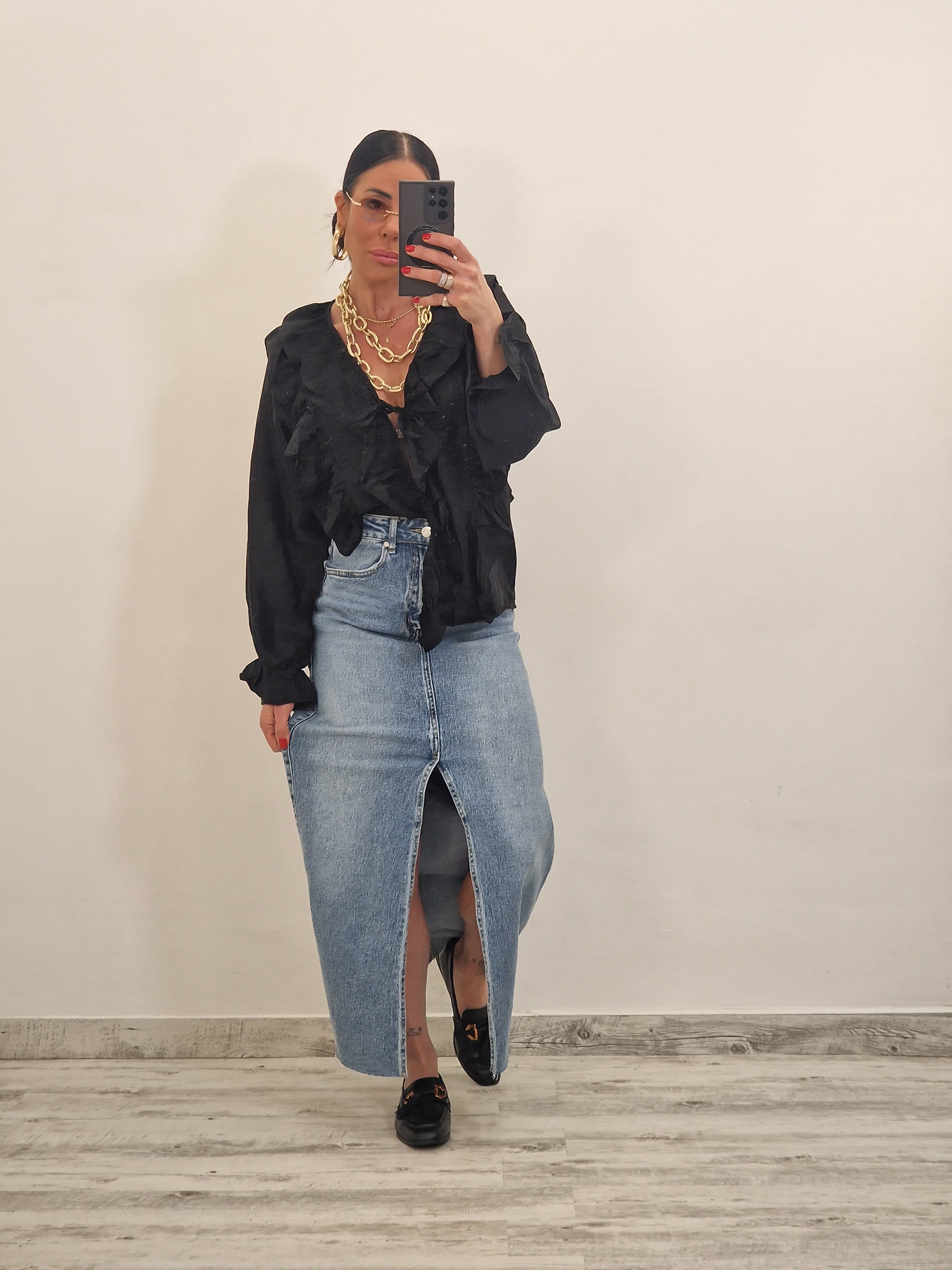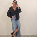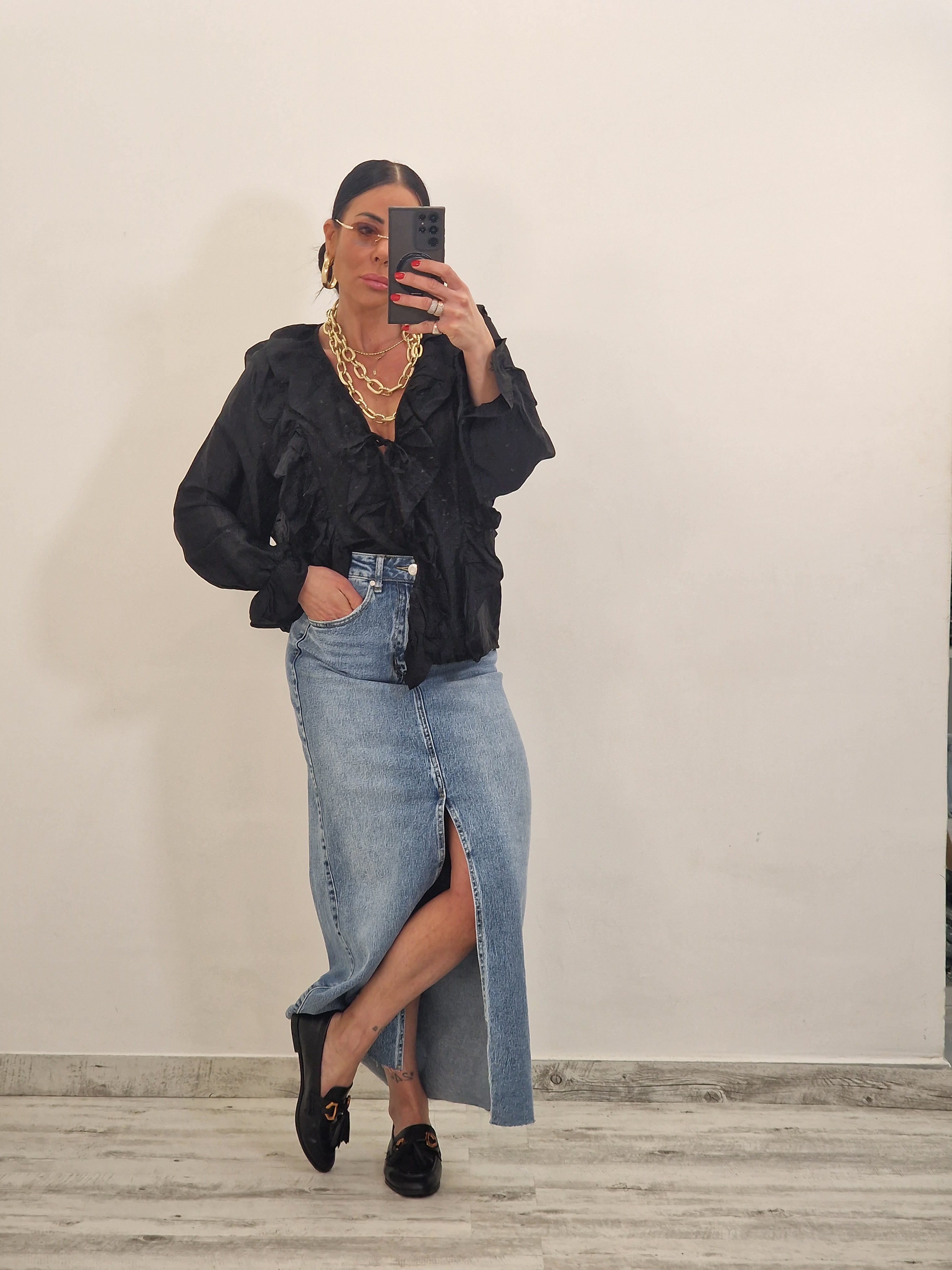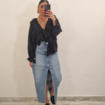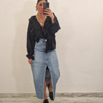 Casacca morbida con ruches e laccetti in avanti , con elastico al polso