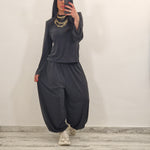 e pantalone morbido con elastico in vita e alla caviglia