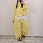 Coordinato di felpa composta da felpa con zip mezzo collo e coulisse in fondo