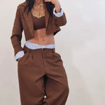 Coordinato composto da giacca crop e pantalone con elastico in cotone a vista