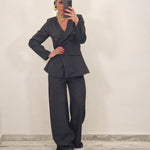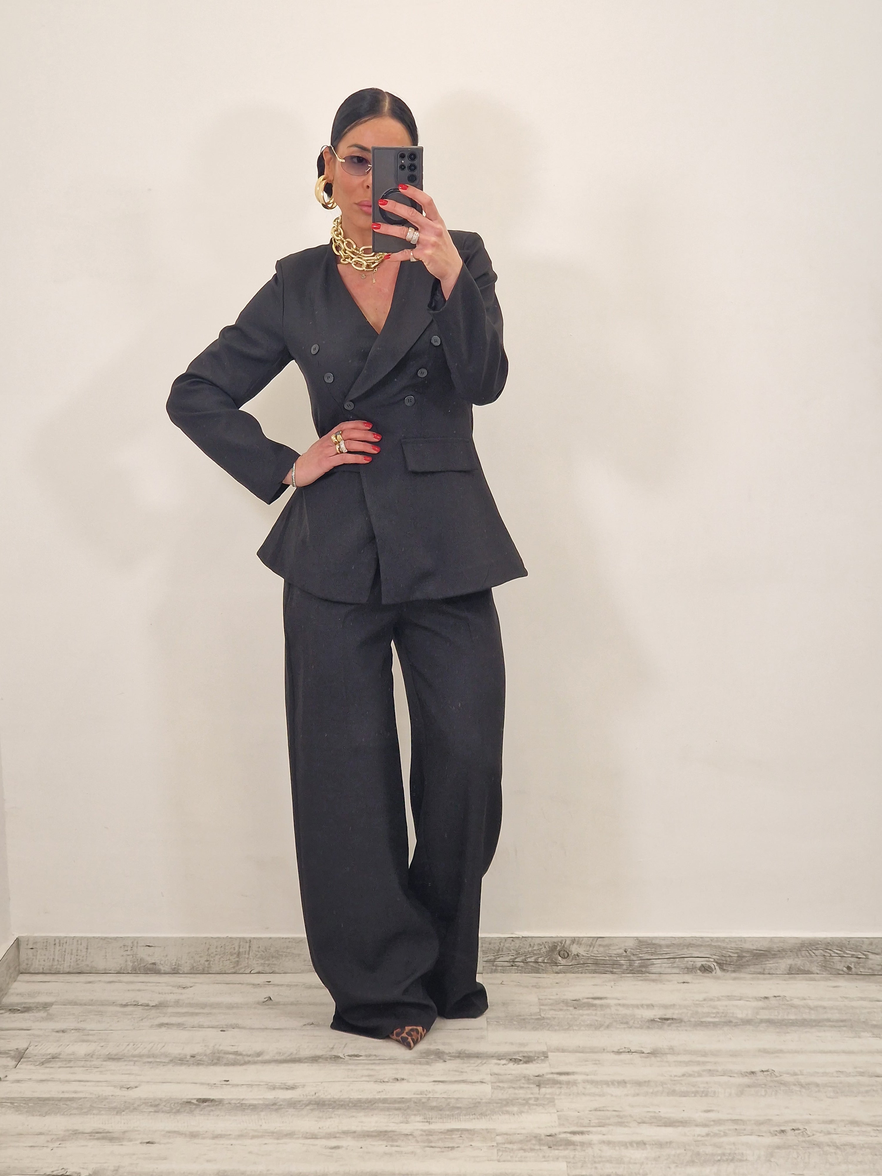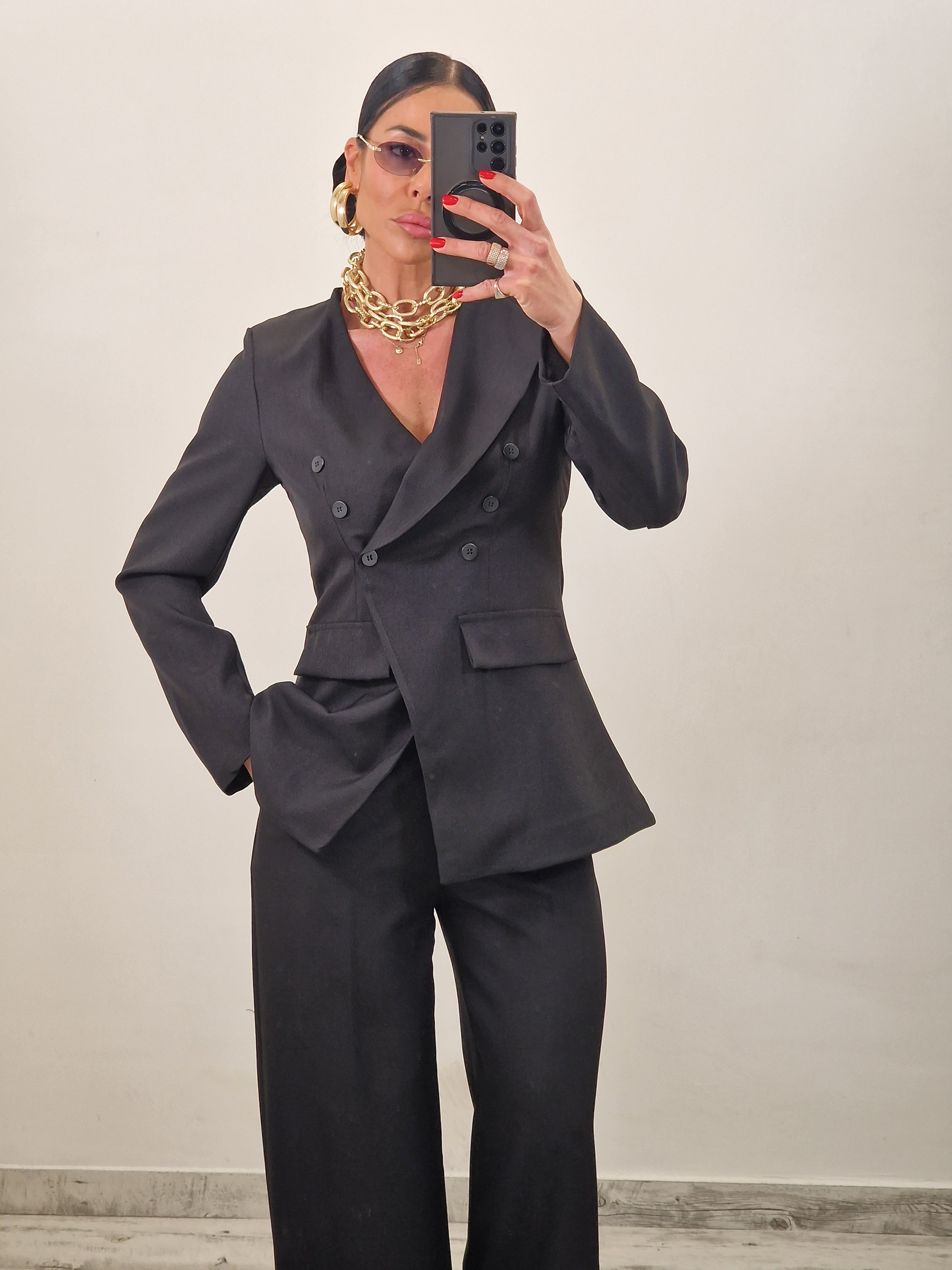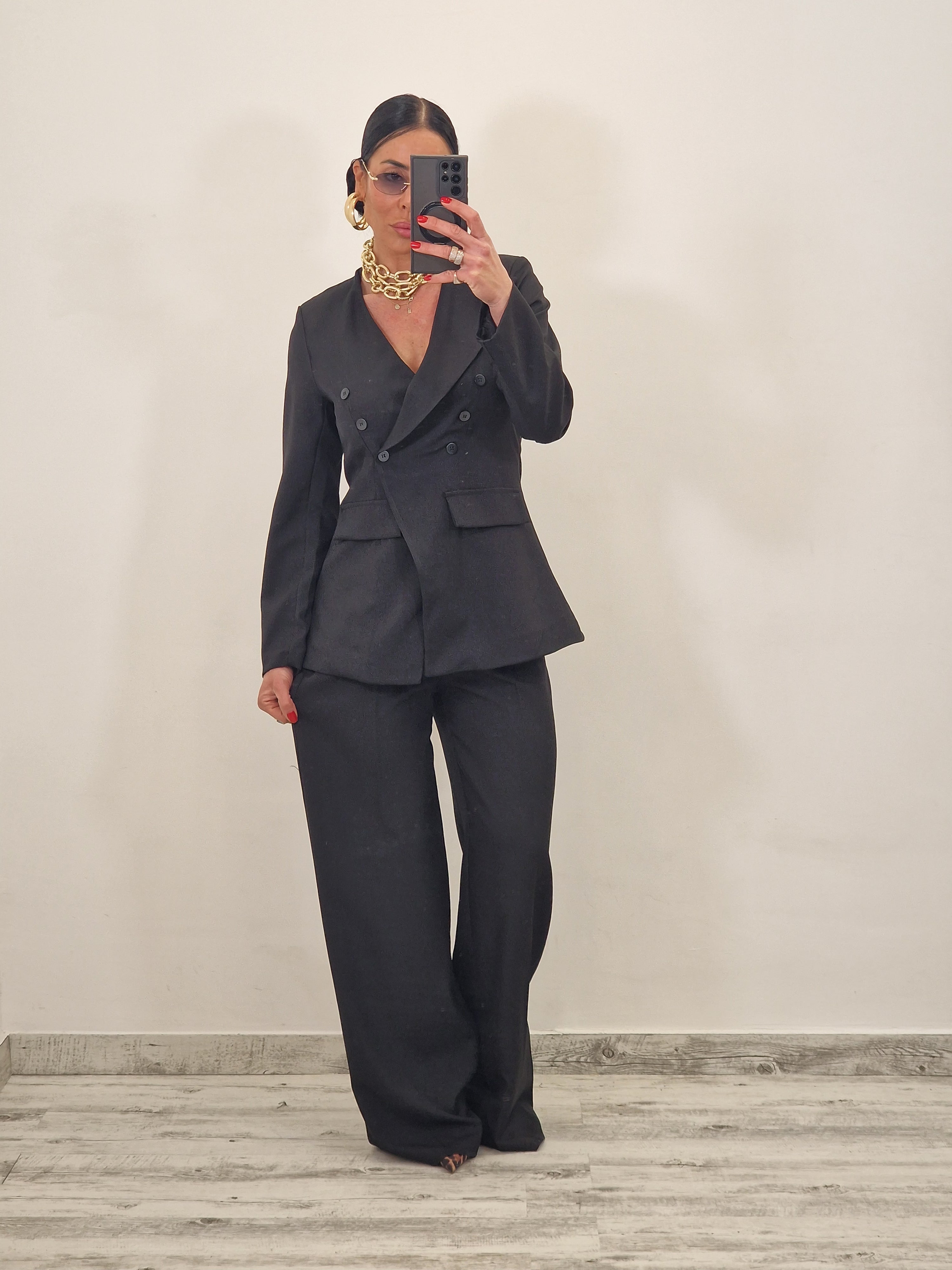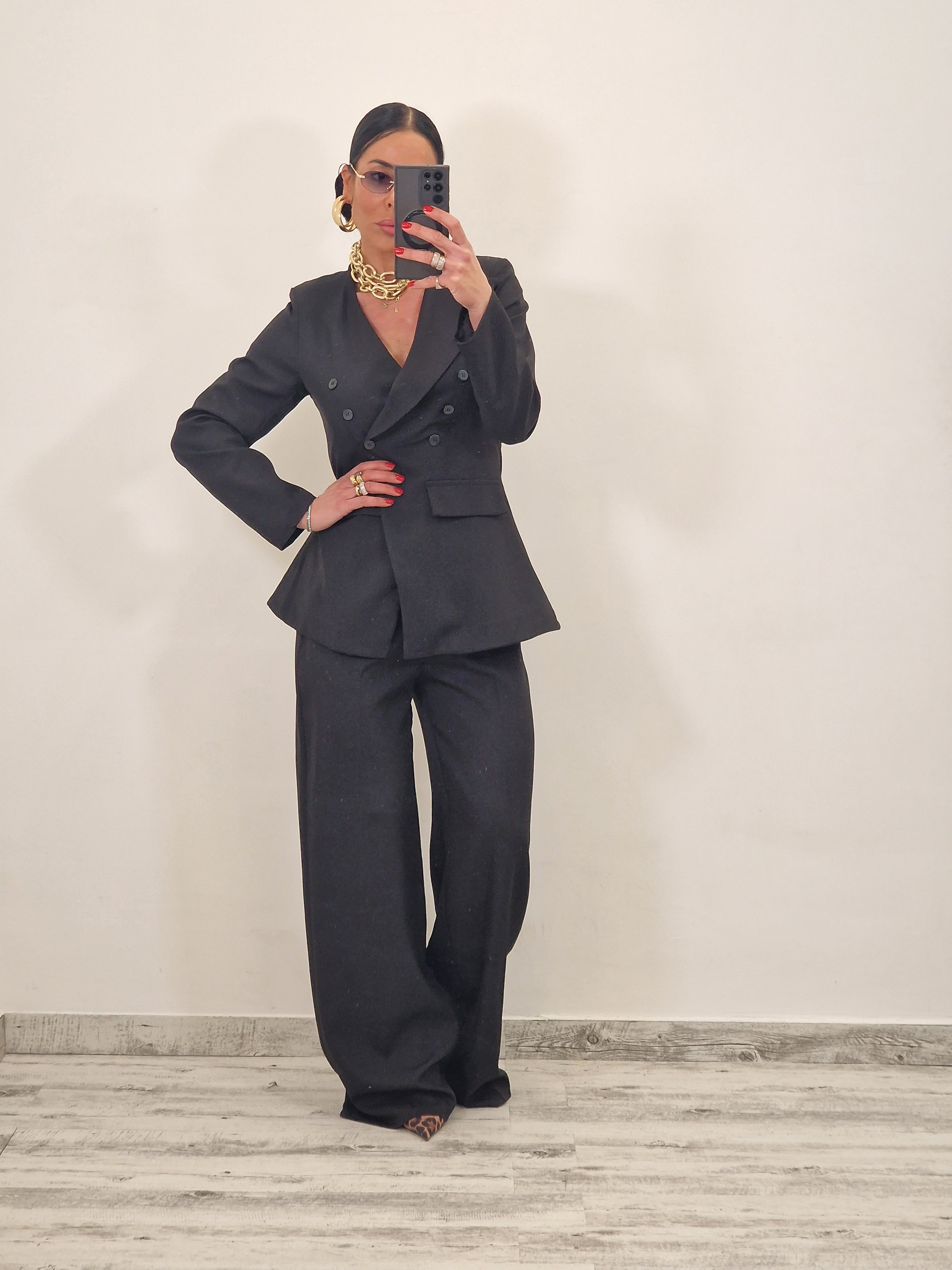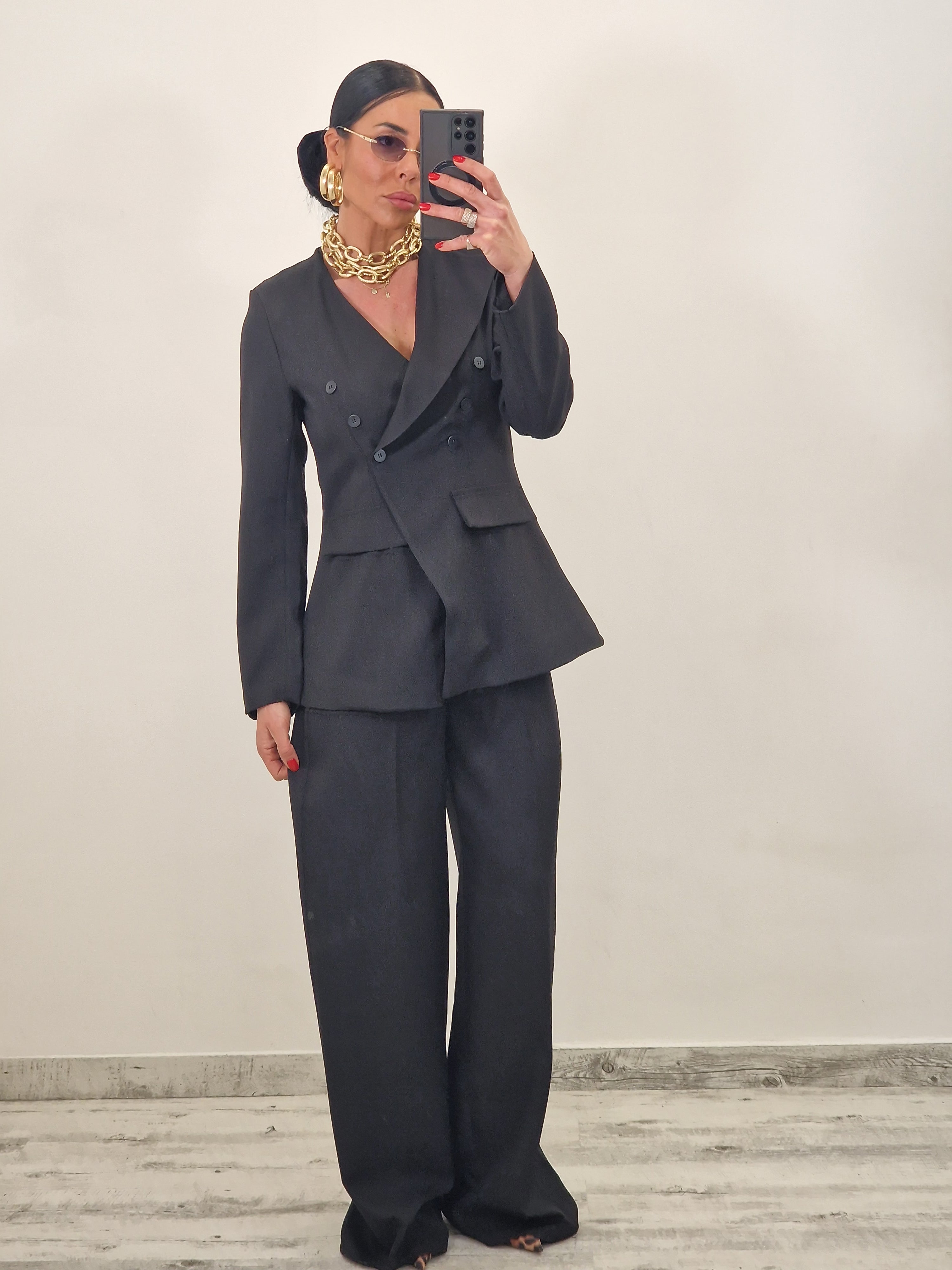 Coordinato con blazer avvitato con cintura  e pantalone con bottone ed elastico