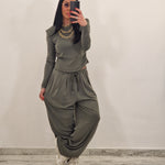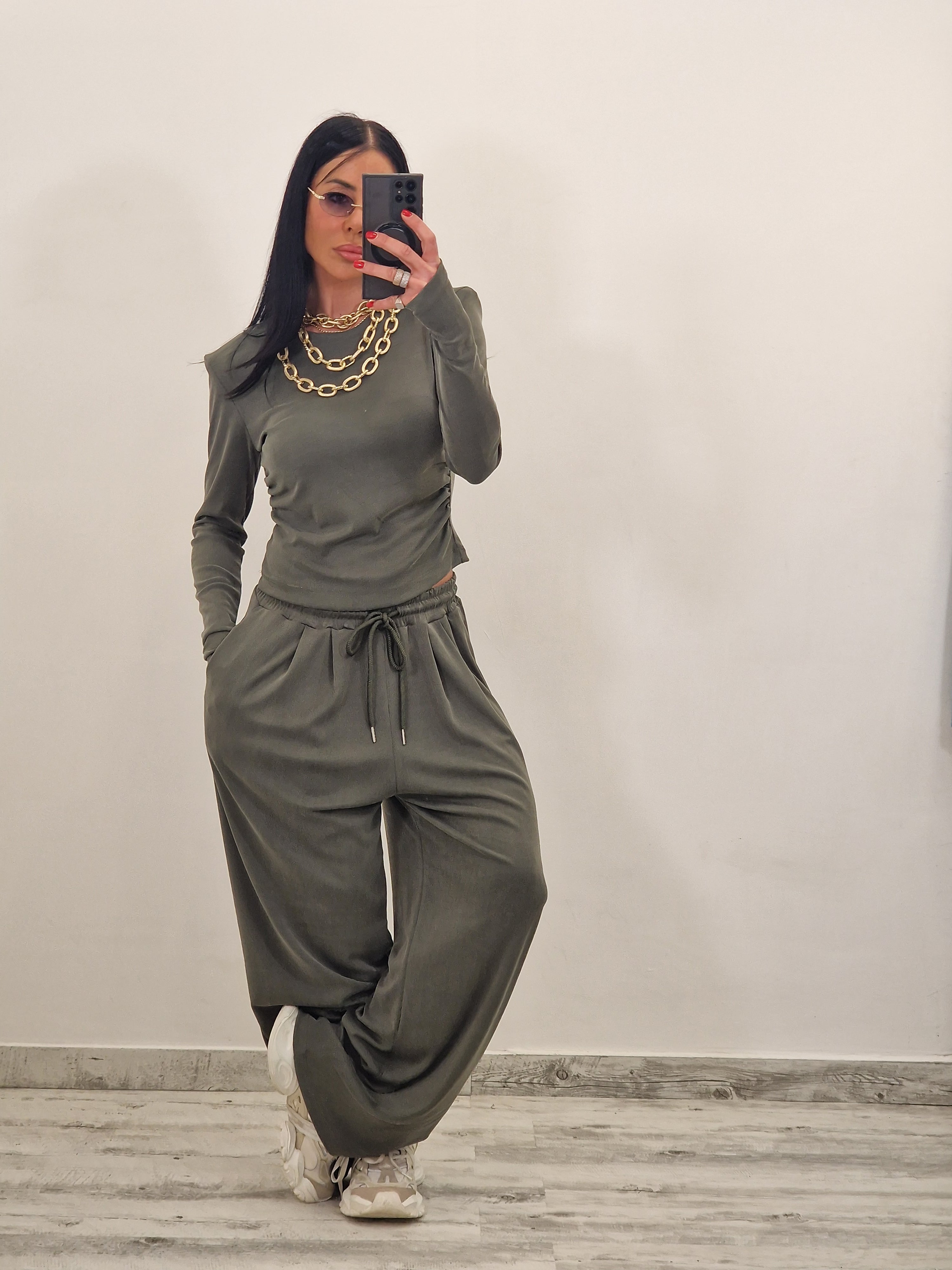 Coordinato composto da maglia con spalline e drappeggiato nei lati
