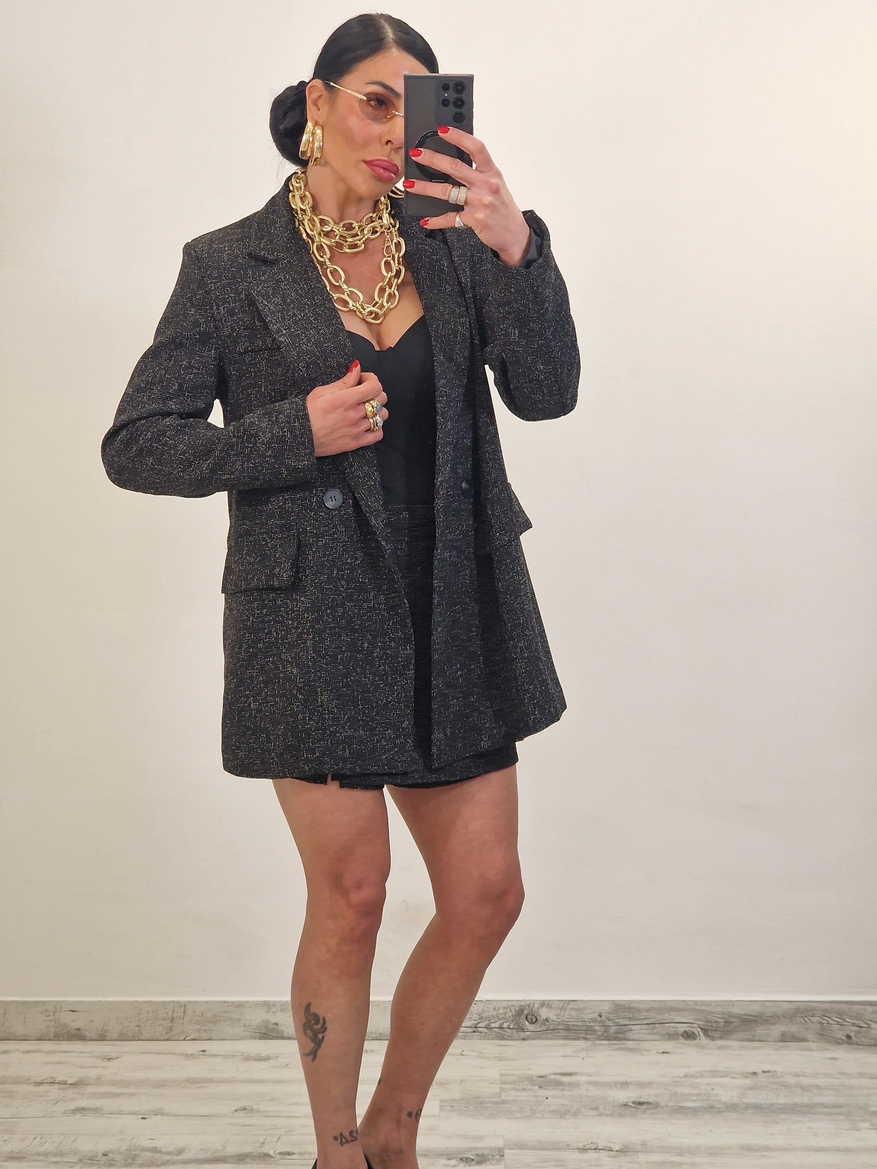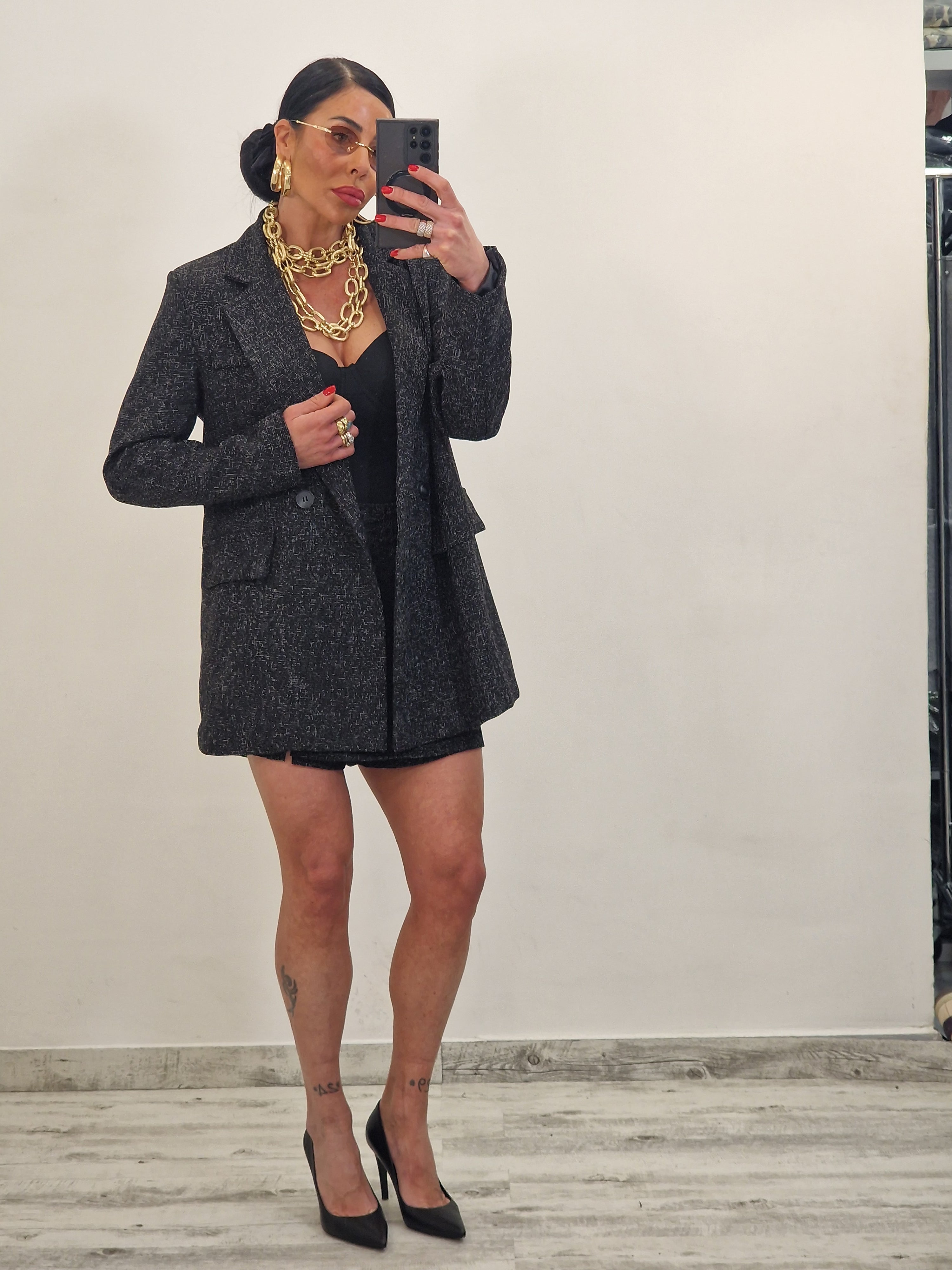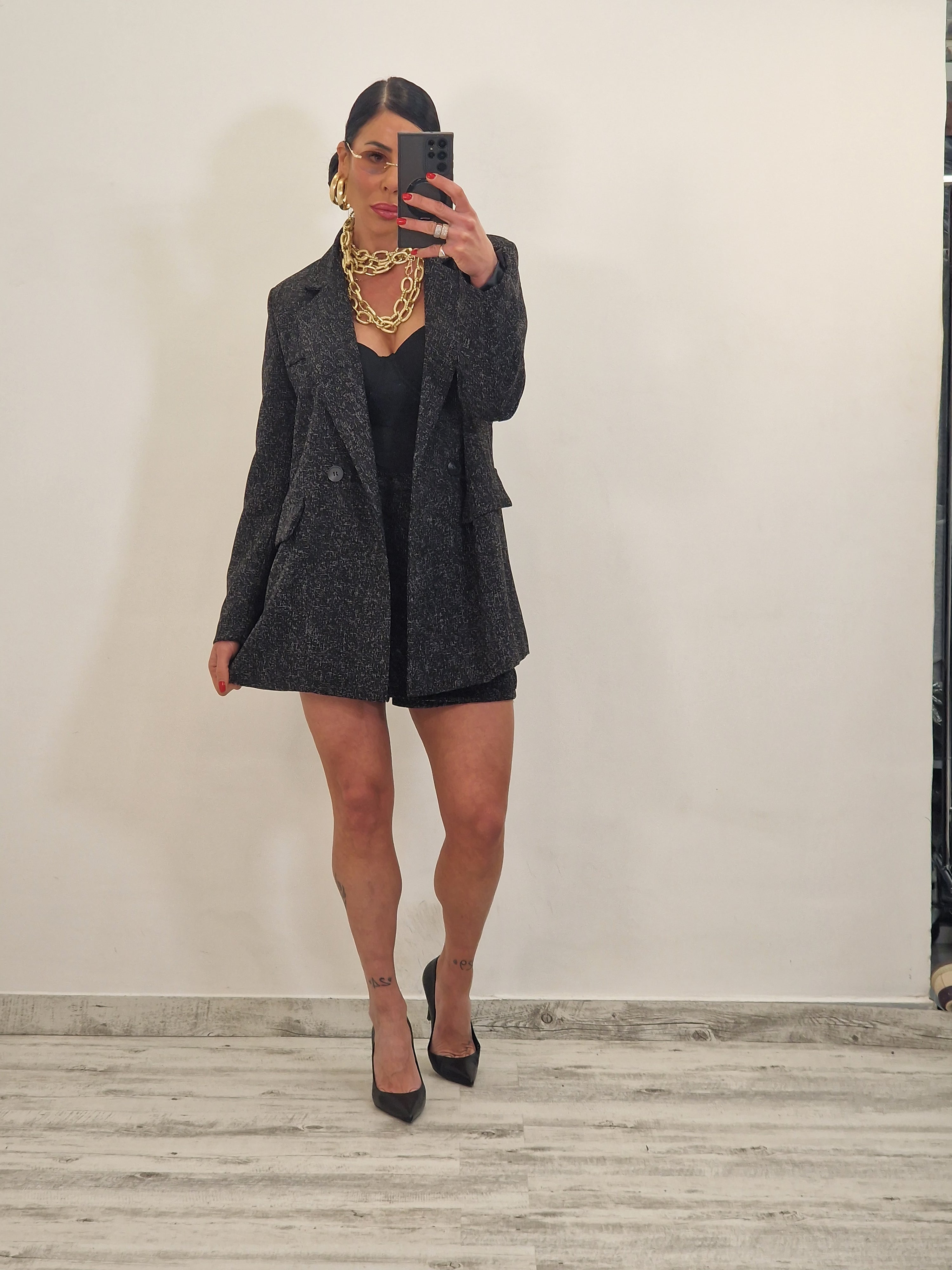 Coordinato composto da blazer morbido con spalline e