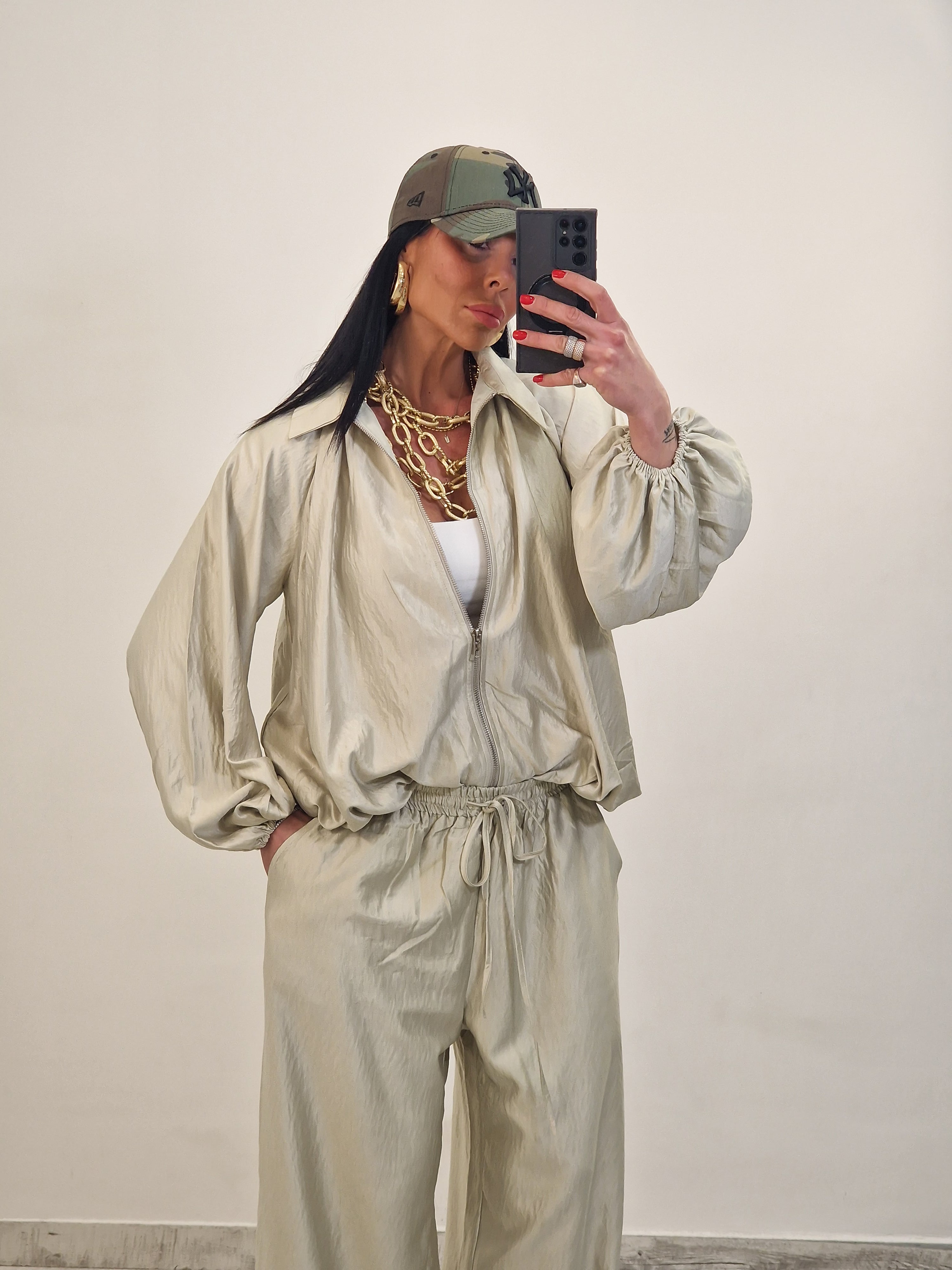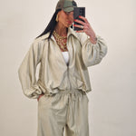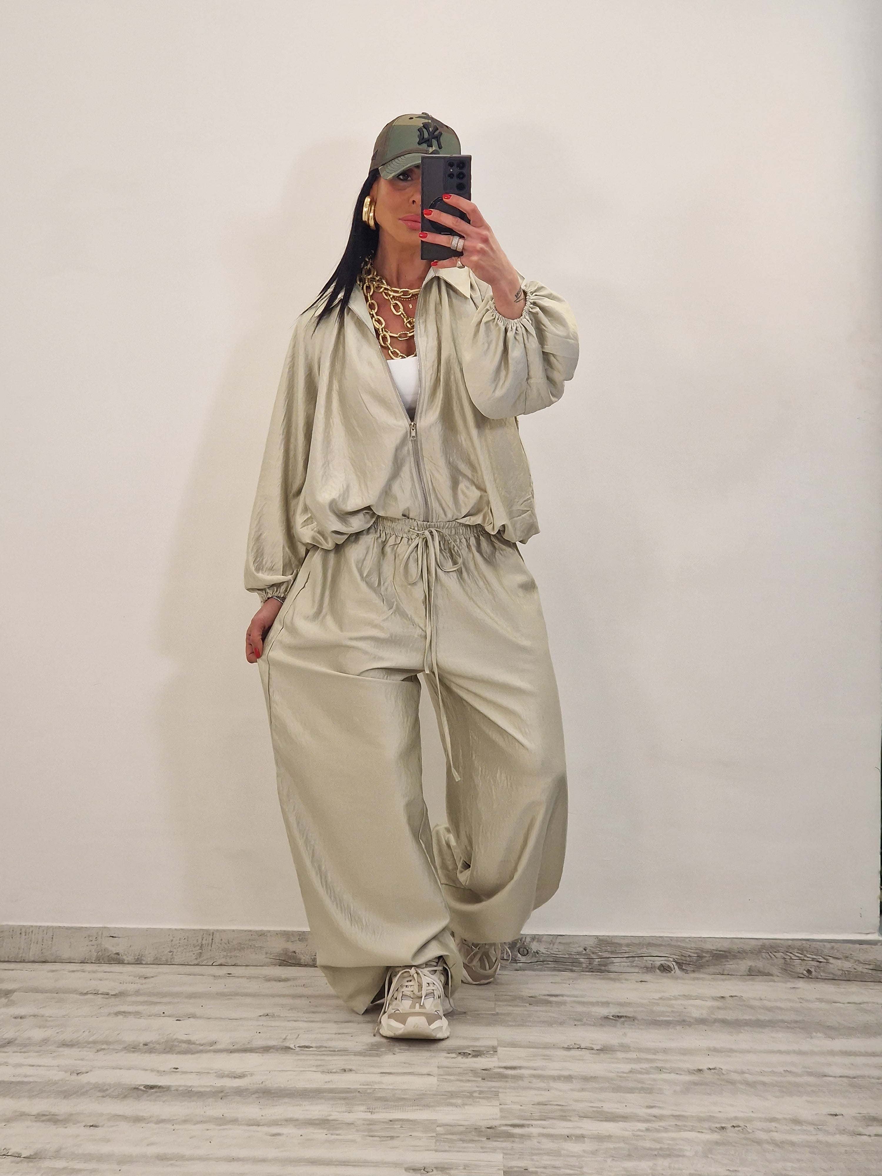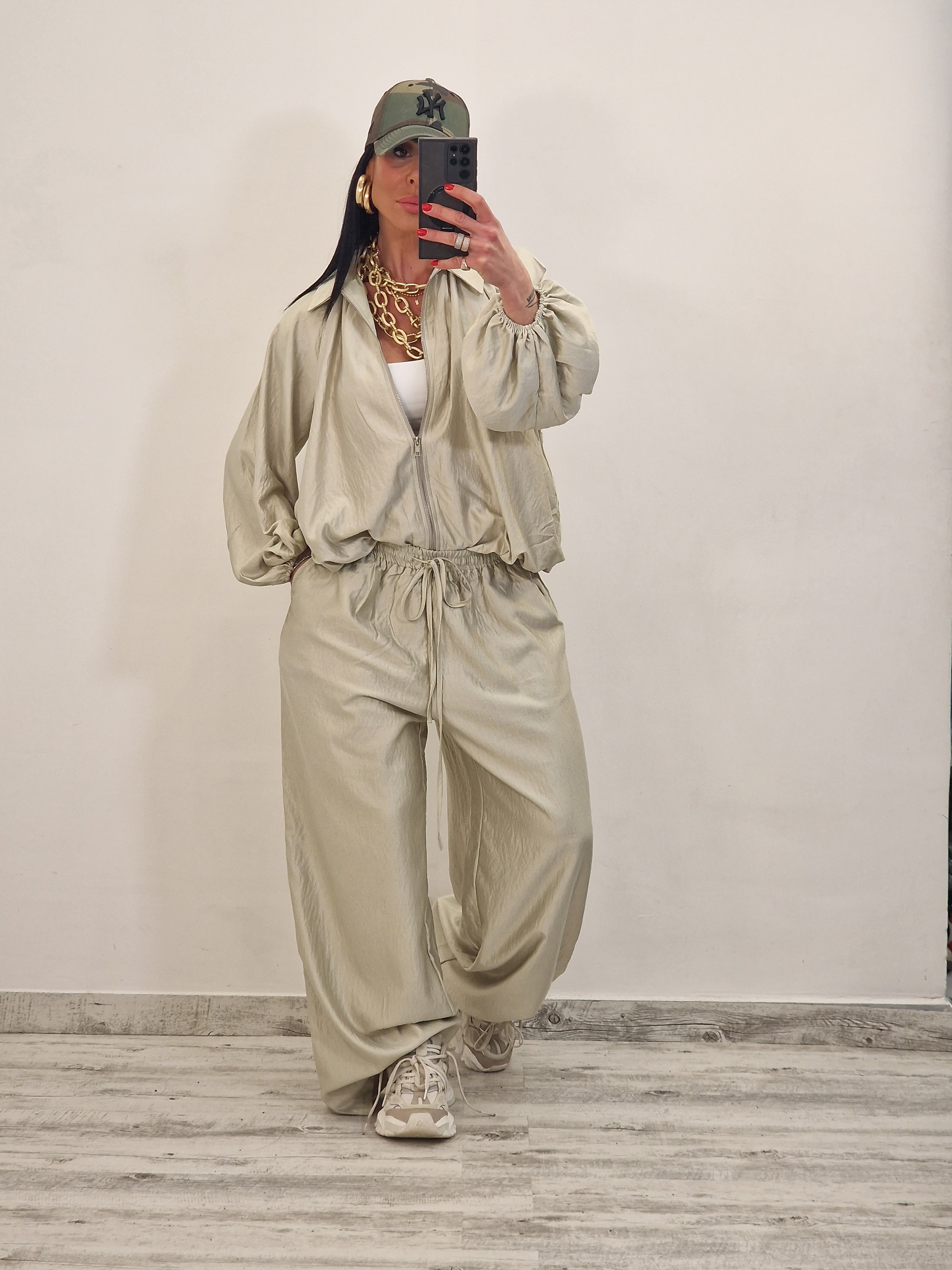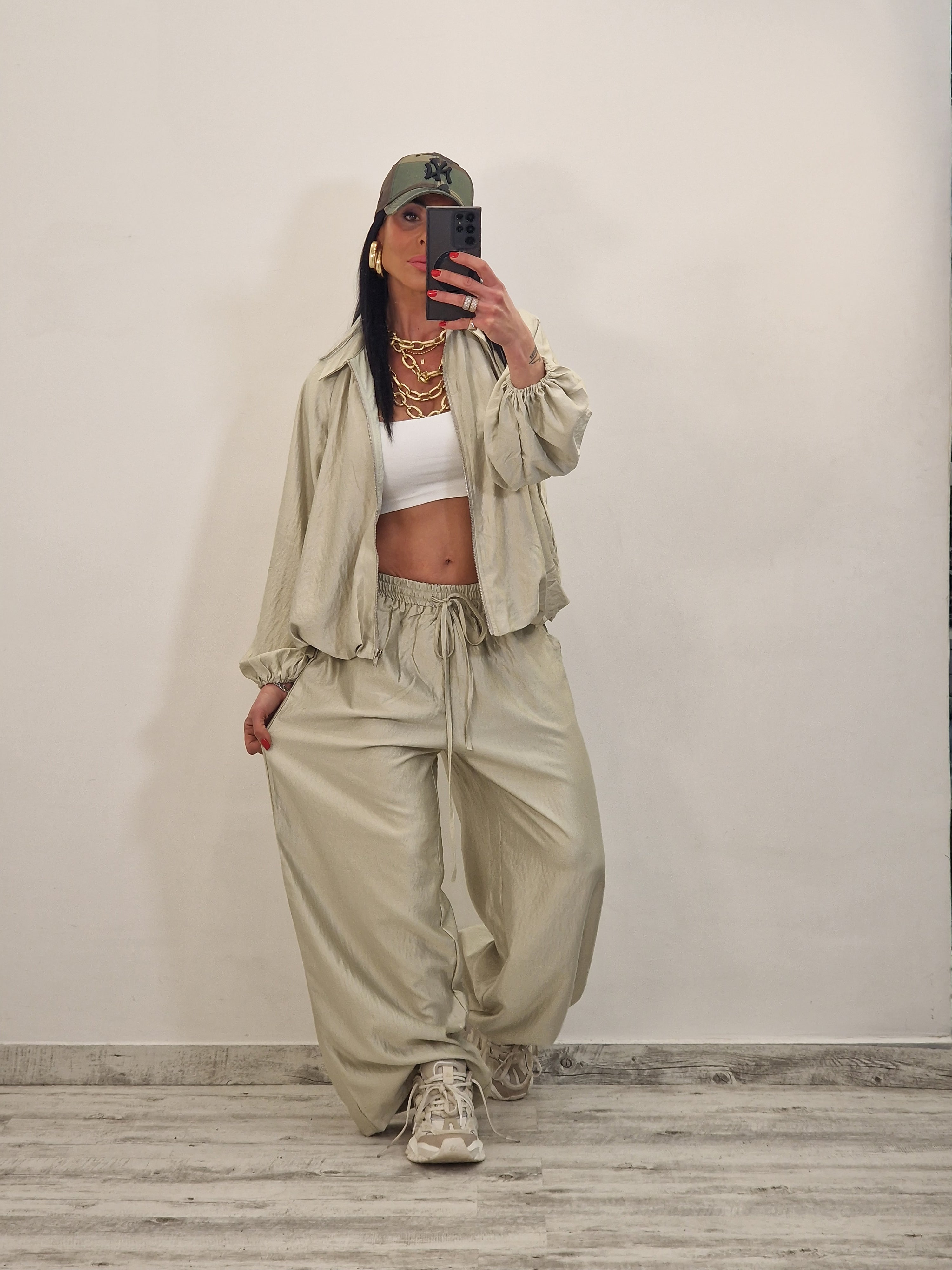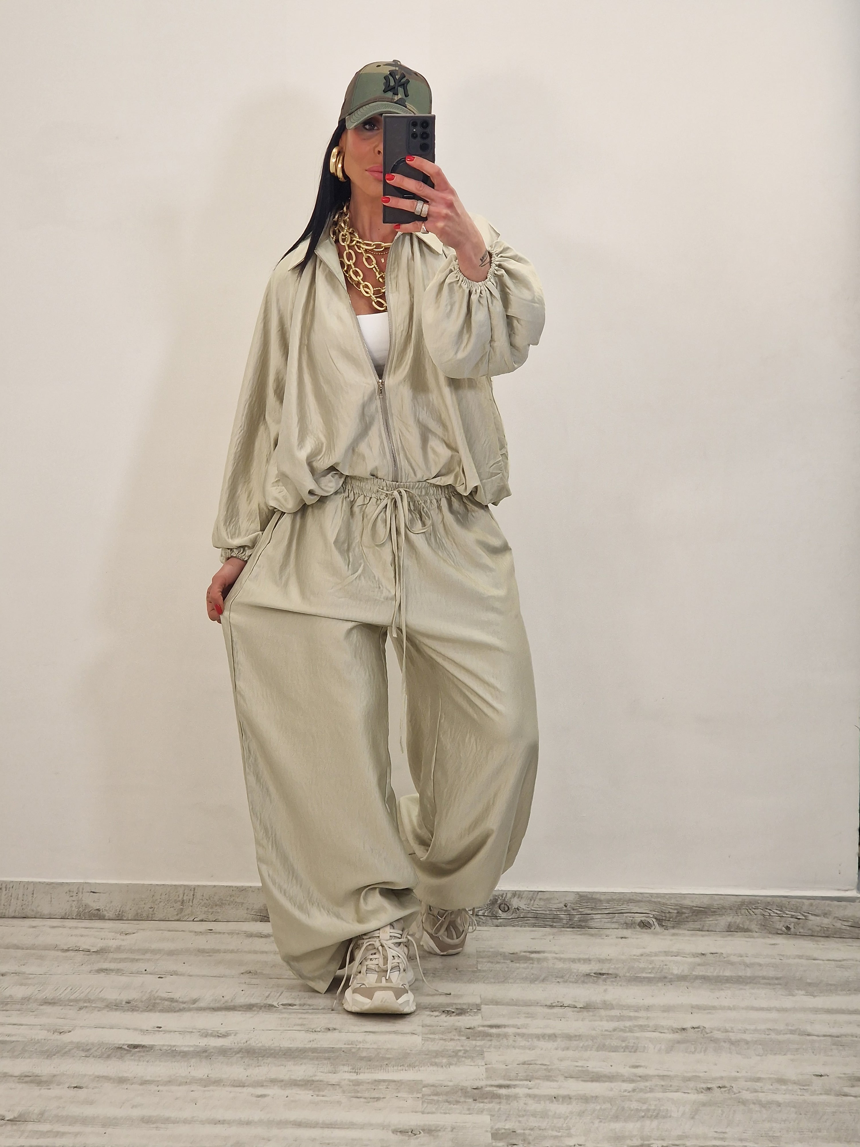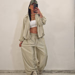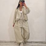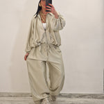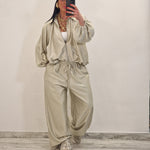 Coordinato composto da casacca con zip e pantalone morbido con elastico in vita