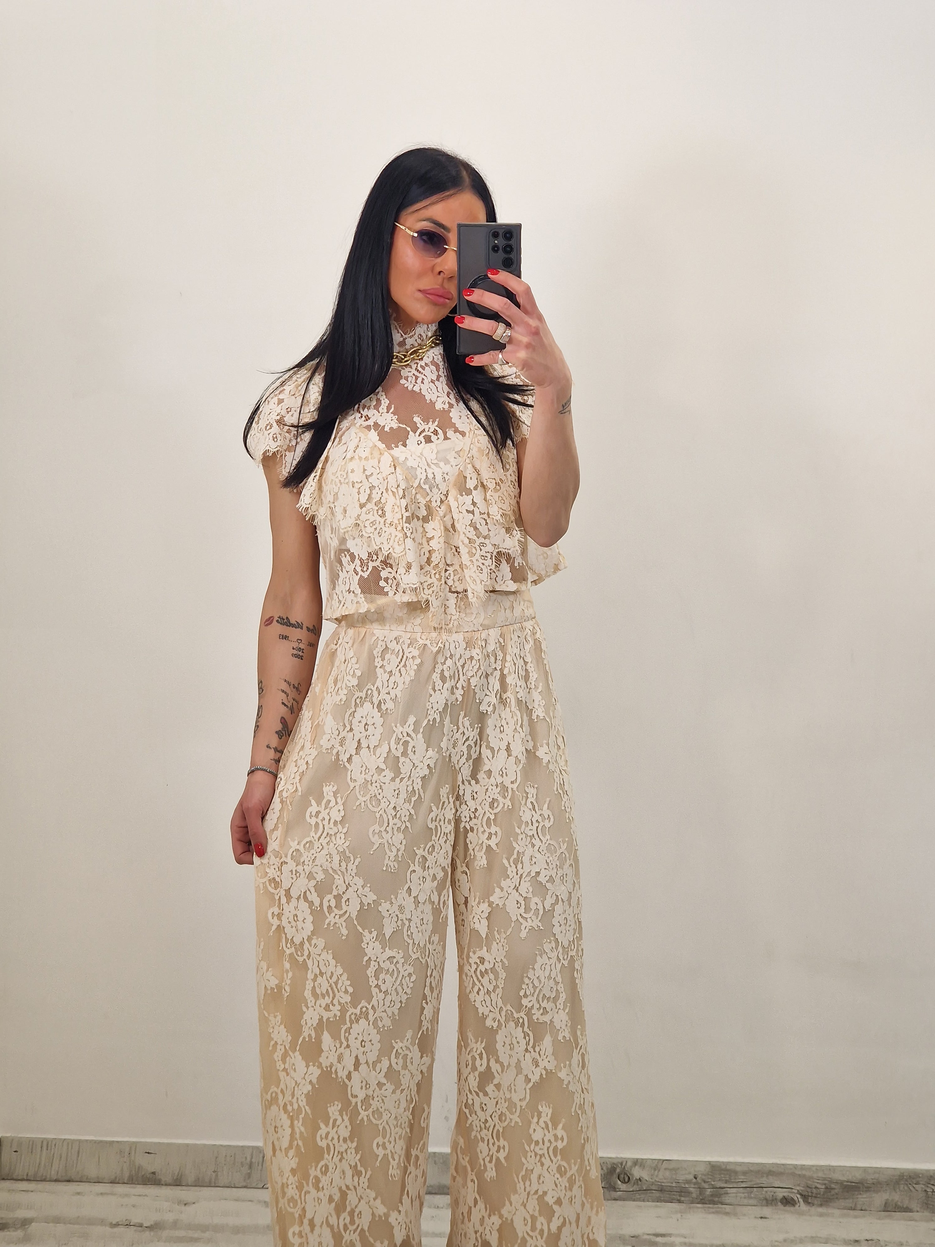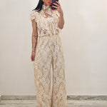 Coordinato composto da crop top e pantalone palazzo con elastico in vita