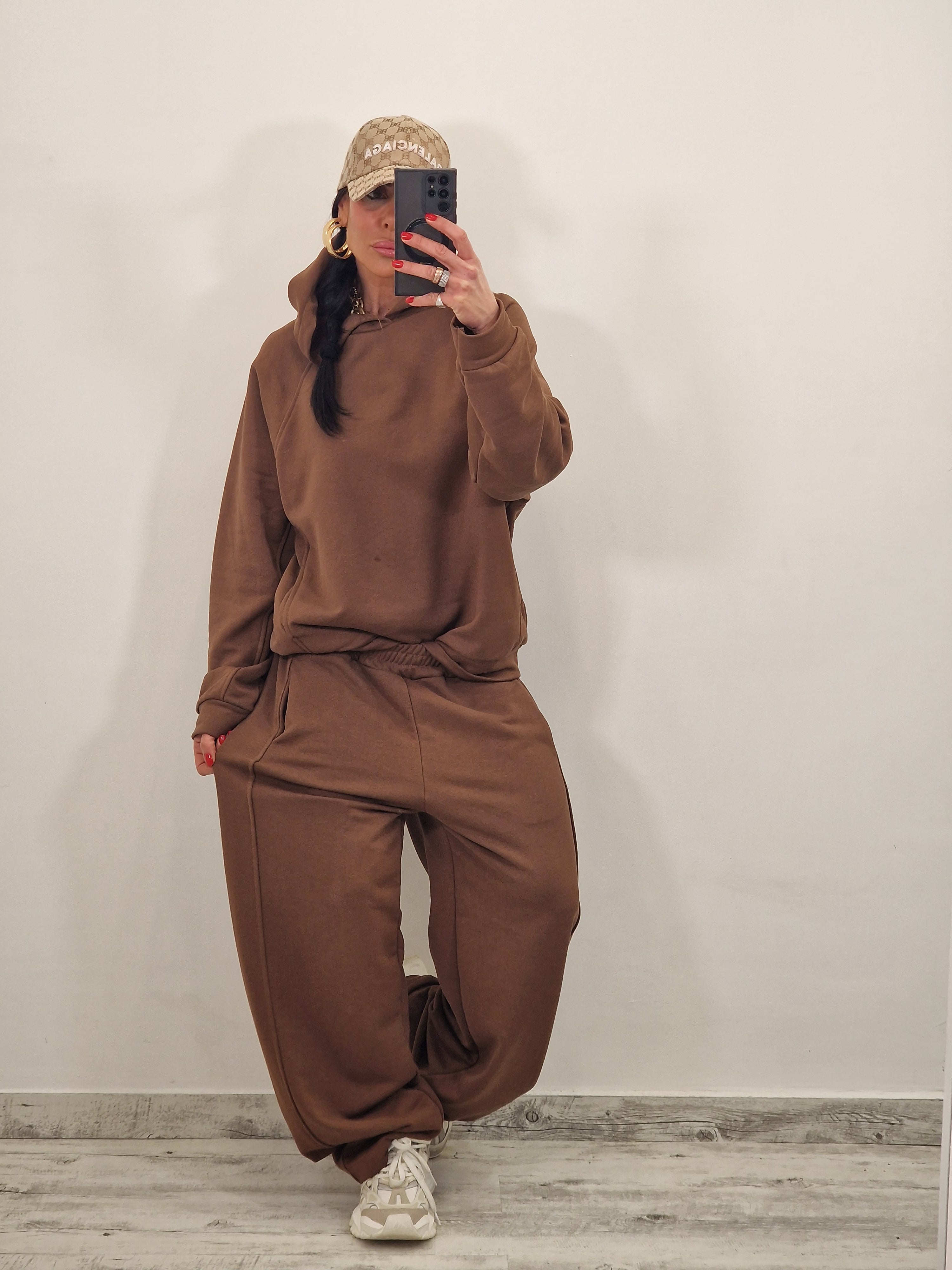 Coordinato tuta con cappuccio e tasche e pantalone ballon con elastico