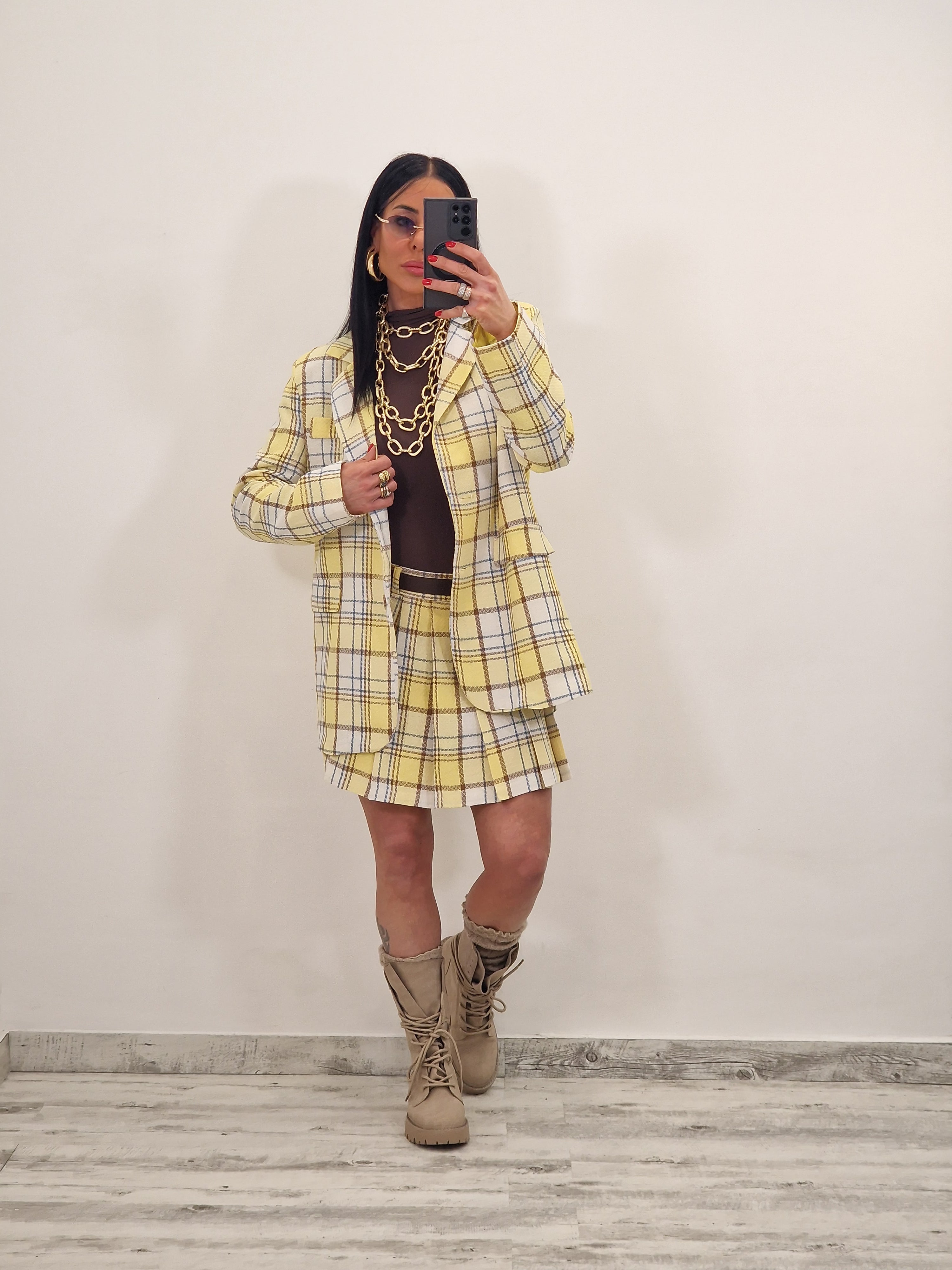 Coordinato TWINS quadri giallo