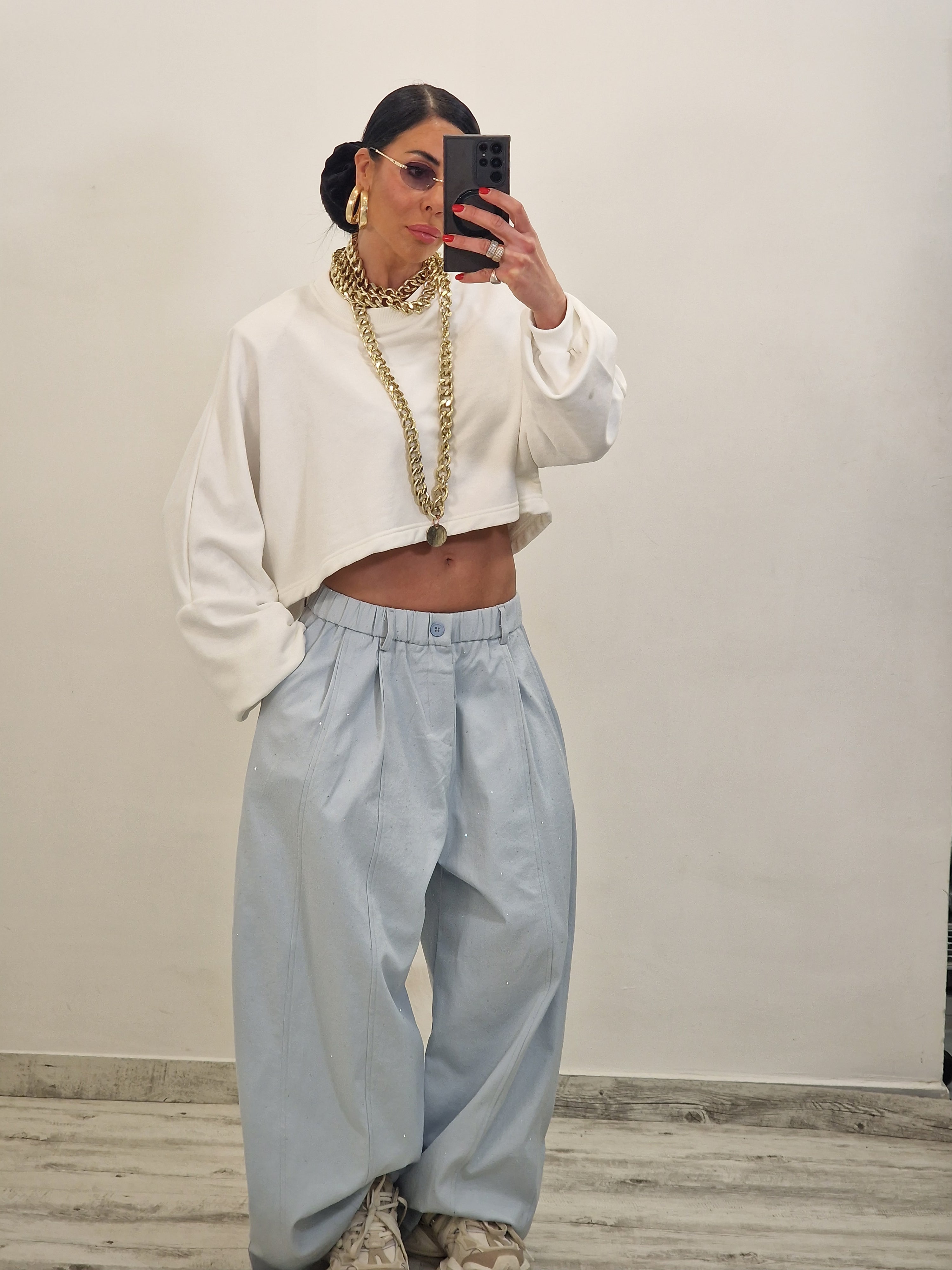 Felpa crop modello over con spalline