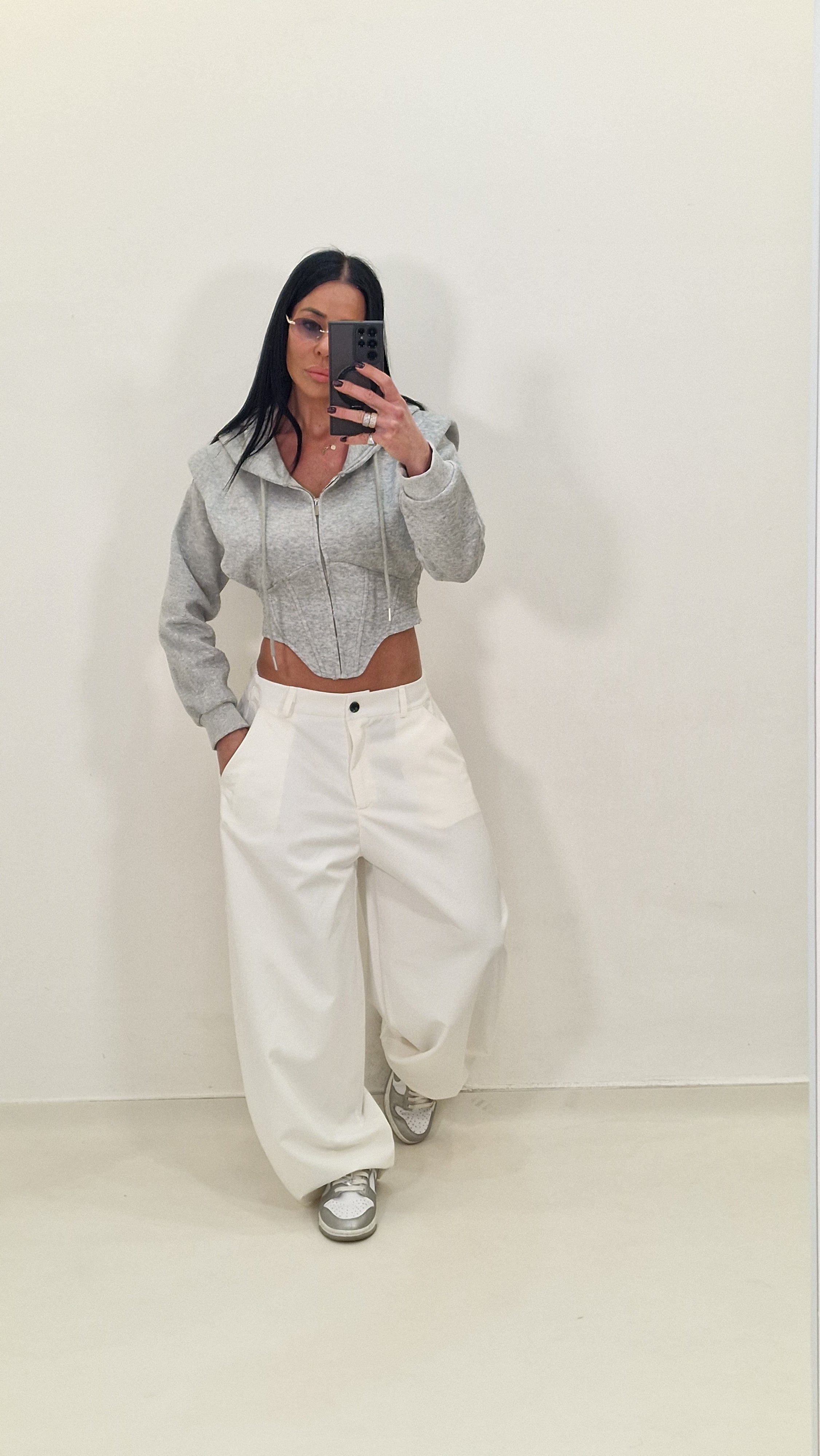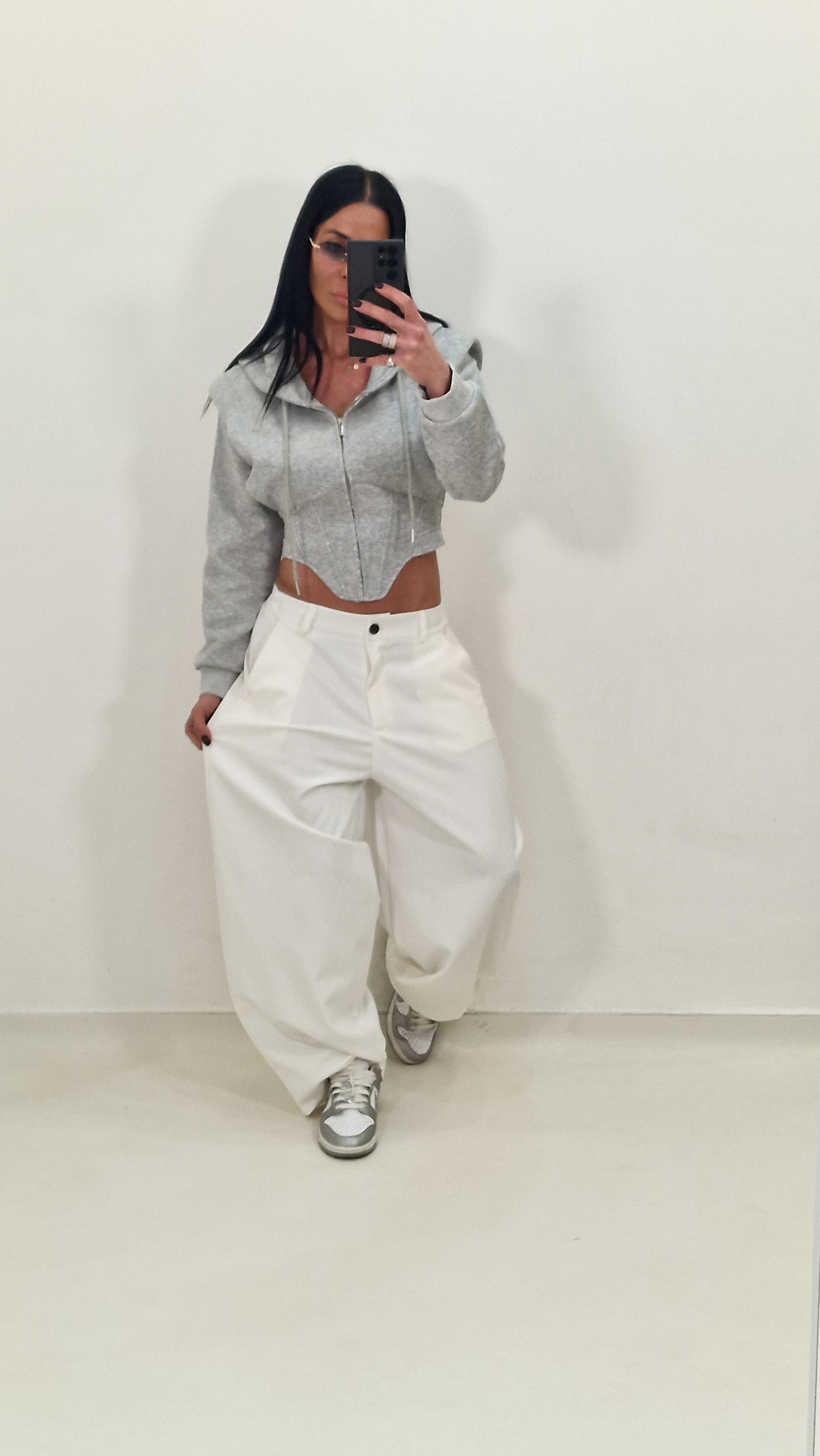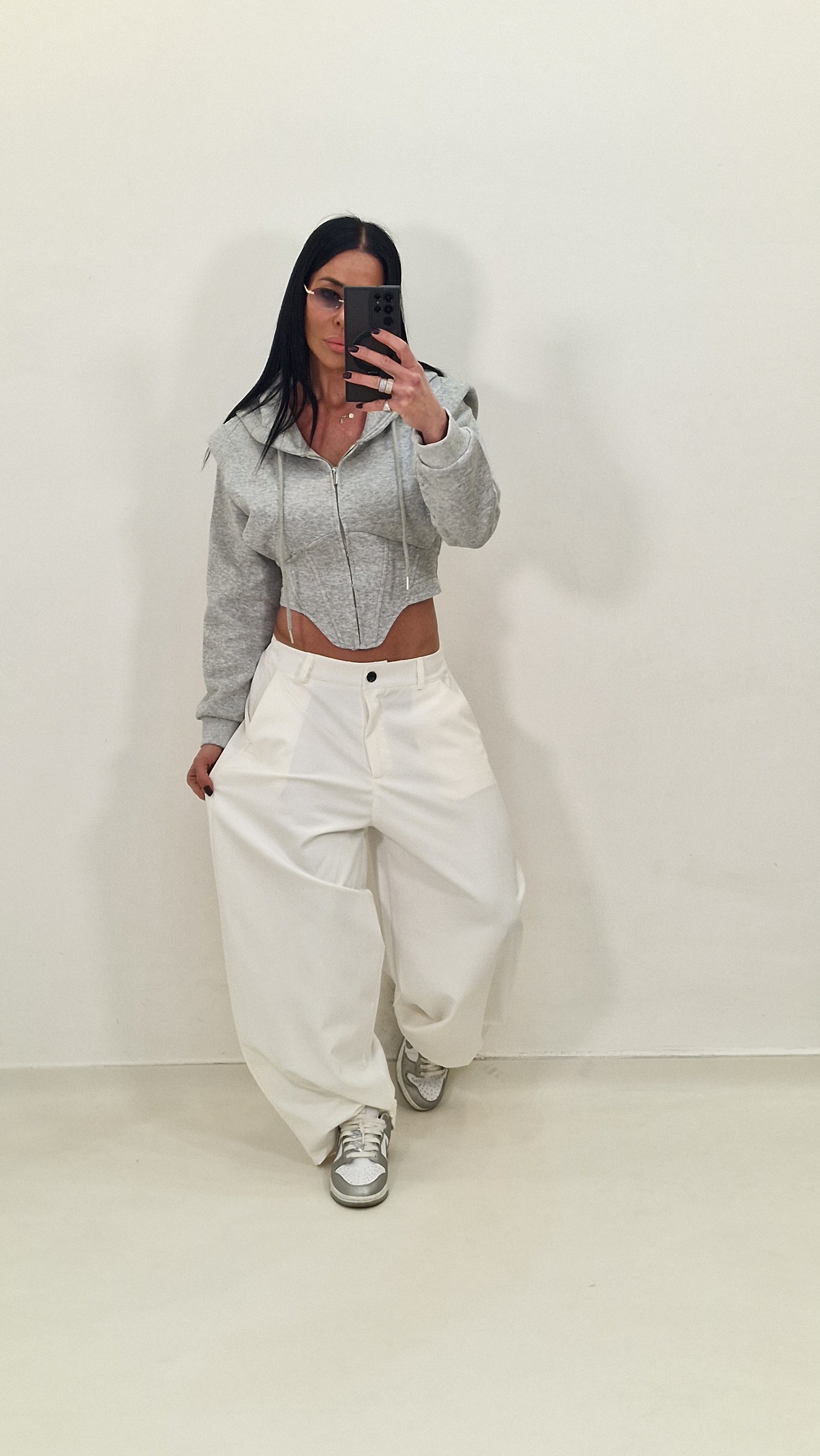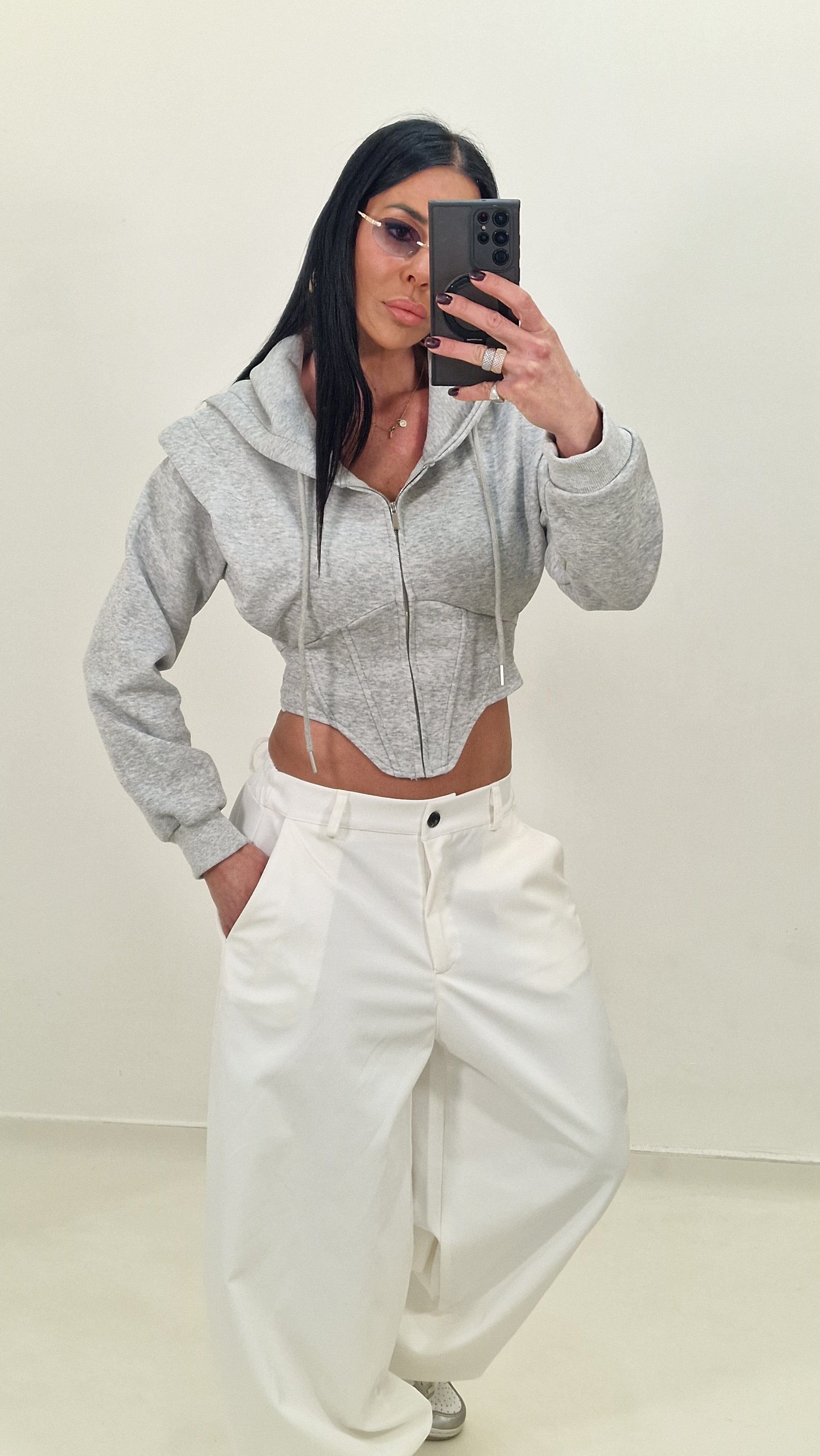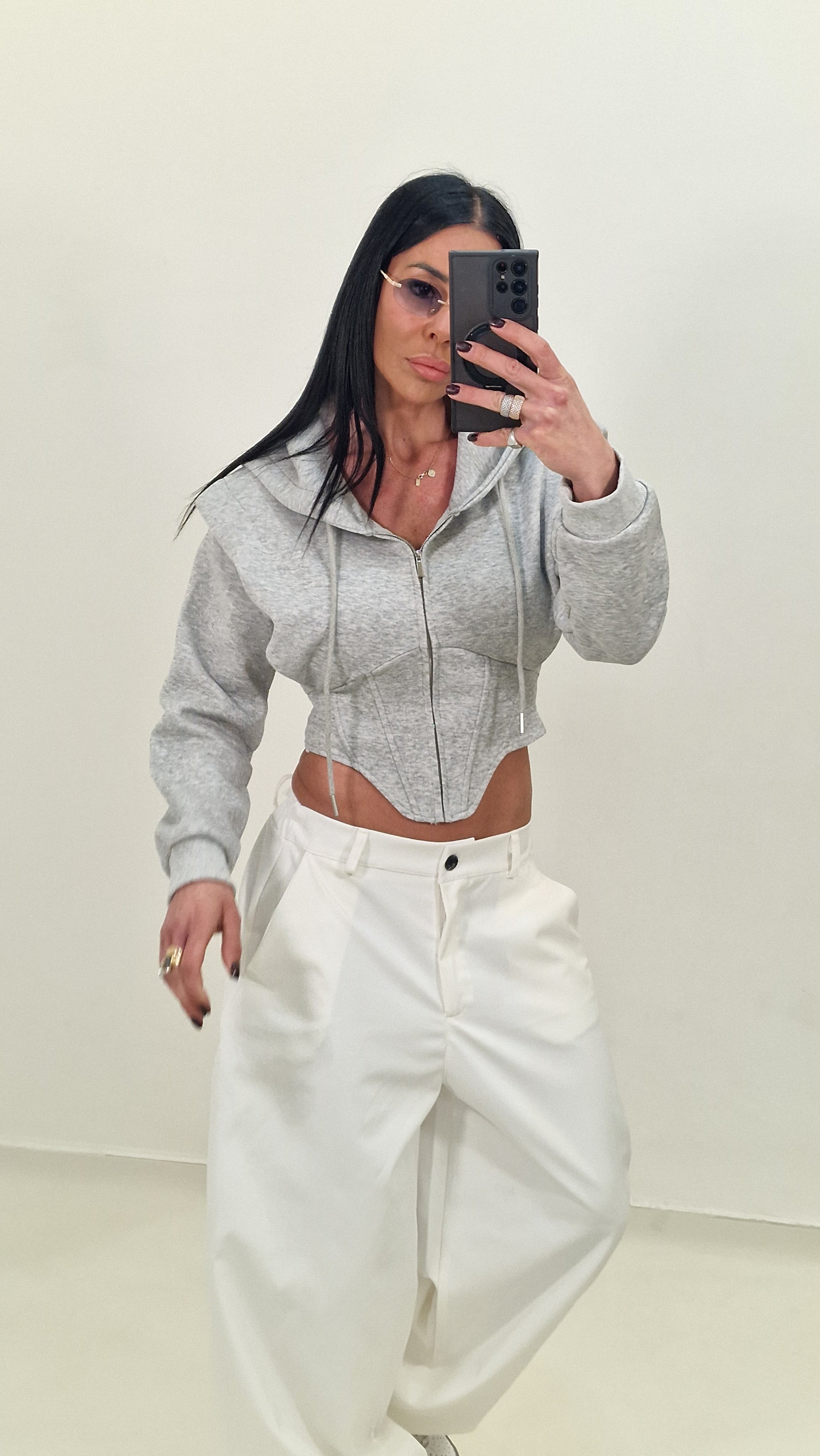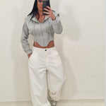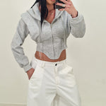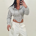 Felpa crop  modello avvitato con cappuccio e chiusura con lampo