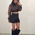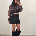 Giacchino crop velato in stampa leopardata